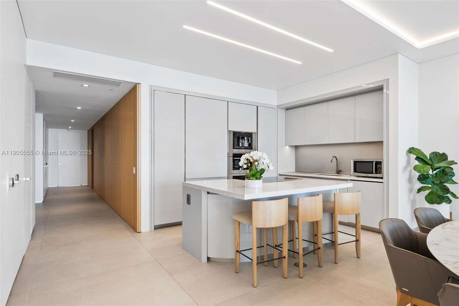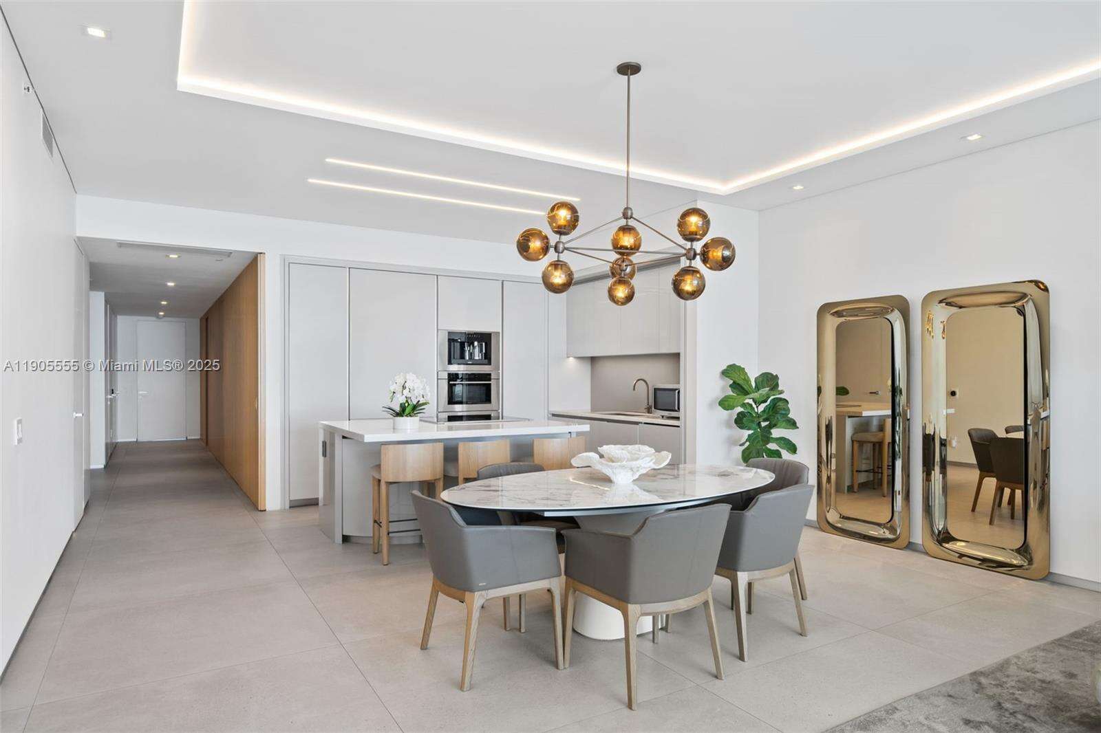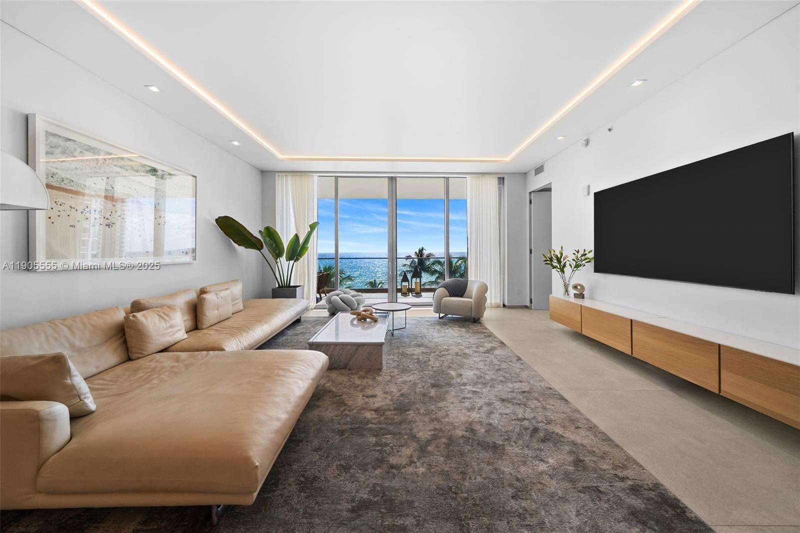 Experience refined oceanfront living in Residence 401 at the prestigious Residences by Armani Casa. This 3-bedroom + den, 5.5-bath, 2,468 SF home features an elegant open layout with floor-to-ceiling glass framing serene ocean and palm views. The spacious great room flows seamlessly to an expansive terrace for effortless indoor-outdoor living. A sleek gourmet kitchen offers custom cabinetry, premium appliances, and a large island ideal for dining and entertaining. The primary suite is a private retreat with a spa-like bath and generous wardrobe space, while all guest bedrooms feature en-suite baths. Residents enjoy world-class amenities including private beach service, oceanfront pool, spa, fitness center, restaurant, concierge, valet, and 24-hour security.