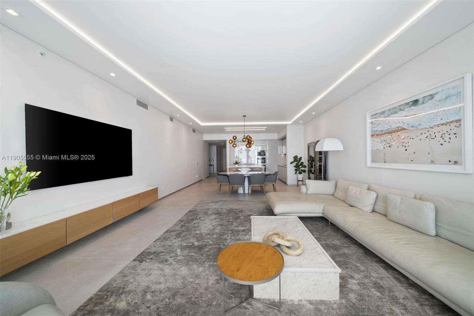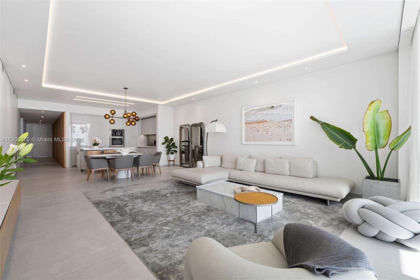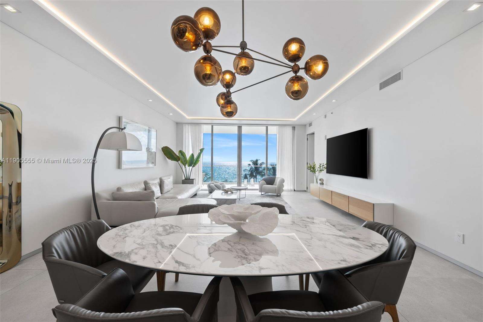 Experience refined oceanfront living in Residence 401 at the prestigious Residences by Armani Casa. This 3-bedroom + den, 5.5-bath, 2,468 SF home features an elegant open layout with floor-to-ceiling glass framing serene ocean and palm views. The spacious great room flows seamlessly to an expansive terrace for effortless indoor-outdoor living. A sleek gourmet kitchen offers custom cabinetry, premium appliances, and a large island ideal for dining and entertaining. The primary suite is a private retreat with a spa-like bath and generous wardrobe space, while all guest bedrooms feature en-suite baths. Residents enjoy world-class amenities including private beach service, oceanfront pool, spa, fitness center, restaurant, concierge, valet, and 24-hour security.
