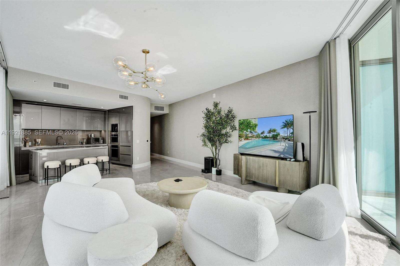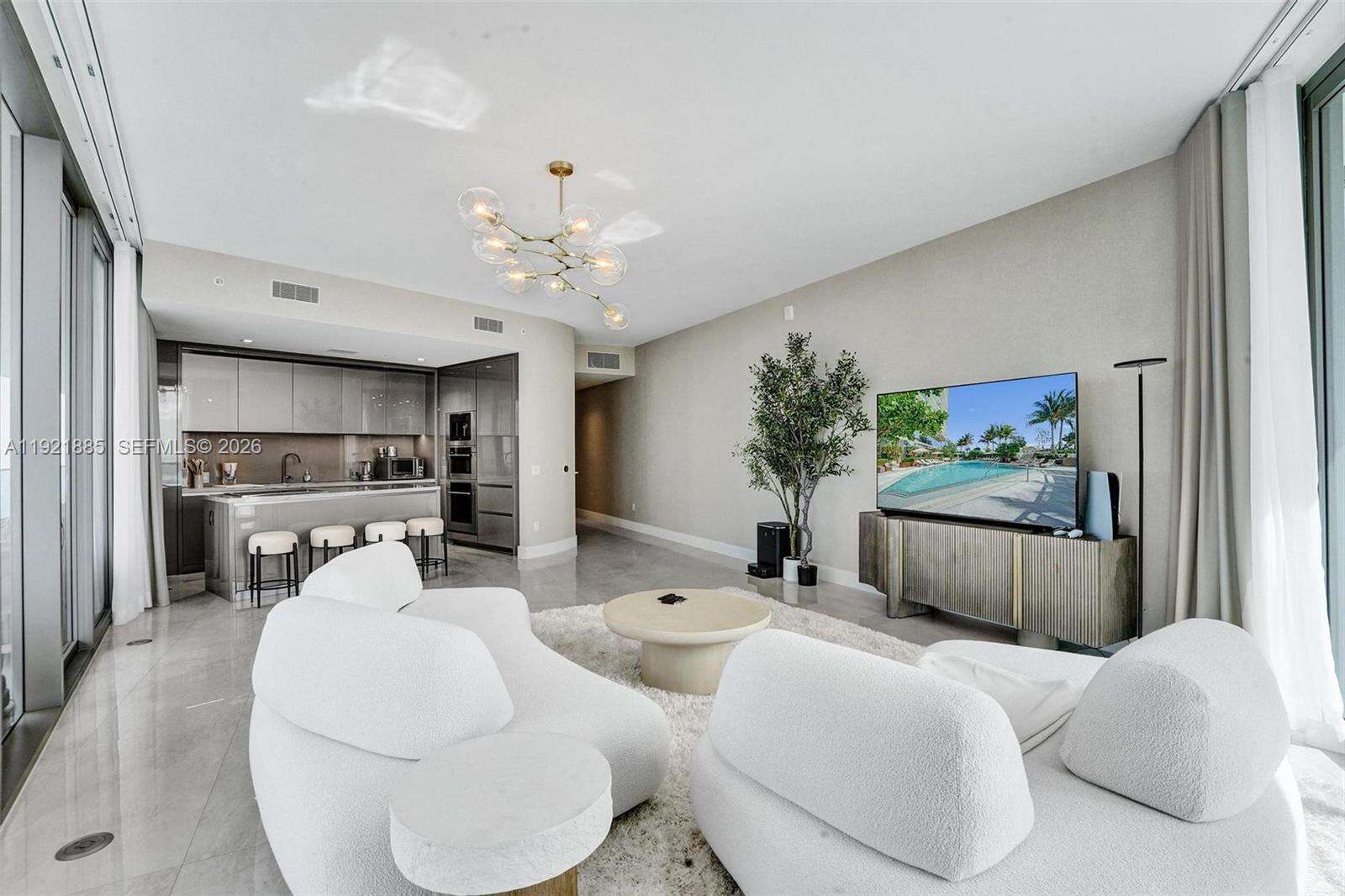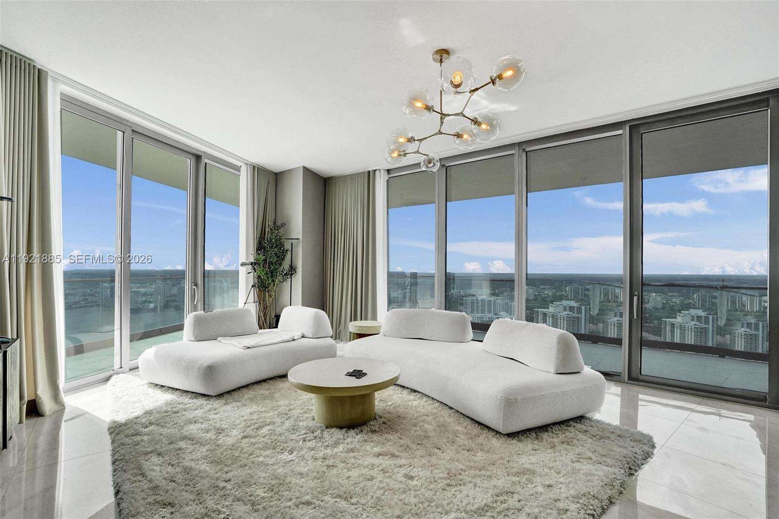 Experience luxury living at its finest in this impeccably furnished 2BR/2BA residence at The Residences by Armani Casa, Sunny Isles Beach. Located on the 52nd floor, this stunning corner condo features designer interiors fully curated by Restoration Hardware, elevating every space with refined elegance and comfort. Floor-to-ceiling windows and a wraparound terrace offer unmatched panoramic views of the Atlantic Ocean, Intracoastal, and city skyline—enjoy spectacular sunrises and sunsets from your private sky home. The open-concept layout includes a sleek Armani Casa kitchen with top-of-the-line appliances, luxurious bathrooms, and custom details throughout. Residents enjoy world-class, resort-style amenities: oceanfront pool & bar, upscale restaurant, full-service spa, state-of-the-art fitness center, elegant lobby, lounge bar, cigar and wine rooms, kids’ playroom, concierge, security, valet, and more. Move-in ready and exquisitely furnished—this is a rare opportunity to own a true turnkey luxury residence in one of the most prestigious buildings in Sunny Isles.