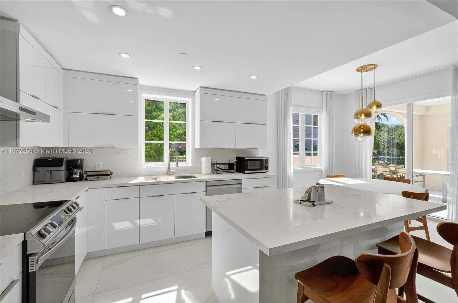 Discover Fisher Island living in this exquisite renovated Seaside Village Condo located on the ground floor. This exceptional residence offers 2 spacious bedrooms, expansive terrace, marble floors, integrated kitchen elegantly finished in white with top-of-the-line appliances. New Hurricane windows and patio door were installed on Sept 2025 for added security on hurricane threats. Walking distance to Fisher Island's world class Racquet Club, private beach, the Beach Club, and the best oceanfront pool on Fisher Island. World-class like the historic Vanderbilt Mansion Clubhouse, seven restaurants, the P.B. Dye Jr. Golf Course, & Gourmet Market is also at walking distance. Short Term rental on this unit is permitted.