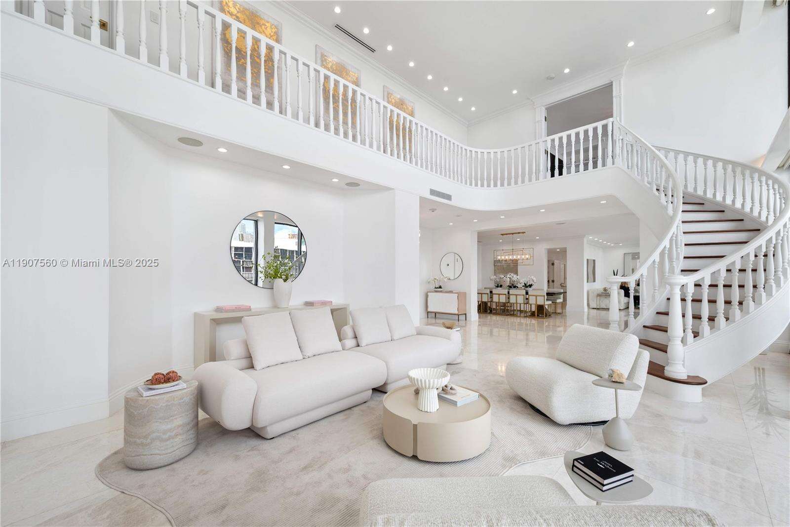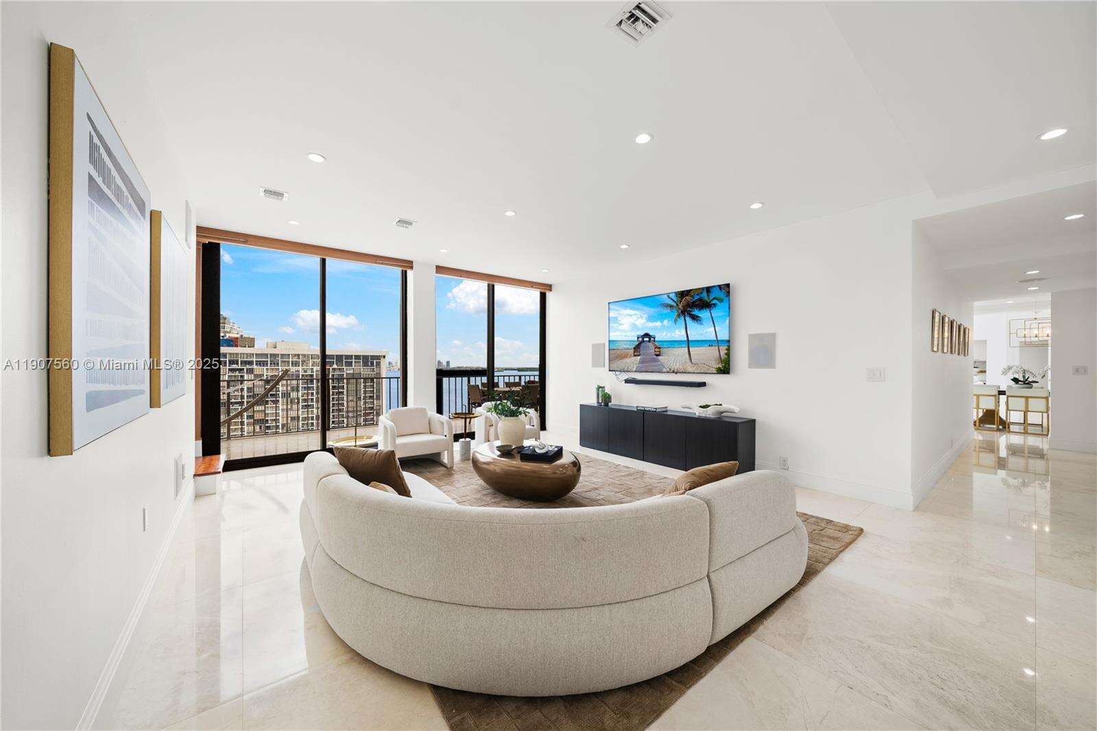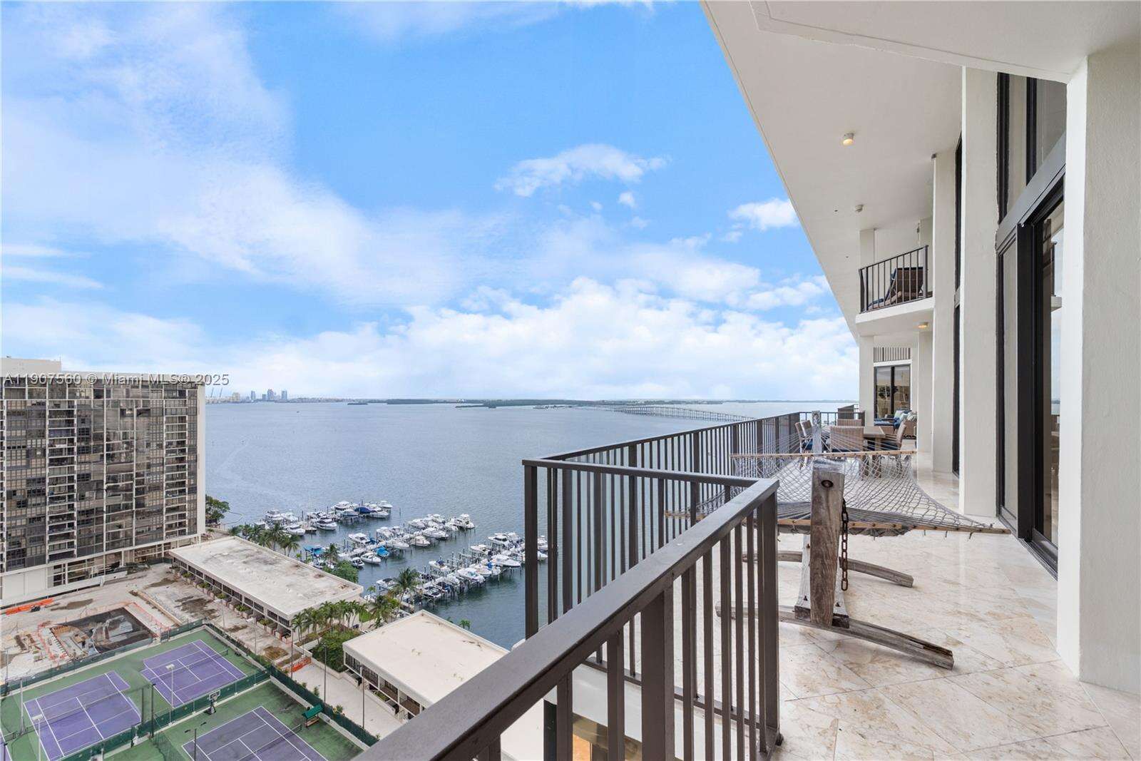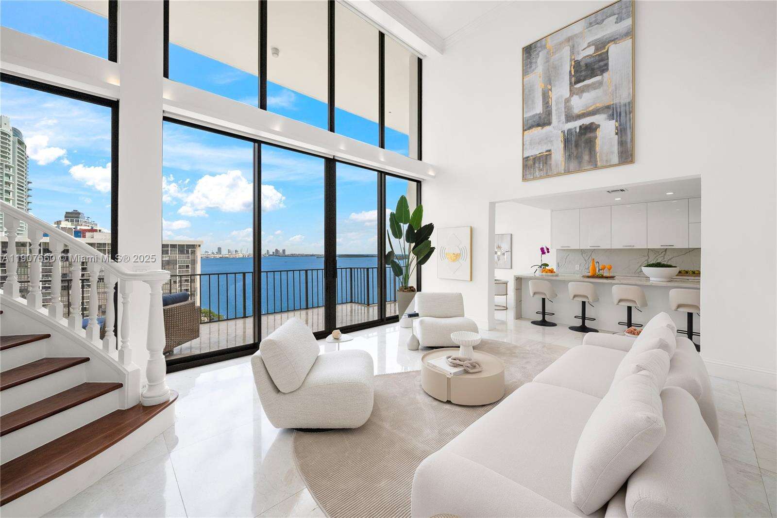 Penthouse Perfection! Experience breathtaking panoramic water & skyline views from this renovated 2-story residence in the heart of Brickell. Facing northeast, it captures dramatic sunrises over Biscayne Bay & the Atlantic Ocean, visible from every room. Boasting 5,430 SF of sophisticated interiors, grand living & entertaining spaces, new floor-to-ceiling impact windows, seamless indoor/outdoor living, & an oversized terrace spanning the full length of the unit. The expansive primary suite offers a private balcony, 2 walk-in closets, & a gorgeous bathroom with dual vanities, shower & soaking tub. Nestled directly on the water in a quiet guard-gated community with a pool, gym, tennis/squash/racquetball courts, boat docks, playgrounds, salon & 24-hr security. 4 assigned parking spaces.