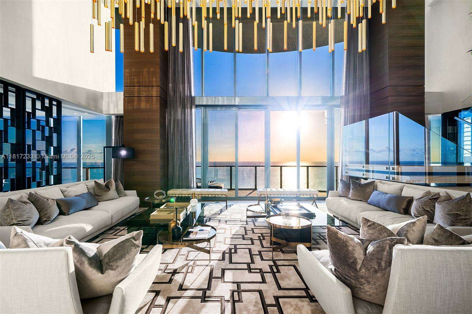 Introducing the Regalia Penthouse, a masterpiece offering limited edition living on the Ocean in Sunny Isles Beach. Encompassing 10,755 SF of living space, this residence is furnished with the world's finest materials where quality & style define the interiors. With a private pool & 2 levels of unobstructed panoramic views, including the Atlantic Ocean, pristine beaches, Intracoastal Waterway & Miami Beach skylines. This home in the sky features a stunning European kitchen with chef island & Miele cooktop, a 500-bottle wine cellar, private movie theatre, and an all marble spa like expansive primary bathroom with two stunning showers and best in class finishes. Enjoy sunrise & sunsets from this elegant residence, the last oceanfront parcel in Sunny Isles.