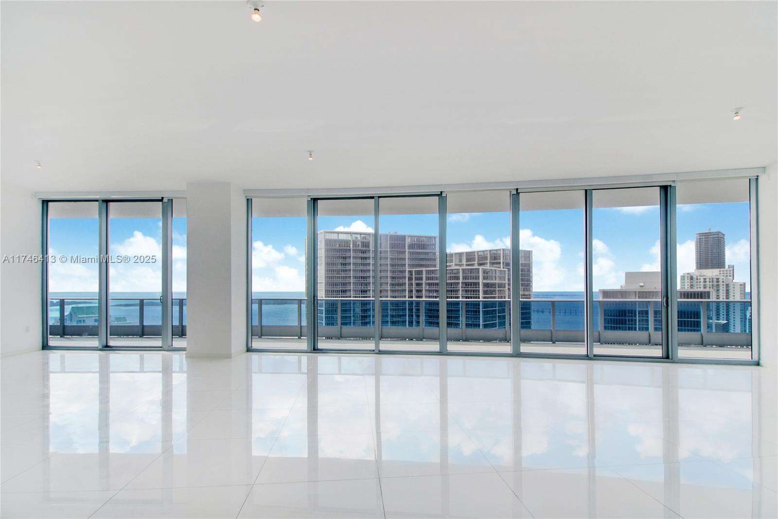 Spectacular, full of natural light, spacious LOWER PENTHOUSE featuring three bedrooms suites plus a den that could be used as maid's quarter. Fantastic unobstructed Southeastern views of Biscayne Bay, Miami River and city skyline. 12 ft high ceiling, motorized shades in LR and master bedroom. Large white porcelain tiles throughout. All built-in closets. Subzero and Miele appliances. Two a/c zones. Two covered parking spaces and one storage. World class amenities including pool, pool services, spa, sauna, steam room, exercise room, valet, 24hr concierge not to mention the famous minimalist Japanese Zuma Restaurant overlooking the river. Walking distance to groceries. Close to many entertainment and shopping areas.