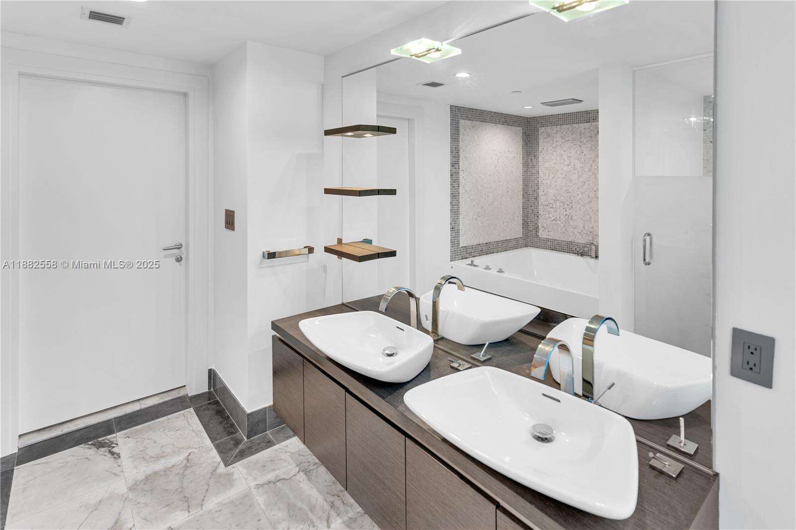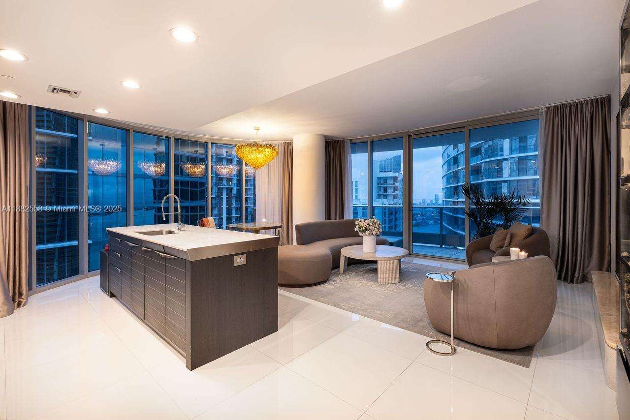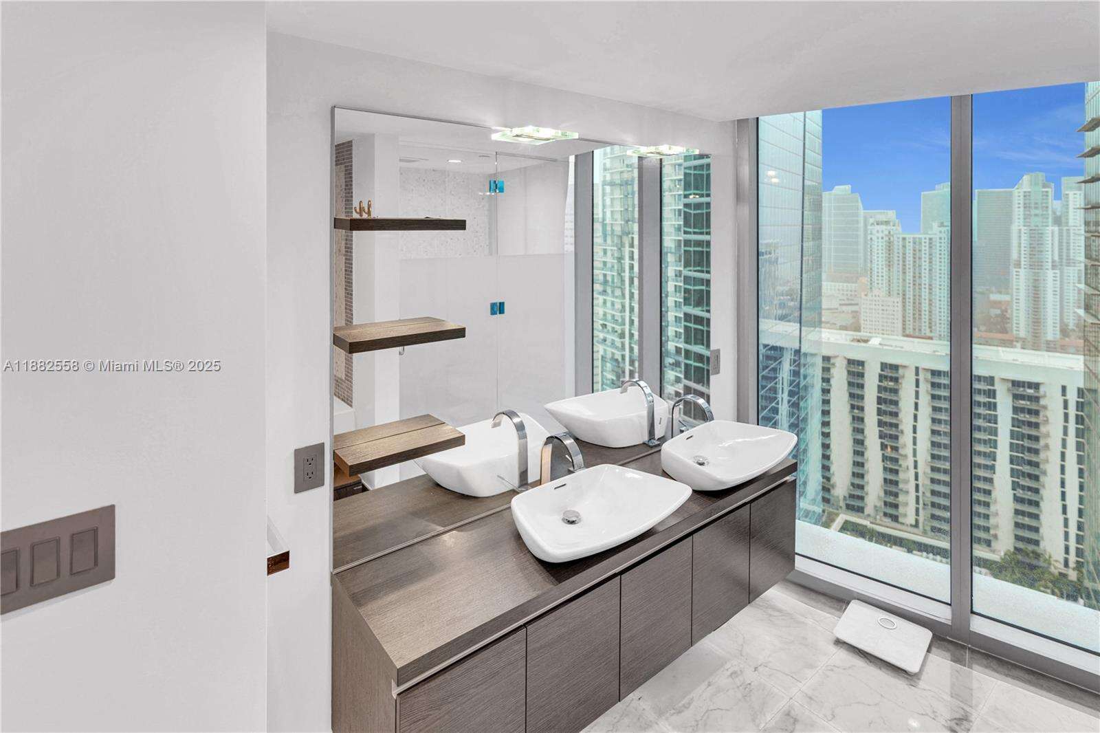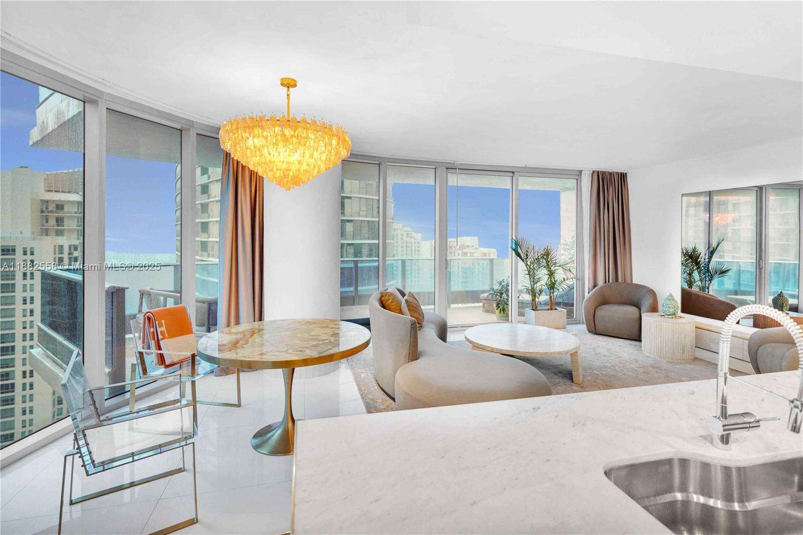 CORNER UNIT.. HIGH END FURNISHED ....Rare layout with floor-to-ceiling windows, porcelain white glass floors, and a 330 sq.ft. marble wraparound terrace with panoramic 180° views of the Intracoastal, Biscayne Bay, and Miami skyline. Each bedroom has a private balcony. Master Suite: Greek-style Jacuzzi tub, rain shower, walk-in closet Living Room: High-end seating in natural wool, complemented by curated natural stones, bronze mirrored accents, and premium RH outdoor furniture. Sub-Zero refrigerator/freezer with ice maker, Miele flat cooktop, stainless steel Miele electric oven, washer/dryer in-unit. Epic Hotel & Residences features resort-style pool, Exhale Spa, Technogym fitness center, 24-hour concierge, valet, in-residence dining, restaurants Zuma and Area 31, access to Epic Marina.