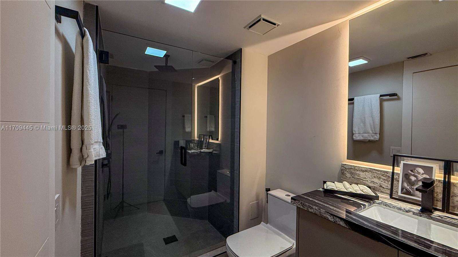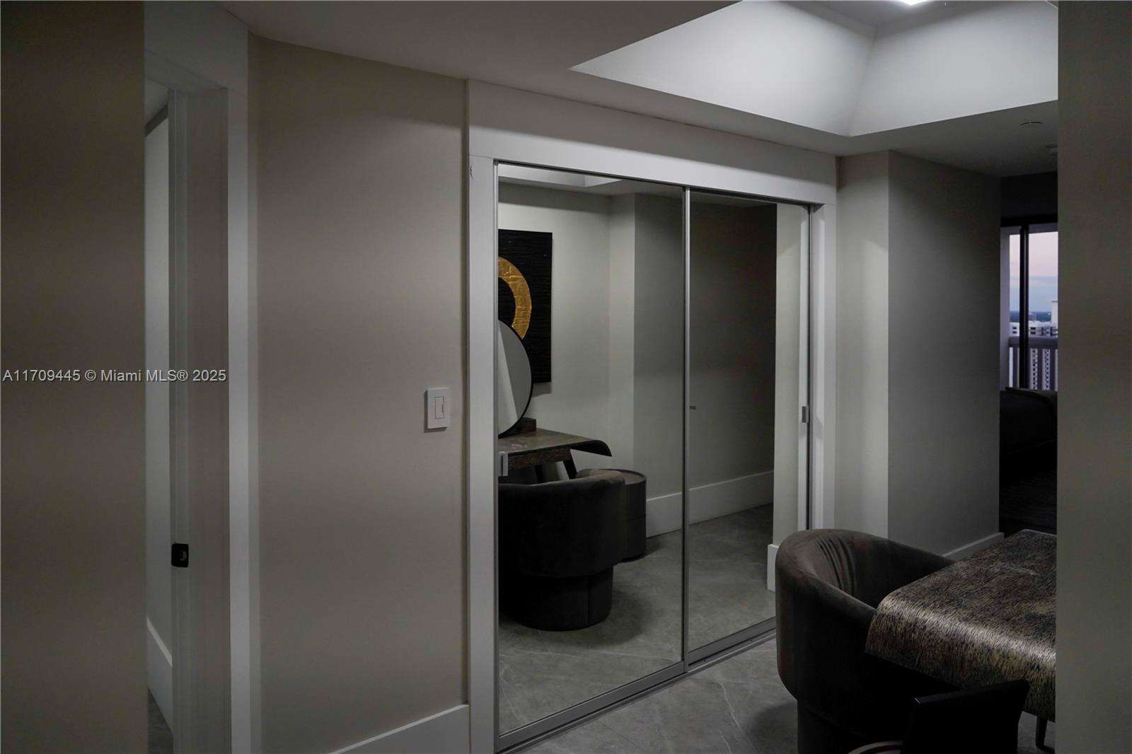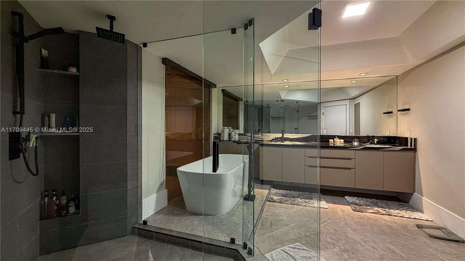 Stunning and fully renovated apartment with Spanish flooring in matte light gray porcelain throughout, a brand-new Monogram & Miele appliances, and granite stones imported from Brazil. All the bathrooms were redone from scratch, including all the finishing touches with the smallest details in good taste and sophistication of the showers, faucets all in matte black, giving a very modern sophistication. The view is both to the south, being able to see along the South Beach, the bay in the background with boats and from the rooms the view to the north of the bay, the Hard Rock hotel and casino, etc. The apartments are all decorated with almost unused furniture by a Brazilian architect. 16 tennis crts, pickleball crts, swimming pools, 2 floors of gym with classes, 3 wonderful restaurants!