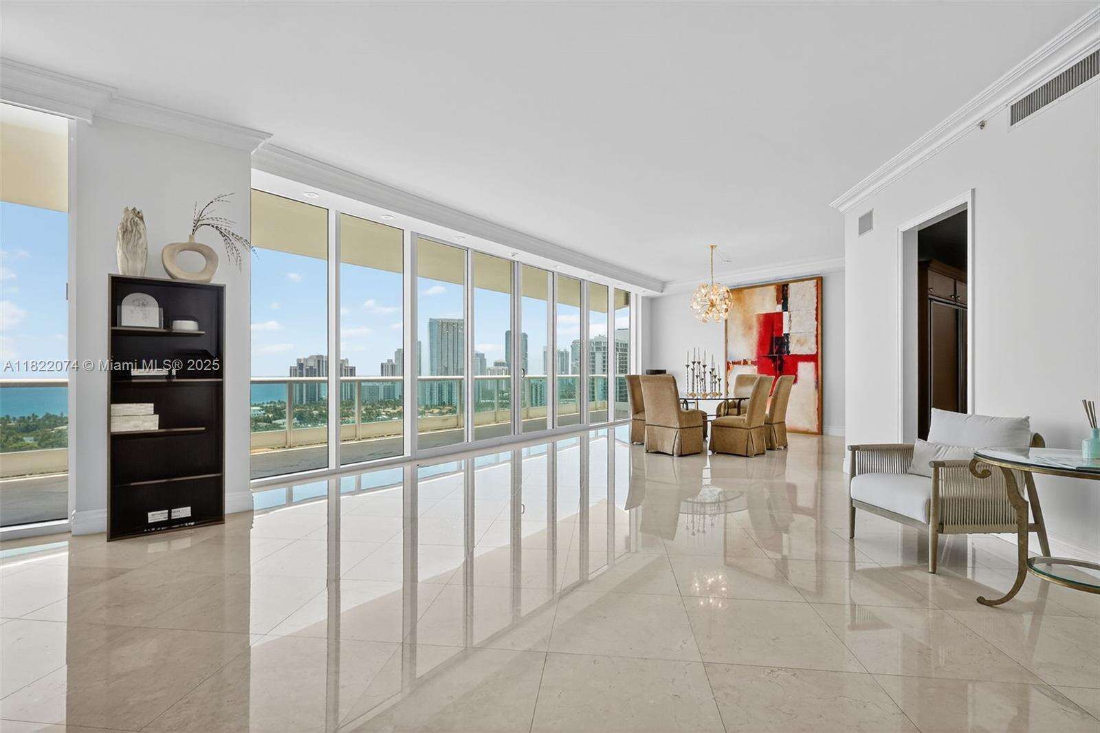 ENTER AVENTURA'S MOST PRESTIGIOUS ADDRESS "PORTO VITA" TO PRIVATE ELEVATOR FOYER AND BE WOWED BY THIS RARELY SEEN 5,141 SQFT RESIDENCE. IMMEDIATELY + THROUGHOUT SEE THE BEST VIEWS IN TOWN OF THE DIRECT OCEAN OVER GOLDEN BEACH + INTERCOSTAL ON THE EAST AND FABULOUS RENOWNED TURNBERRY ISLE GOLF COURSE TO THE WEST FROM SPACIOUS FLOW THROUGH FLOOR PLAN. BEING SOLD FULLY TURNKEY + DECORATED WITH THE FINEST FURNISHINGS. 4 BEDROOM EN SUITES, OVERSIZED MASTER SUITE WITH 2 FULL BATHS-FACING OCEAN + HOUSEKEEPER QUARTERS + DEN + HUGE LIVING/DINING KITCHEN AREAS + LARGE LAUNDRY ROOM + 6.5 BATHROOMS. SPACIOUS WRAPAROUND TERRACES ON TWO SIDES. A GEM!