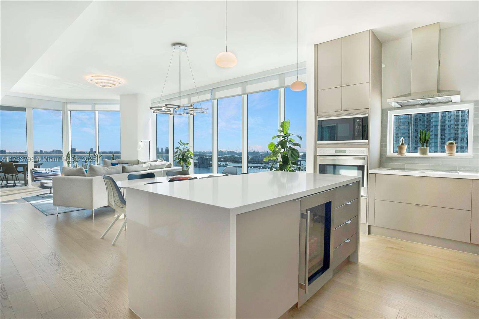 This sun-drenched home has breathtaking views of Biscayne Bay in the most desirable line at the prestigious Paramount Bay. Renovations for this unit include new hardwood flooring, complete kitchen remodel (kitchen cabinetry, Wolf oven, cooktop & hood, Sub-Zero refrigerator & bev. center, countertops & island), complete primary bathroom remodel, new light fixtures, new window treatments (motorized in living/primary), and a new washer/dryer. Other features include an overabundance of wall space for art, 500+ SQFT balcony, 1 garage space + valet, and a storage unit. Enjoy the privacy of your own elevator lobby, 24-hour security, and front desk services. Building amenities include 2 pools with cabanas + towel service; a fitness center + spa; barbecue picnic areas; and a children’s playroom.