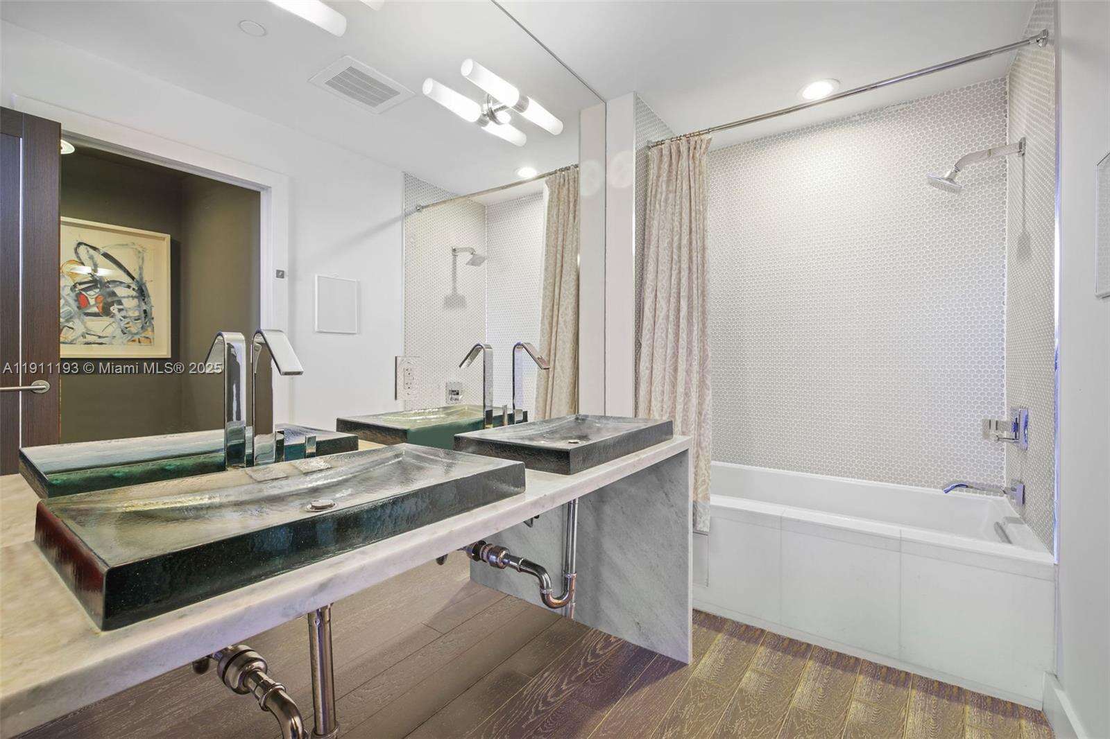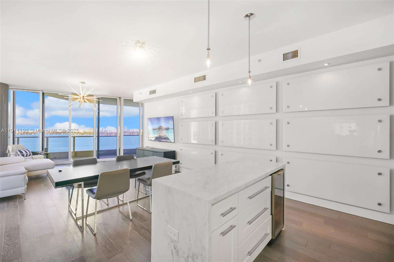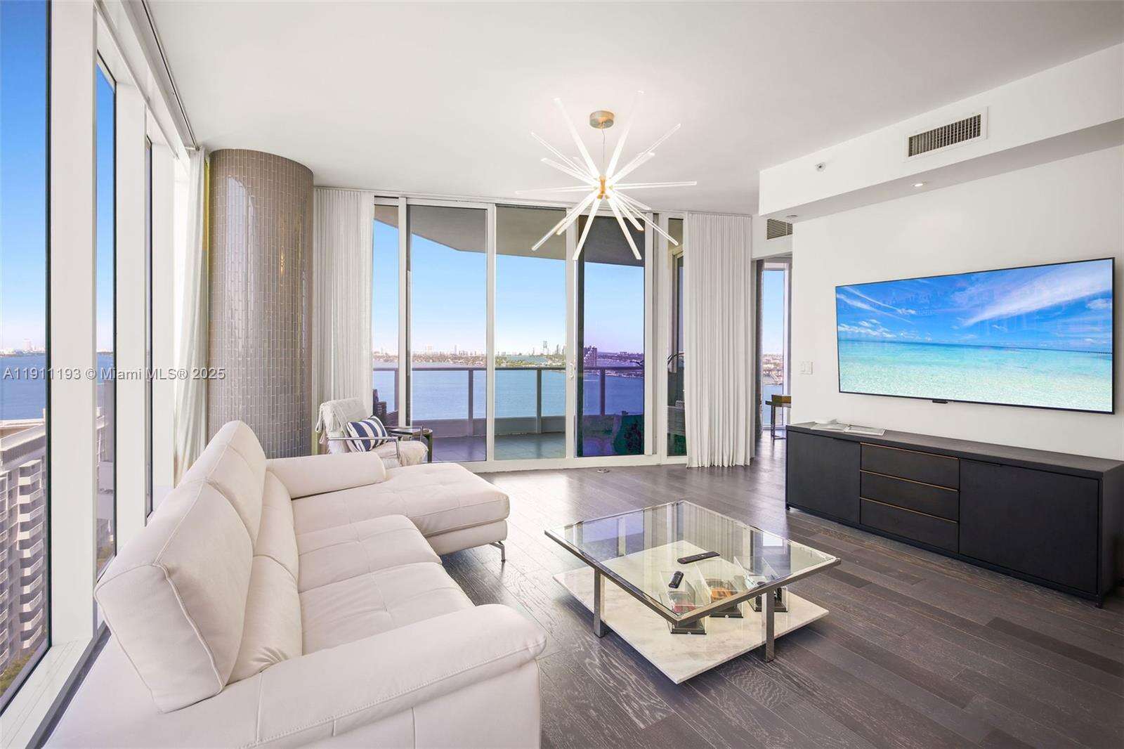 HGTV-featured designer residence at Paramount Bay. This move-in-ready 2BD/2.5BA corner unit offers a private elevator entry with its own foyer, 10’ floor-to-ceiling windows, and panoramic Biscayne Bay and Miami skyline views. The 1,588 SF flow-through layout includes an open kitchen with Sub-Zero & Wolf appliances, quartz counters, wine cooler, and an oversized 8-ft balcony. Bedrooms feature ensuite baths and generous closets. Additional perks include a 3-year-old A/C, electric blinds in the living area and primary bedroom, and being sold fully furnished. Prime Edgewater location minutes to Wynwood, Midtown, the Design District, and Downtown Miami.
