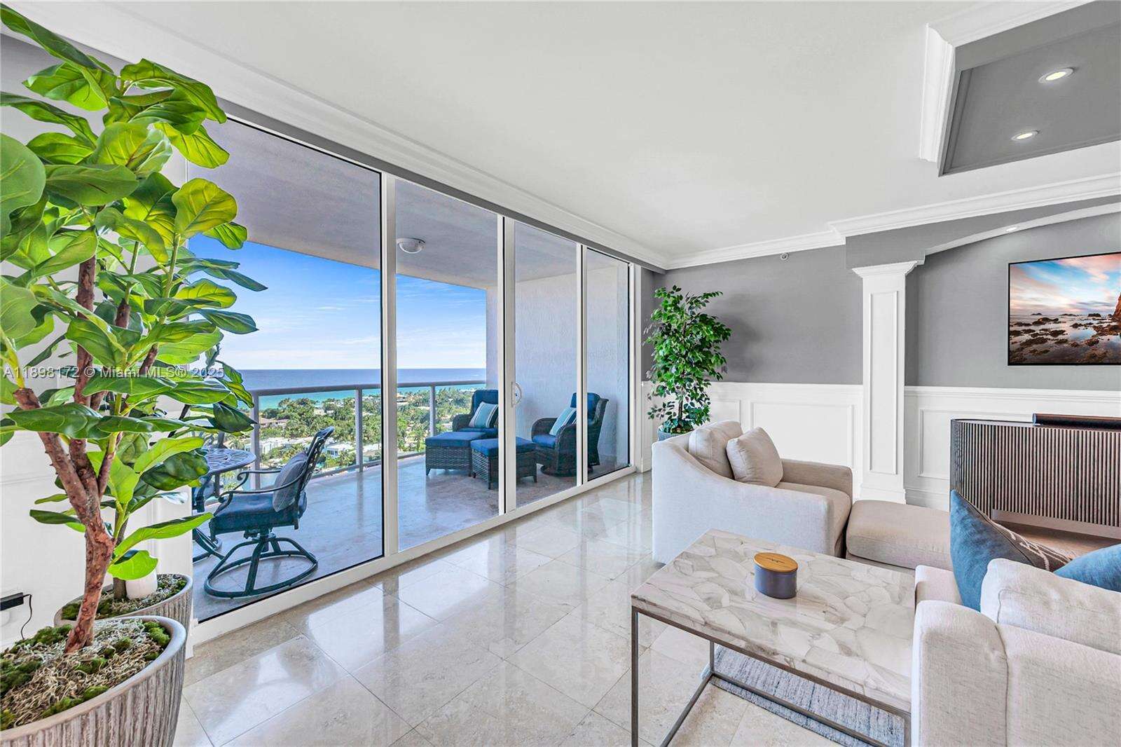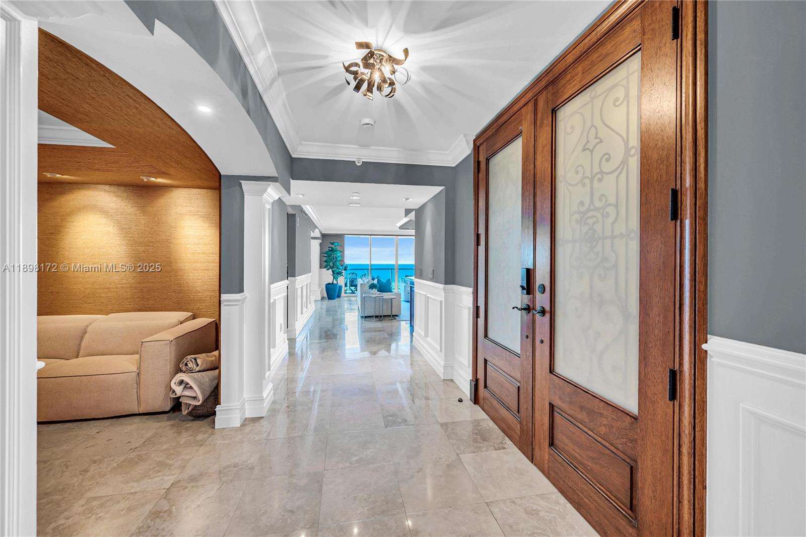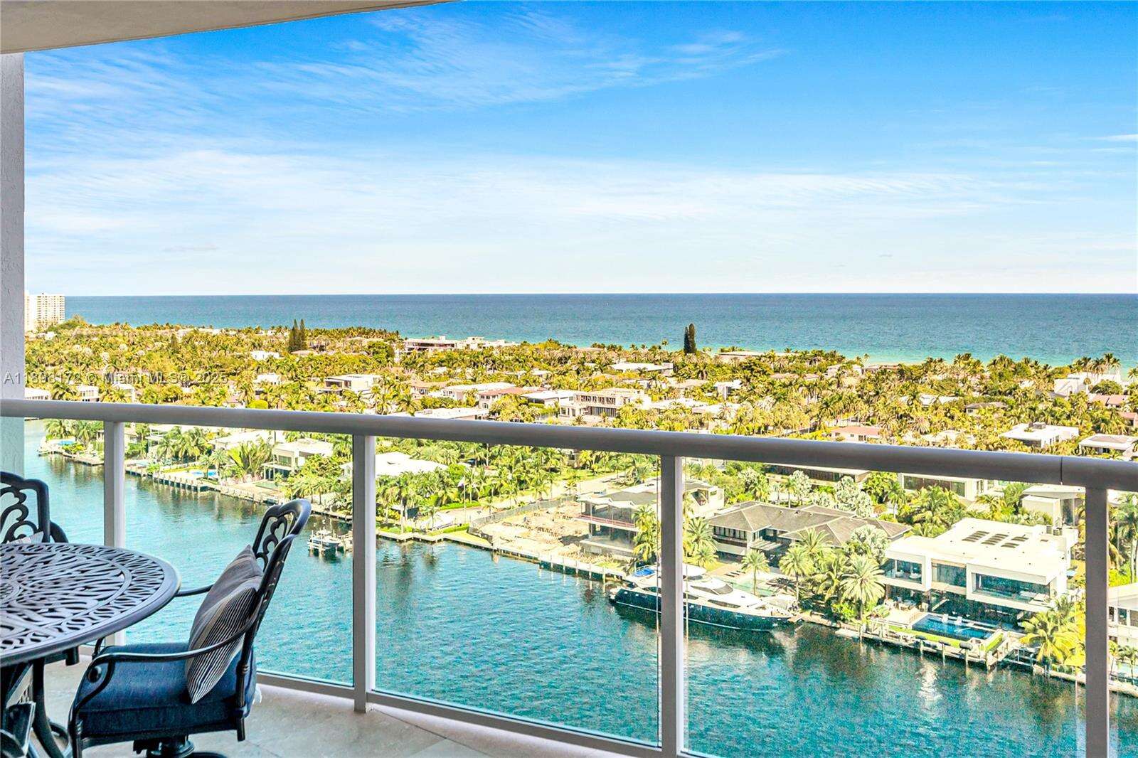 Step off your private elevator into this spacious waterfront residence featuring 2 bedrooms + den + home office and 2.5 baths. Enjoy a flow-through layout with stunning water and city views. The east terrace captures sunrises over the Intracoastal and Atlantic, while the west terrace offers sunsets over the Turnberry Golf Course and skyline. Highlights include marble floors, electric blinds, a built-in wet bar, stainless steel appliances, and a primary suite with walk-in closet and bathroom with dual vanities. Includes 2 assigned parking spaces and storage unit. Resort-style amenities: 24-hr security, valet, infinity pool, theater, tennis courts, gym, clubhouse, and on-site restaurant. Minutes from the beach and scenic walking path—the perfect blend of luxury and leisure living.