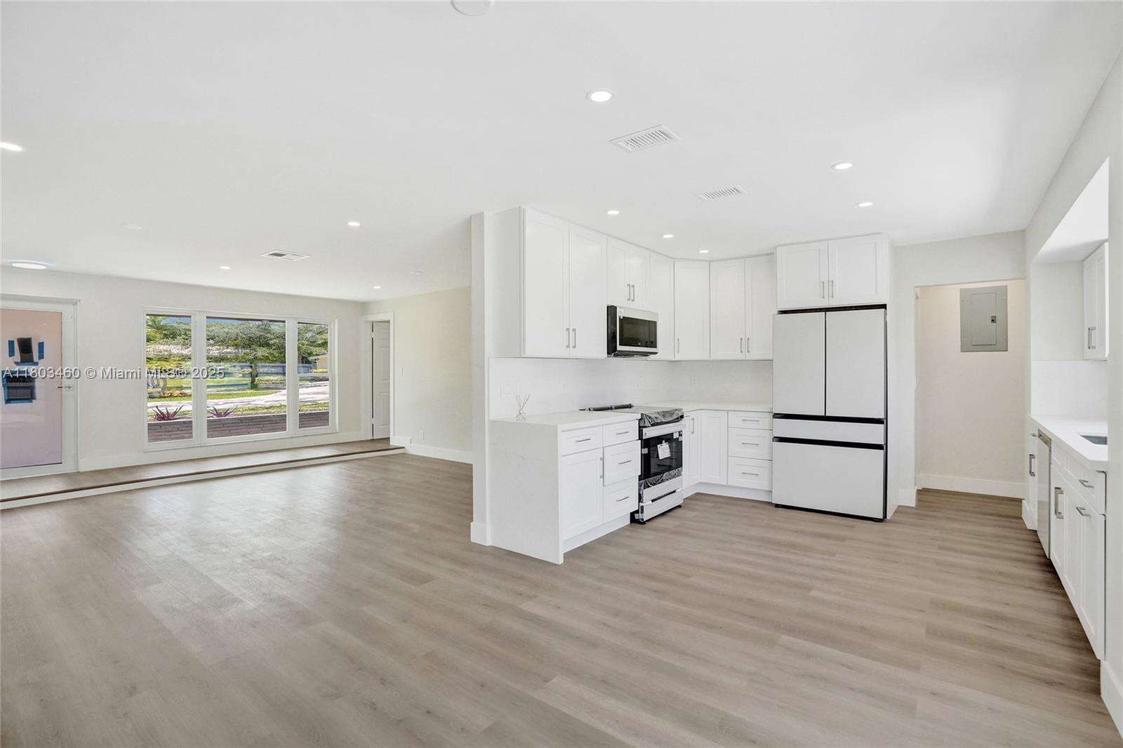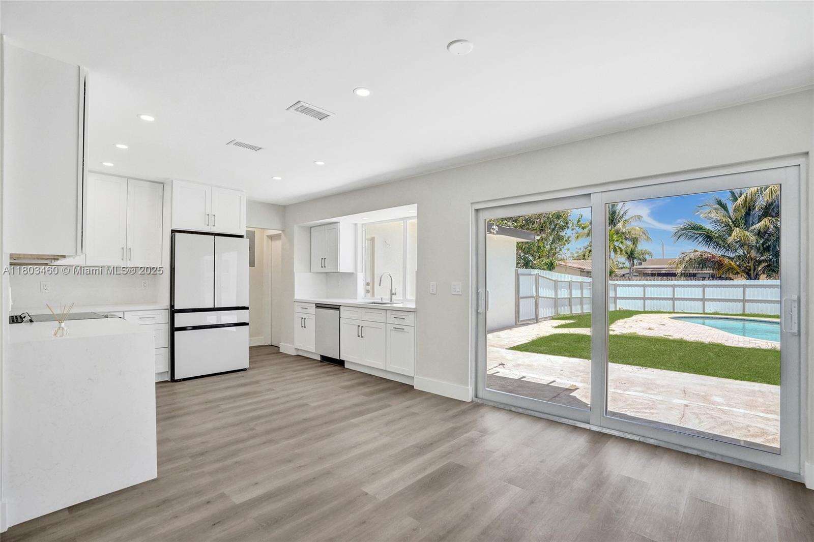 TURN KEY HOME! Modern& Bright.. Immaculate 3 bedroom 2 Bath Fully Renovated Single Family Pool Home! Brand NEW Impact Doors, Windows, and NEW Roof! Brand New Vinyl Flooring throughout home, Kitchen features Brand New Appliances, Quartz countertops, w/ window overlooking the pool. Bathrooms are Fully renovated with LED mirrors. Exterior of home features New Modern lighting and is freshly painted. Backyard and Pool Area is fully fenced. Corner Lot with Circular Driveway, Lots of parking. New HVAC / AC system ducts, plumbing and Water Heater. THIS HOUSE HAS IT ALL. Bring your pickiest buyer, Won't Last! NO HOA. Showings will start SOON! Finishing Final Touches!!