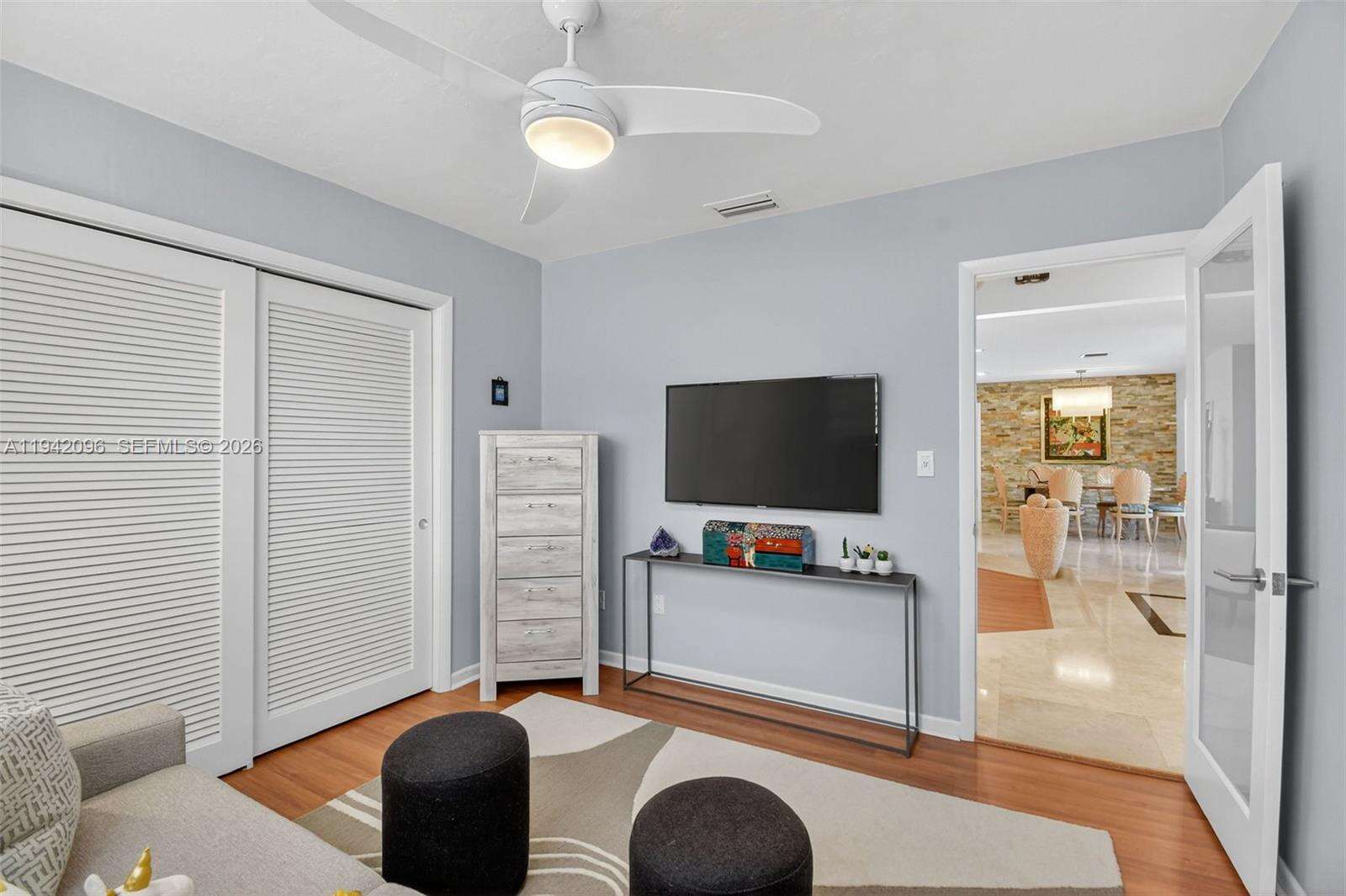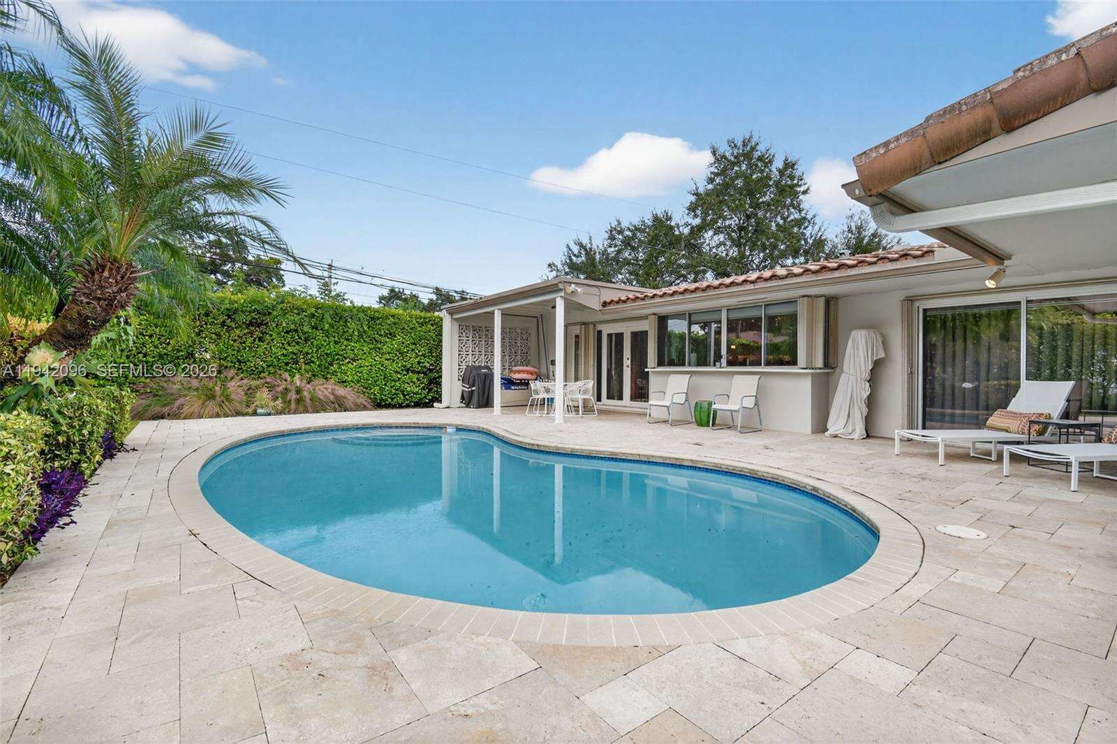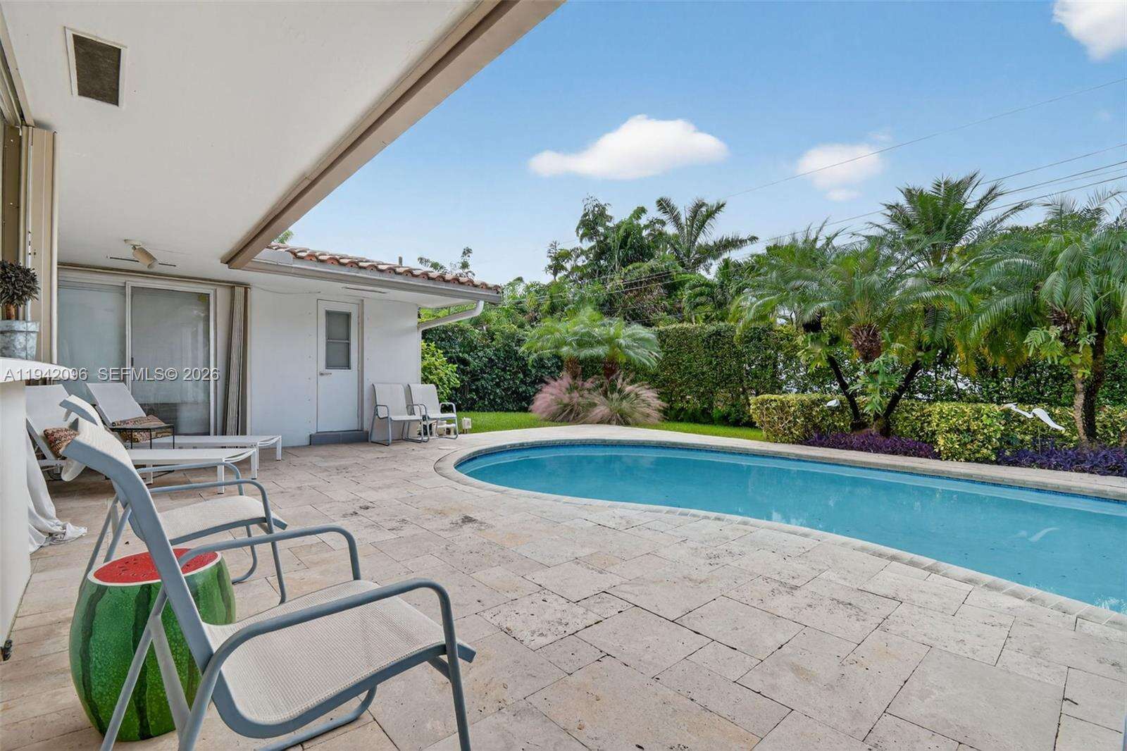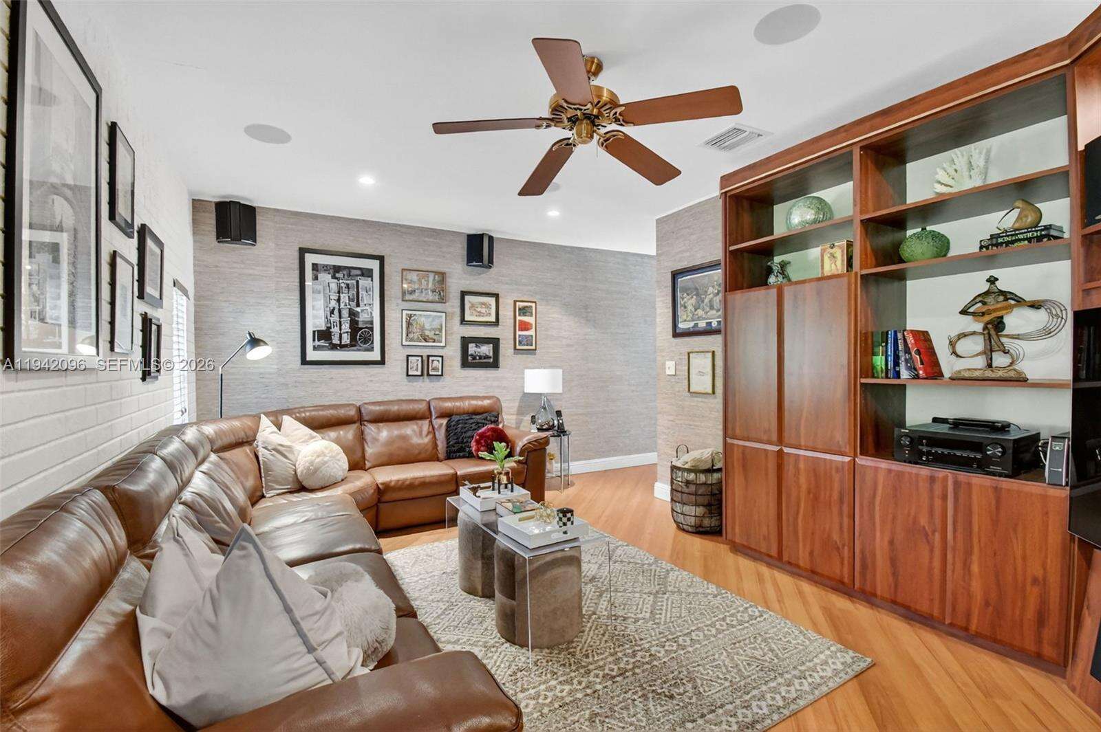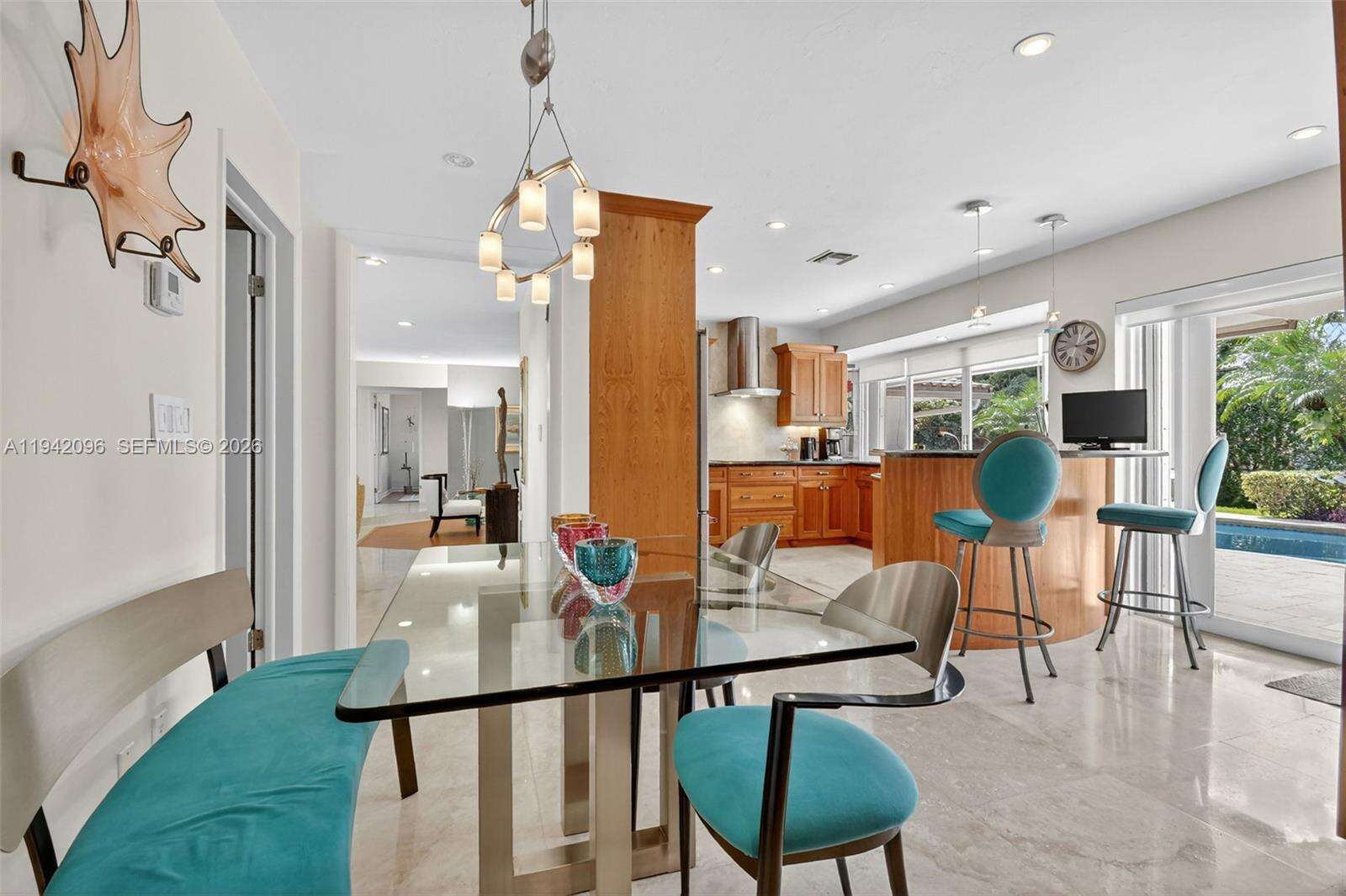 Welcome to this beautifully upgraded single-story residence offering timeless curb appeal located in the highly desired neighborhood of Highland Lakes situated on a quiet cul-de-sac. Property offers convenient access to nearby Aventura Mall shopping, top rated schools, great dining options, houses of worship, and major roadways while maintaining a peaceful residential feel. This inviting home features 3Bedrooms/3Full baths/library-Den (possible 4th bedroom), a super cozy family/media room which includes a home theater sound system. In addition, it offers a classic tile roof (pre-inspected and professionally maintained 2025), circular driveway, enhanced by mature palms and greenery. Home is equipped with impact windows & shutters, Generac generator that provides peace of mind during any storm, 4 year old high-efficiency HVAC with new ductwork. Oversized kitchen that serves as the heart of the home, offering custom wood cabinetry, granite countertops, stainless steel appliances, double wall ovens, ample storage, and generous counter space—ideal for both everyday living and entertaining. Three updated bathrooms bright open living room & dining areas are complemented by recessed lighting and natural light throughout. Step outside to a serene backyard retreat featuring a covered patio and a freeform pool surrounded by travertine-style decking and mature landscaping, creating a private oasis perfect for relaxing or hosting guests.