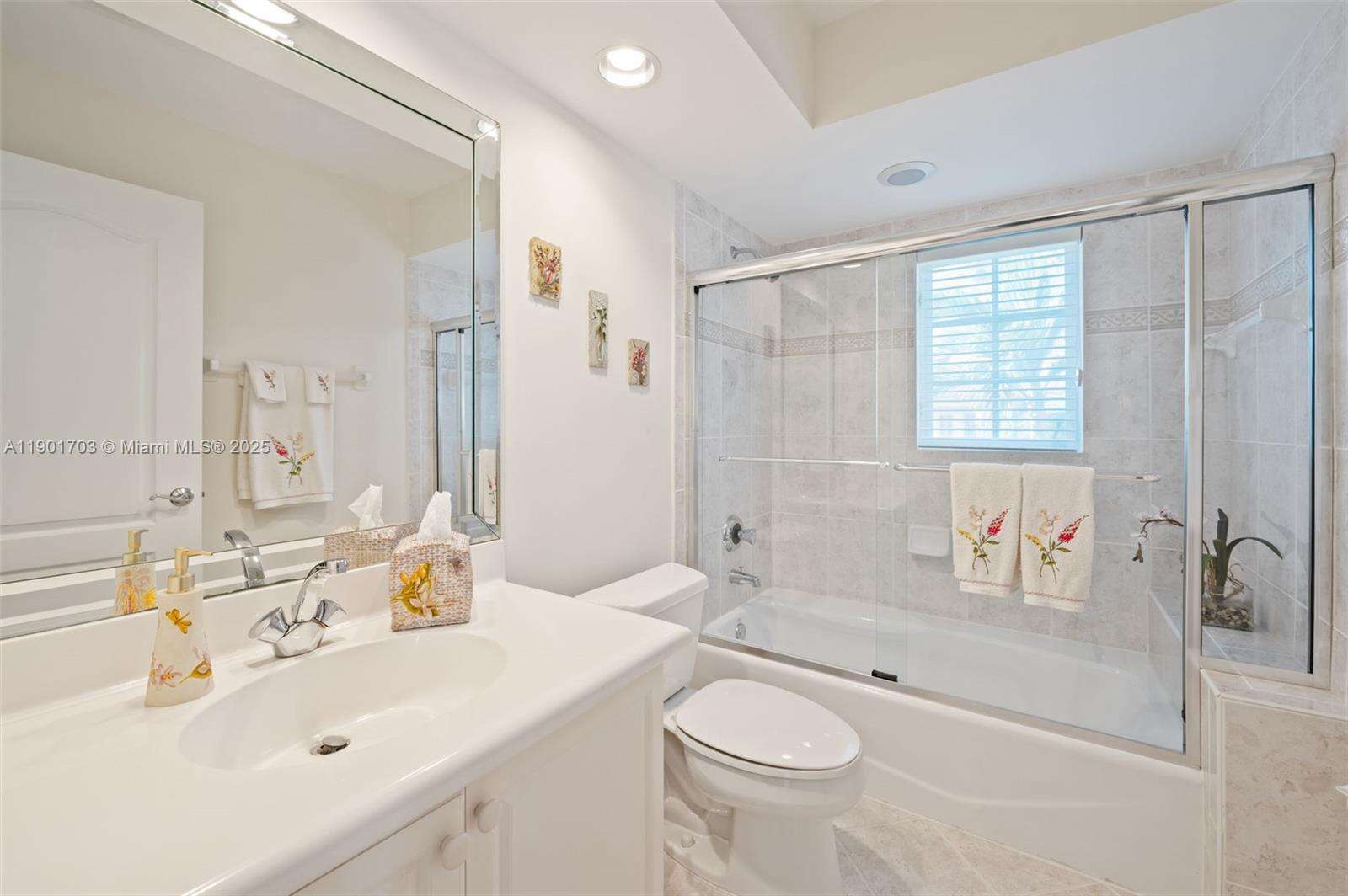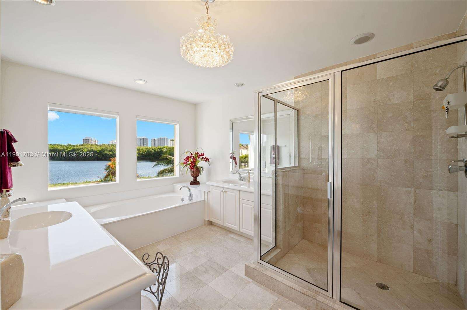 First time on the market! Gated sought-after home in the center of Aventura. Elegant Mediterranean-style in Aventura Lakes over 3,000 SqFt of luxury living, one of the largest floor plans in the community. Light and bright home featuring 4 spacious en-suite bedrooms, each with its own private bathroom, guest bathroom on the first floor. Hunter Douglas Silhouette, accordion shutters, french doors & balconies to enjoy the views. Professionally decorated residence rarely used as a second home, in pristine condition. Perfectly positioned on the preserve and a tranquil lakefront lot, enjoy a private pool and spa surrounded by peaceful views ideal for entertaining or simply relaxing. Great property to show. Chandeliers and select art pieces are excluded from the sale. Resort style clubhouse.