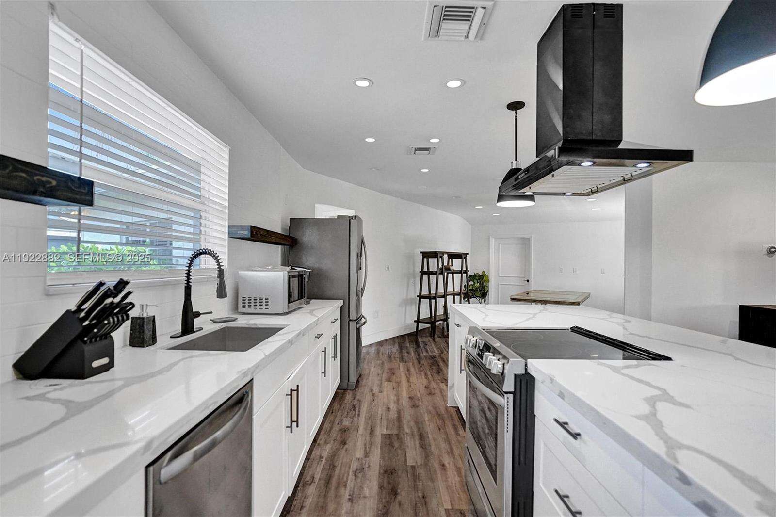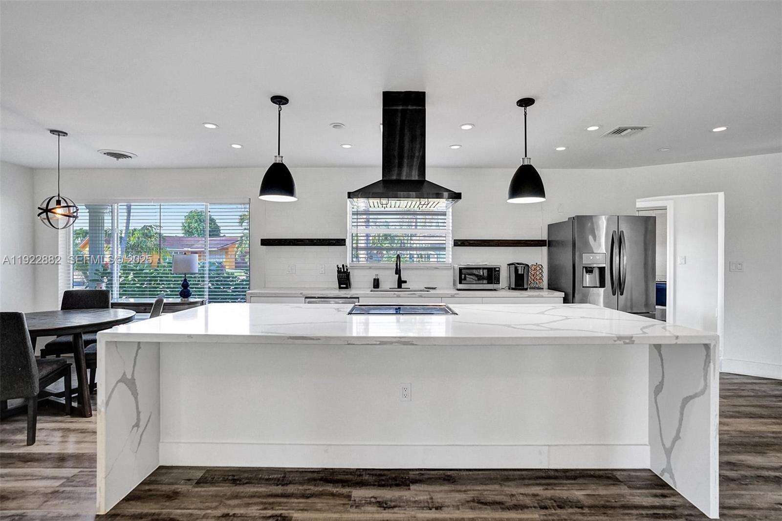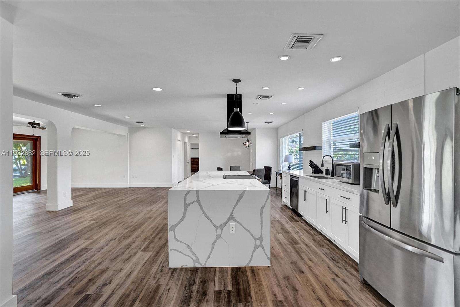 Location! Location! Location! This Wilton Manors waterfront gem offers ~50 feet of water frontage, ocean access (one fixed bridge), and the perfect setting for boaters who want both convenience and lifestyle. With plenty of room to add a pool, the property gives you flexibility to customize while enjoying the benefits of waterfront living. With 2,225 sq ft of living space, the 4 bed, 3 bath home features a desirable split floor plan with a layout that offers excellent natural light and flow throughout. A beautifully updated kitchen with quartz countertops and stainless steel appliances anchors the main living area, perfect for cooking and entertaining. A closed-door laundry room adds everyday convenience, and the oversized driveway can comfortably accommodate up to six cars—a rare benefit in Wilton Manors. Located on a quiet cul-de-sac just minutes from Wilton Drive, the beach, Las Olas, and downtown Fort Lauderdale, this home brings together location and waterfront lifestyle.