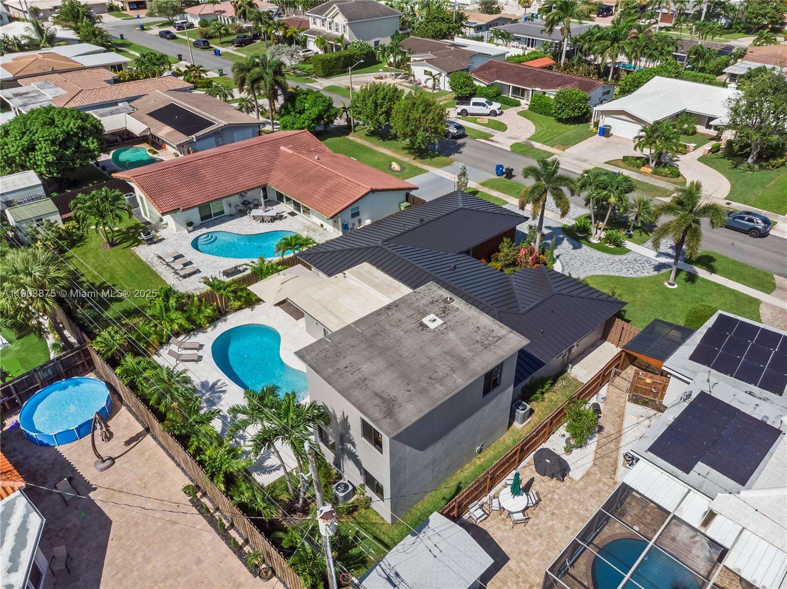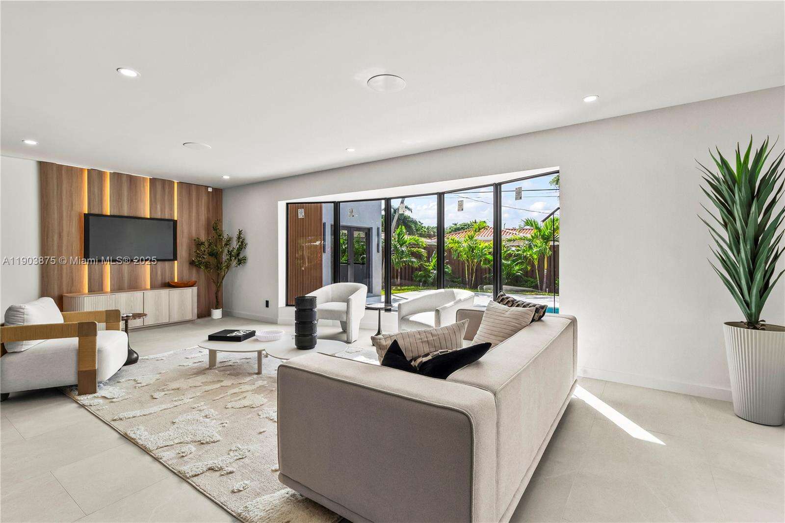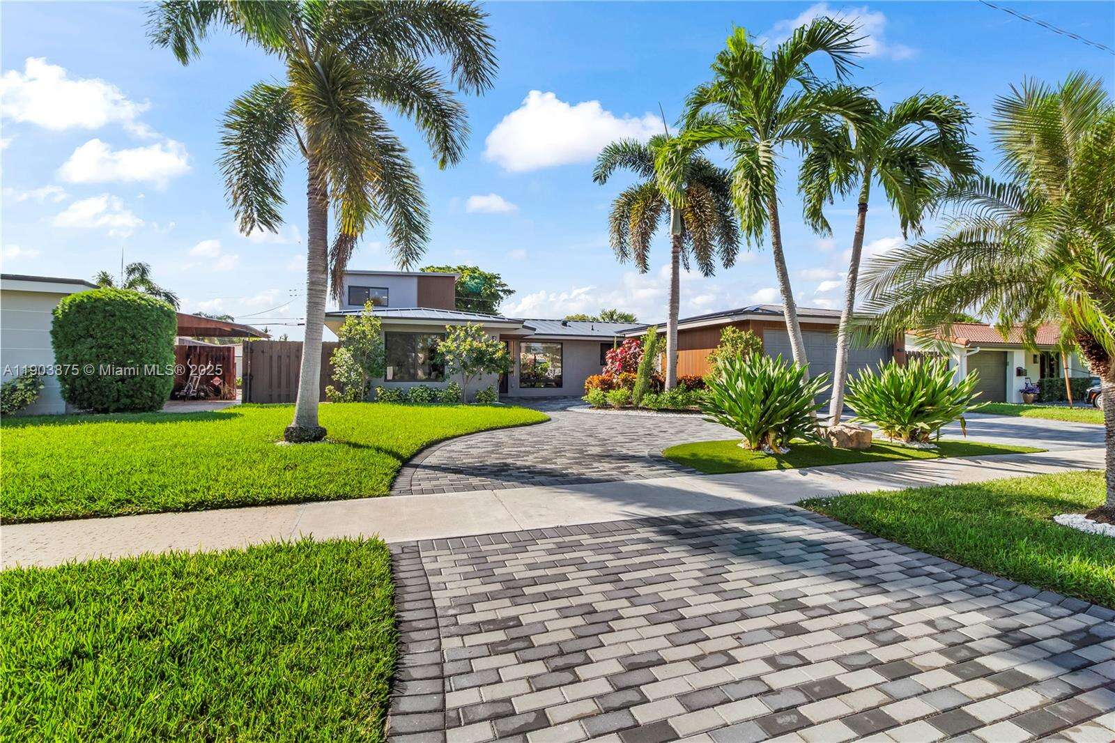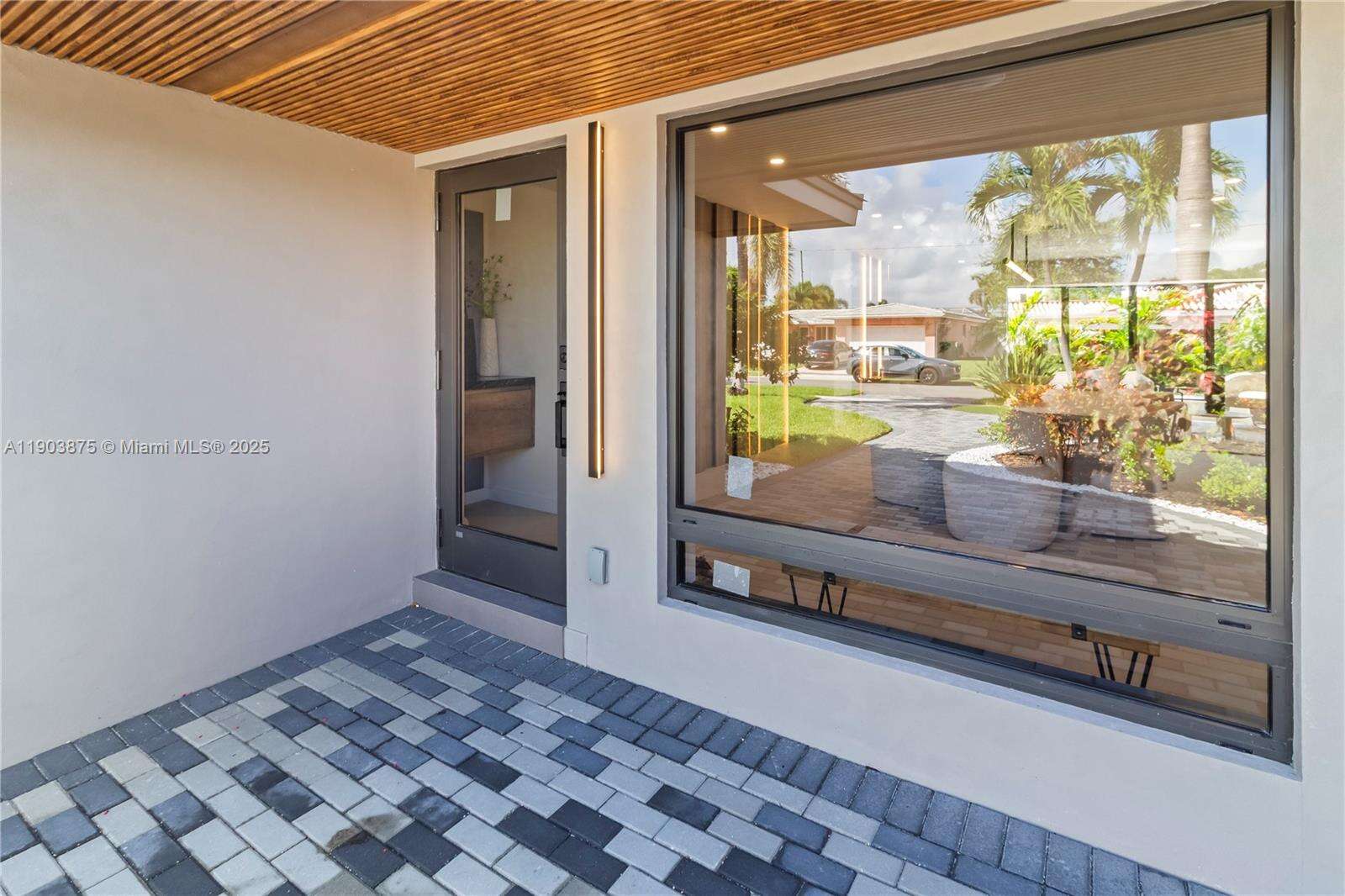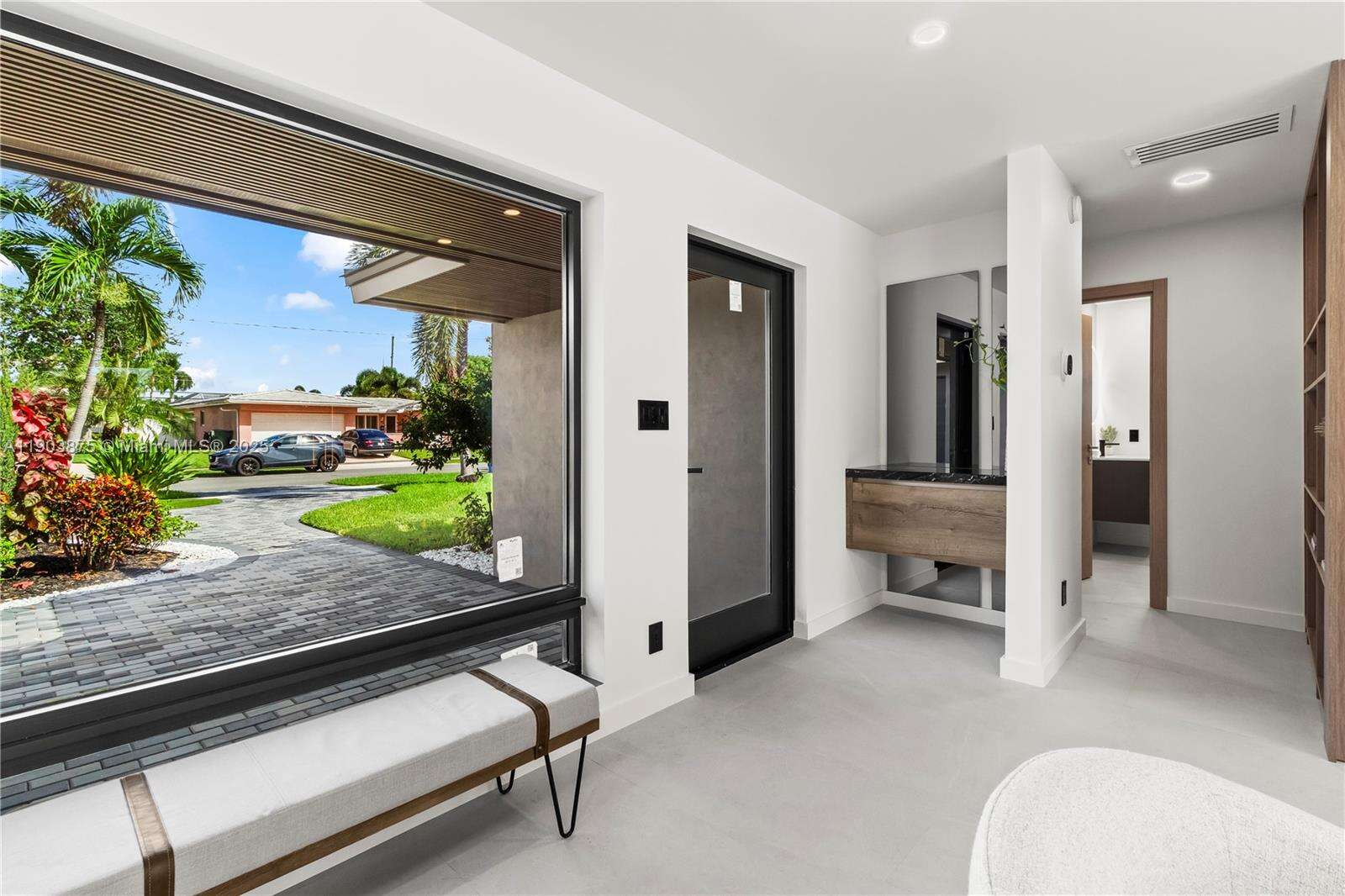 Experience modern luxury in this stunning 4BR/4BA home on one of the largest lots in the neighborhood (9,378 SF). Nearly 2,900 SF of living space includes a premium German kitchen with Monogram appliances, quartzite counters, and an 11-ft island. The open layout showcases 24x48 Spanish porcelain tile, hardwood floors, Sonos audio, and new stucco facades. Enjoy resort-style outdoor living with a marble patio, an LED-lit pool, a built-in BBQ, and lush landscaping featuring irrigation. The primary suite features a spa bath with a freestanding tub, an oversized shower, and a custom glass closet. Solid CMU block, new electrical system, 2025 metal roof, full impact glass, and new paver driveway. East Fort Lauderdale, no HOA, Flood Zone X.