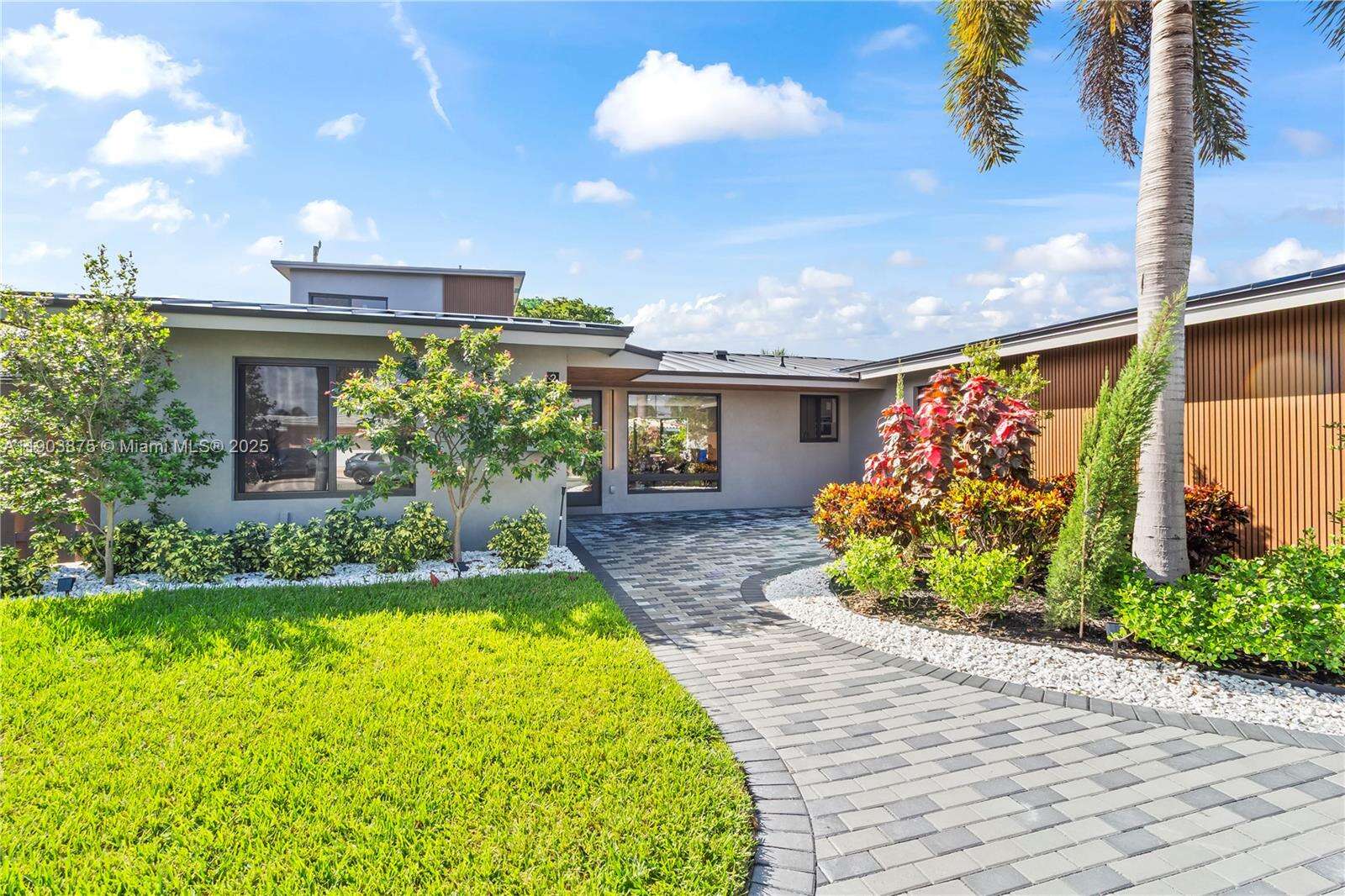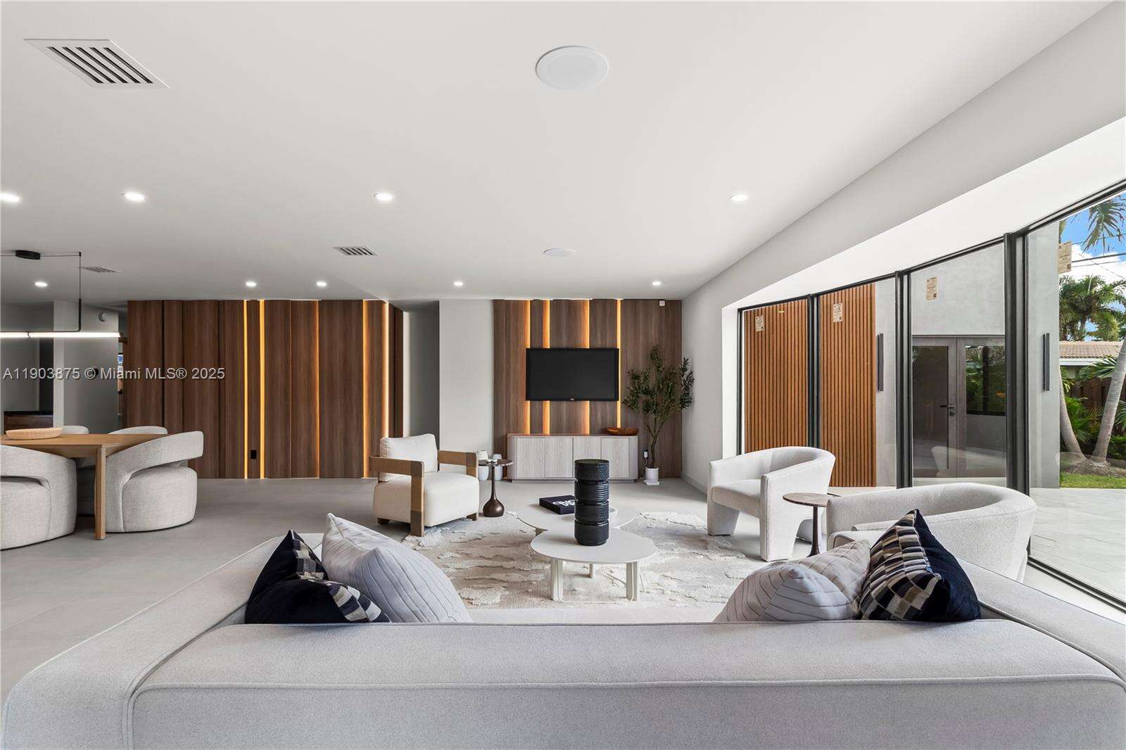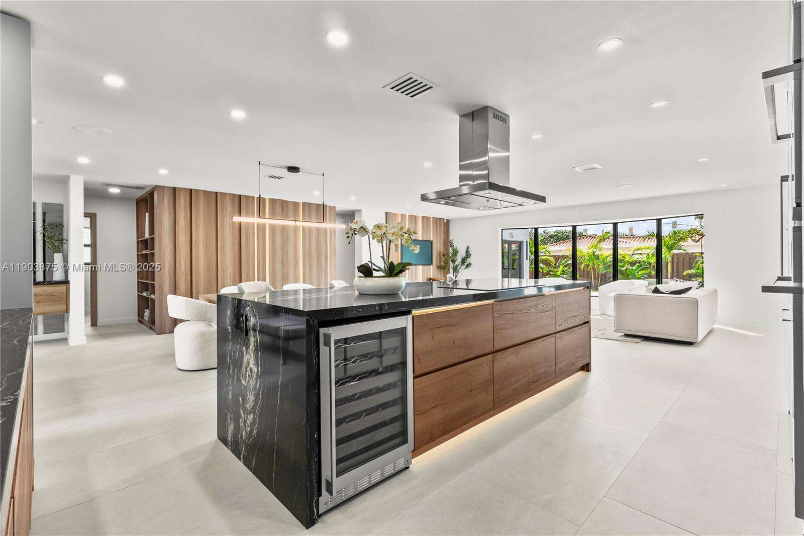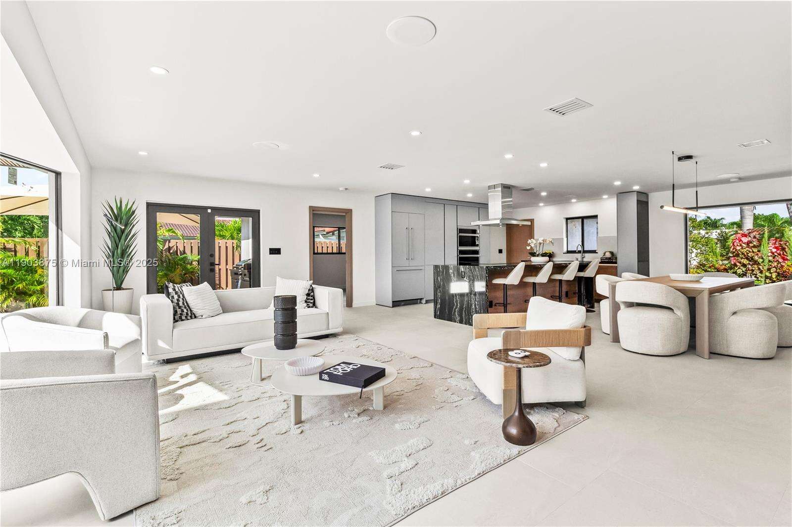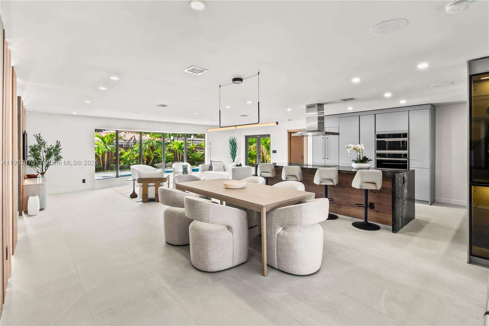 Experience modern luxury in this stunning 4BR/4BA home on one of the largest lots in the neighborhood (9,378 SF). Nearly 2,900 SF of living space includes a premium German kitchen with Monogram appliances, quartzite counters, and an 11-ft island. The open layout showcases 24x48 Spanish porcelain tile, hardwood floors, Sonos audio, and new stucco facades. Enjoy resort-style outdoor living with a marble patio, an LED-lit pool, a built-in BBQ, and lush landscaping featuring irrigation. The primary suite features a spa bath with a freestanding tub, an oversized shower, and a custom glass closet. Solid CMU block, new electrical system, 2025 metal roof, full impact glass, and new paver driveway. East Fort Lauderdale, no HOA, Flood Zone X.