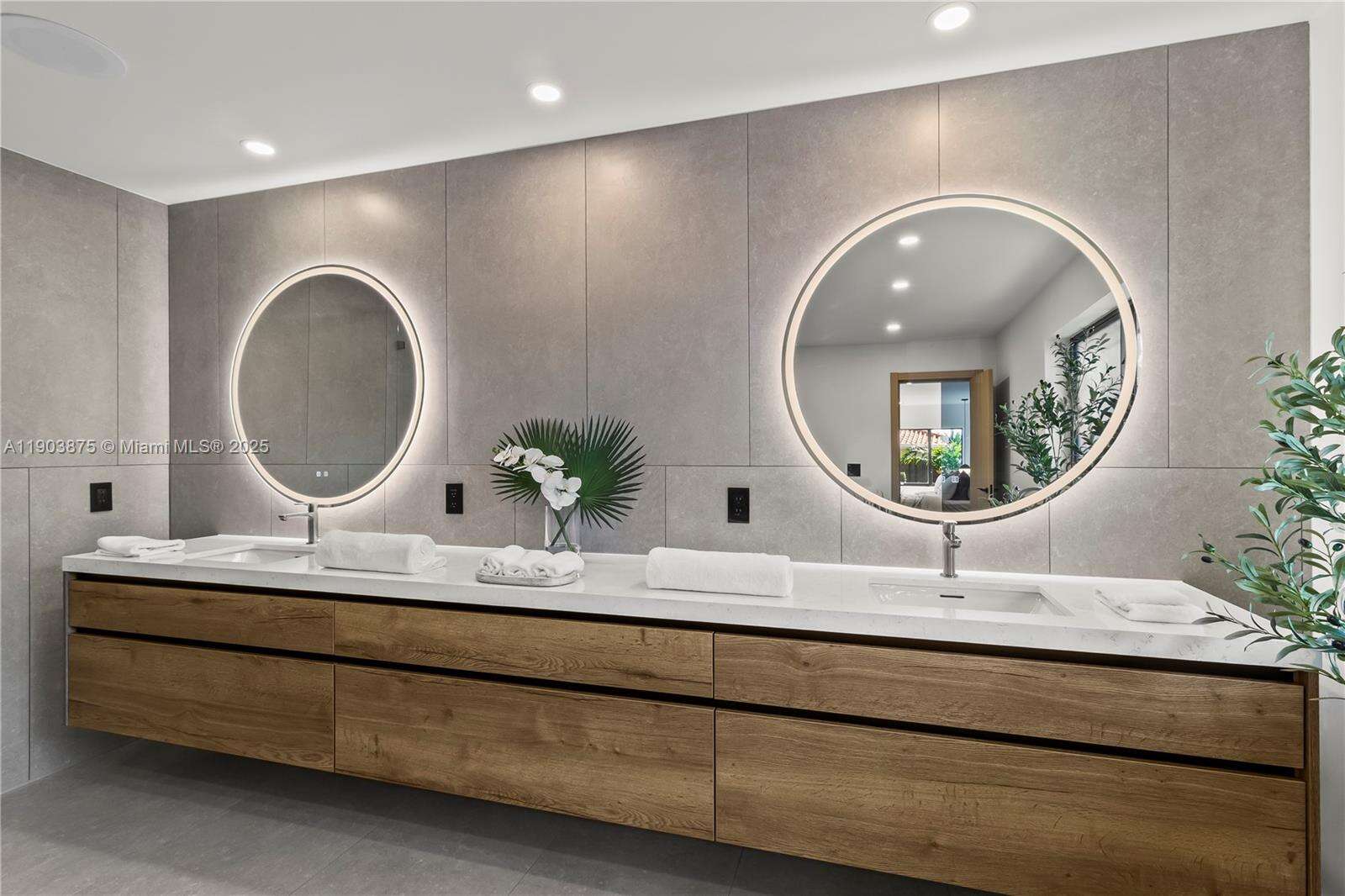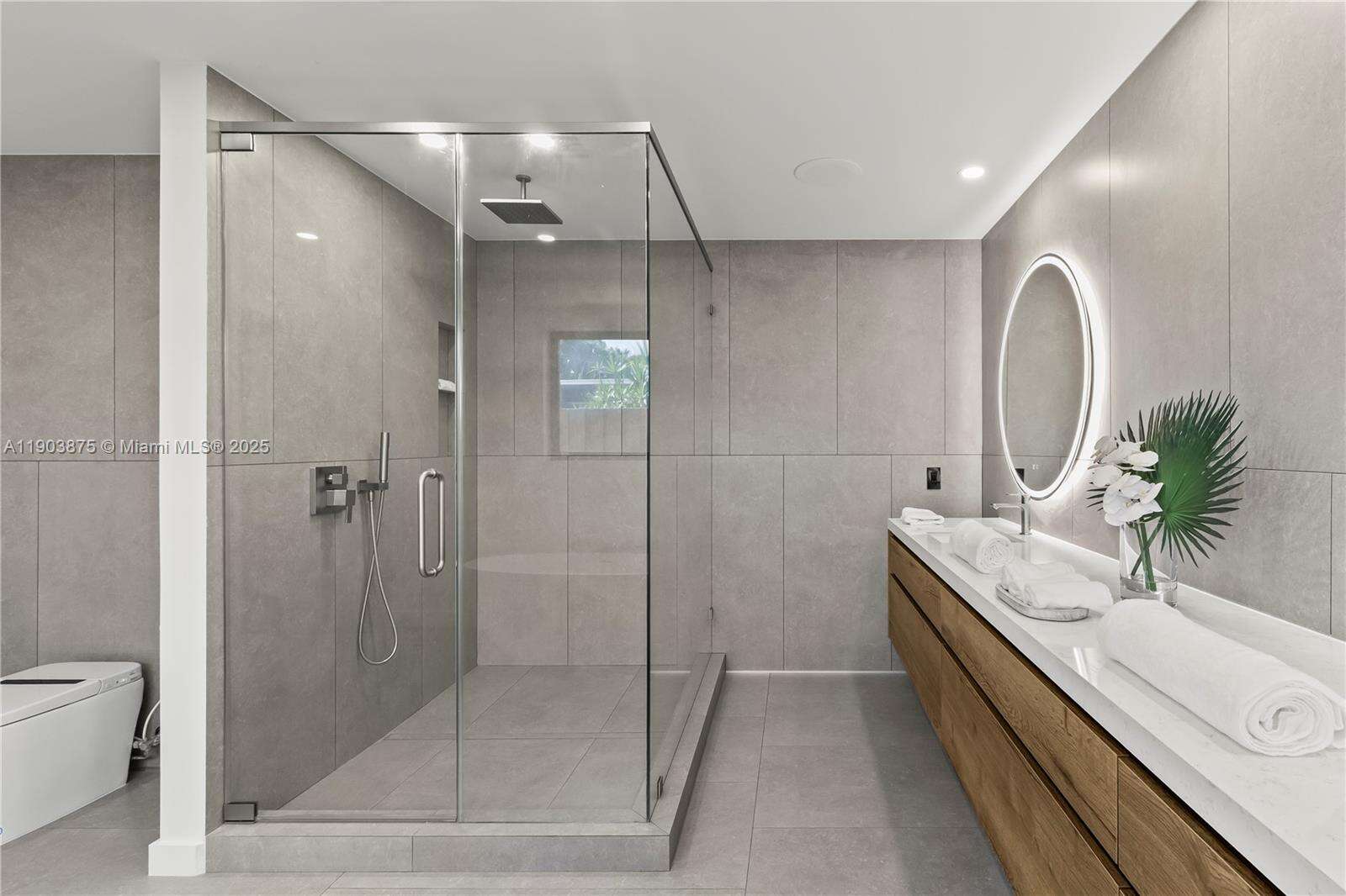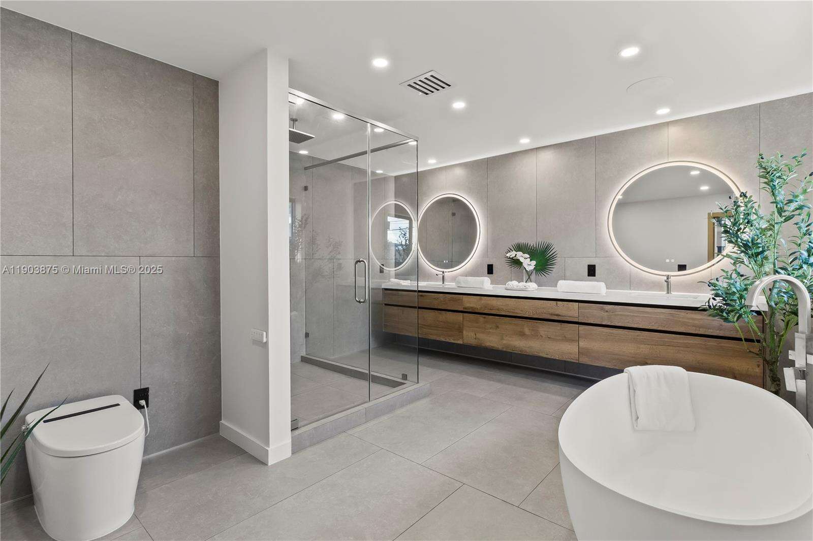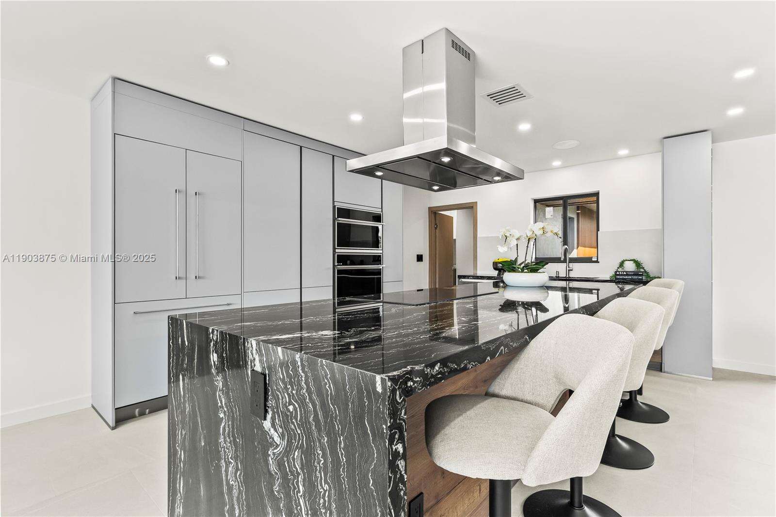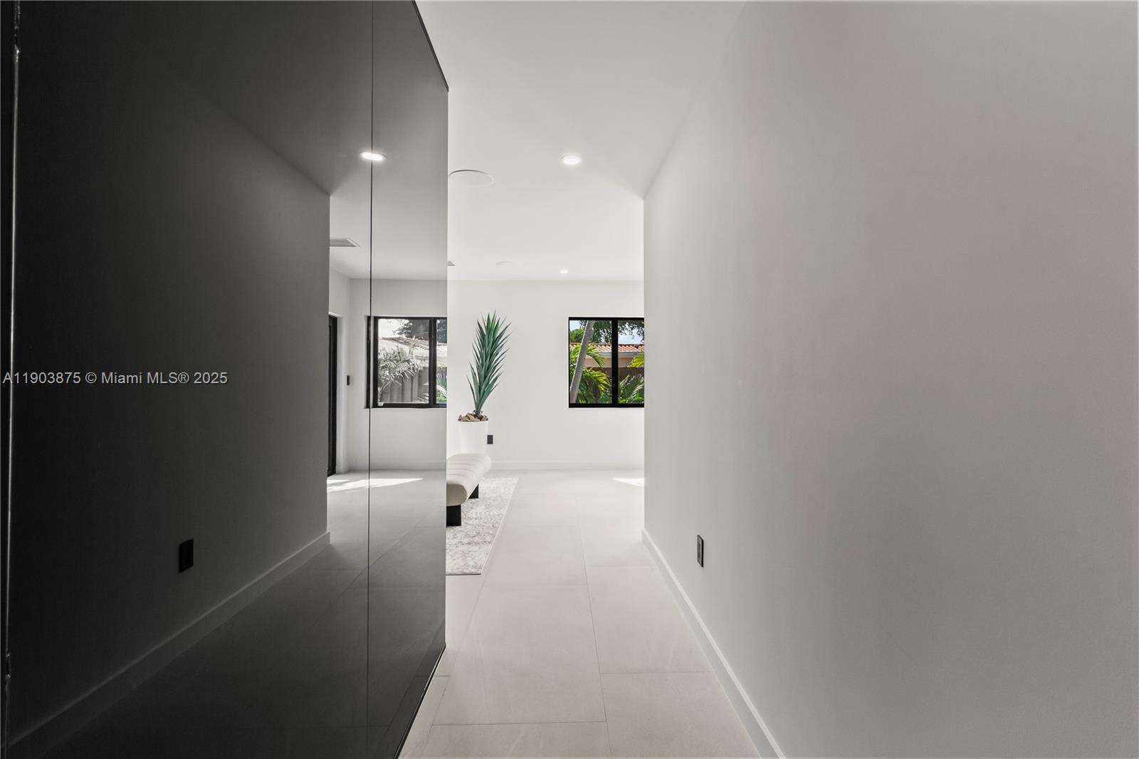 Experience modern luxury in this stunning 4BR/4BA home on one of the largest lots in the neighborhood (9,378 SF). Nearly 2,900 SF of living space includes a premium German kitchen with Monogram appliances, quartzite counters, and an 11-ft island. The open layout showcases 24x48 Spanish porcelain tile, hardwood floors, Sonos audio, and new stucco facades. Enjoy resort-style outdoor living with a marble patio, an LED-lit pool, a built-in BBQ, and lush landscaping featuring irrigation. The primary suite features a spa bath with a freestanding tub, an oversized shower, and a custom glass closet. Solid CMU block, new electrical system, 2025 metal roof, full impact glass, and new paver driveway. East Fort Lauderdale, no HOA, Flood Zone X.