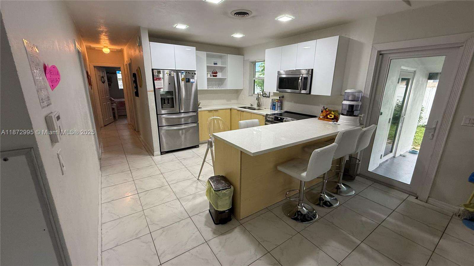 This well-maintained one-story home features 3 bedrooms plus a den converted into a 4th bedroom, and 2 full baths, set on a spacious 7,500 Sq.Ft. lot. Located adjacent to the highly desirable Highland Lakes community. The open floor-plan offers seamless flow between the living room, dining room, family room, and kitchen, which boasts white granite countertops and stainless steel appliances. Recent upgrades include a new roof, impact windows and doors, new AC, water heater, and solar panels for enhanced energy efficiency. A dedicated laundry room and storage shed add convenience. Enjoy the prime location, walking distance to A-rated schools and Houses of Worship, and just minutes from Aventura Mall, beaches, shopping, and I-95. Motivated seller, all offers welcome!