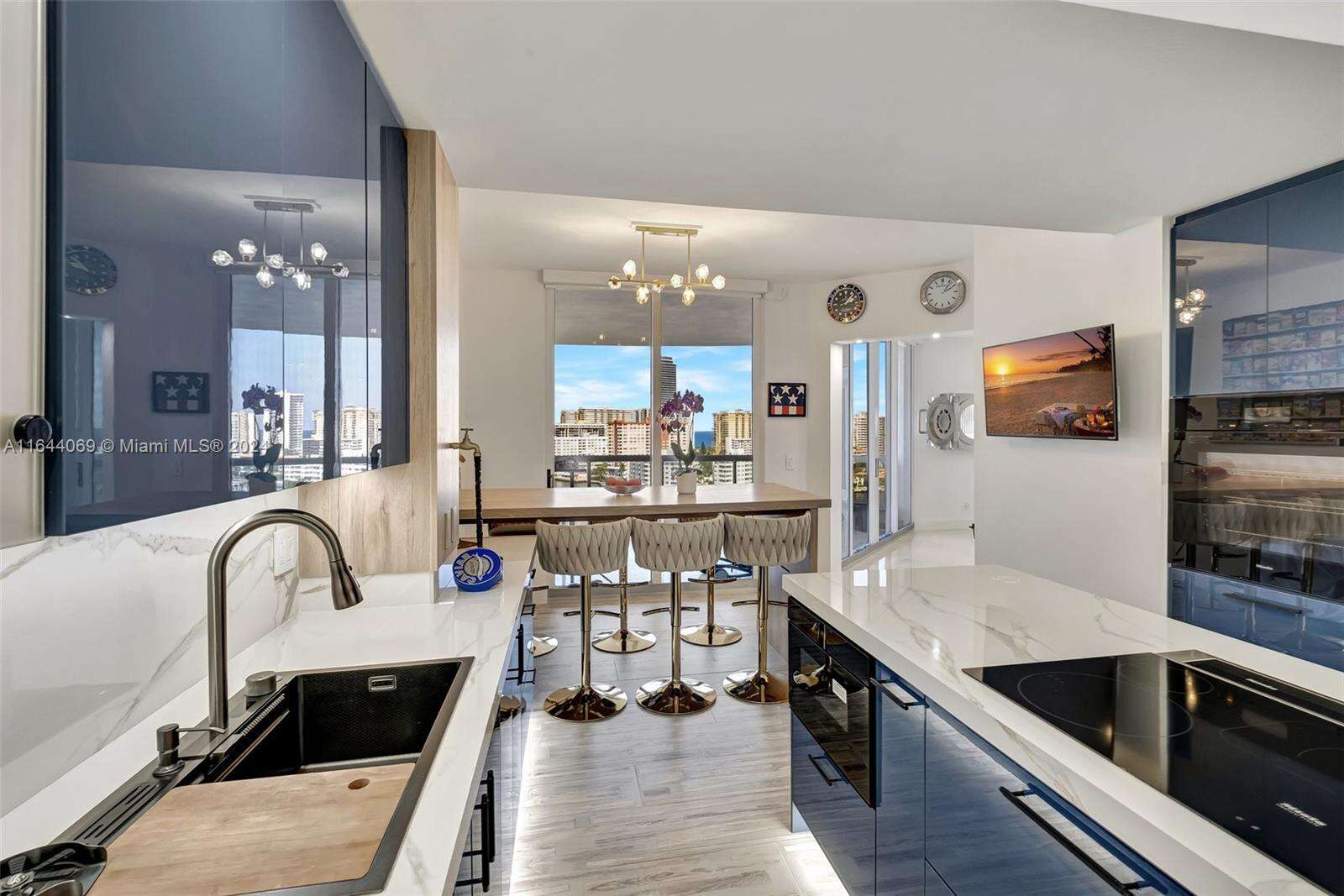 WOW! CONTEMPORARY MASTERPIECE! Enter through private elevator and immediately see panoramic ocean, bay, & city vistas throughout! This extraordinary 3173 sf modern sky home will leave you breathless. Almost $1 million spent in remodeling! No expense spared, all redone with the finest finishes, nothing original remains. Enjoy custom lighting throughout, new state of the art kitchen with top of the line appliances, huge primary suite in private wing w/ large closet and spectacular new ensuite bathroom, new bathrooms, Wide open floor plan, spacious living area, and two expansive terraces! Experience The Resort Lifestyle That Only The Point Can Offer, Including Renovated 25,000sf Resident's Club, Juice N Java Cafe, Gym, Spa, 4 Tennis Courts, 3 Pools, BBQ Area, Kids Playground, and More!