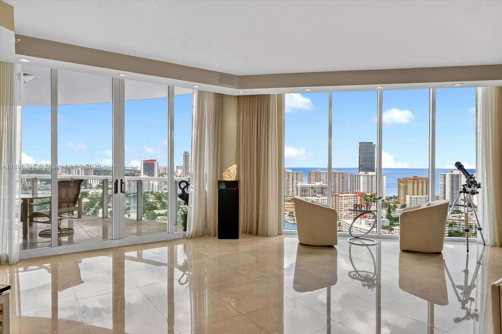 Penthouse 1 is your new home with panoramic views of the Atlantic Ocean and Intracoastal Waterway. The unit has been renovated with new kitchen and bathrooms, updated flooring, updated sound system and new lighting. Step out of the elevator into your private foyer with floor to ceiling glass foyer doors. This luxurious unit has a spacious open living floor plan, large master bedroom and master bathroom, and impact windows throughout. Building amenities include a full-service spa, private theater, three resort-style pools, tennis courts, wine storage. Families will appreciate children’s playroom. Two premium parking spaces. Experience refined living at one of Aventura's area’s most prestigious addresses.