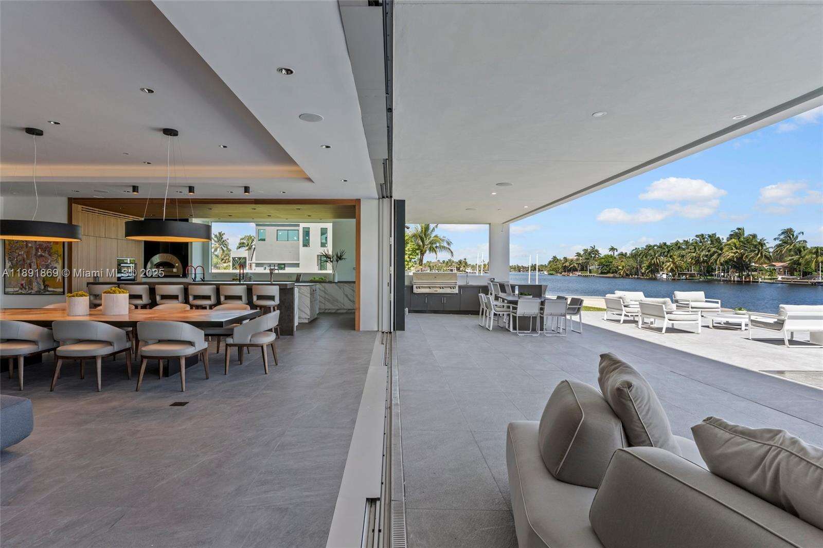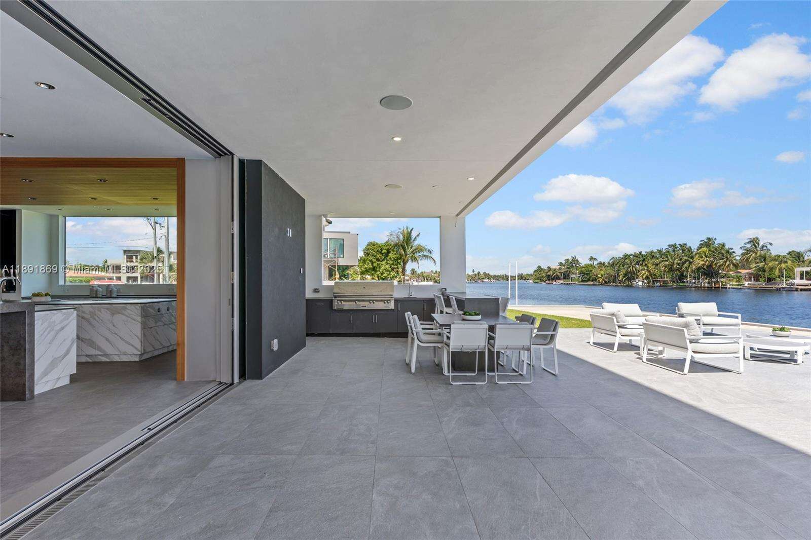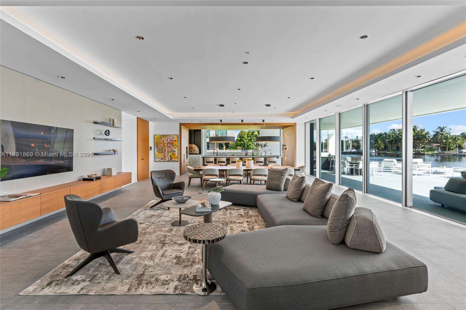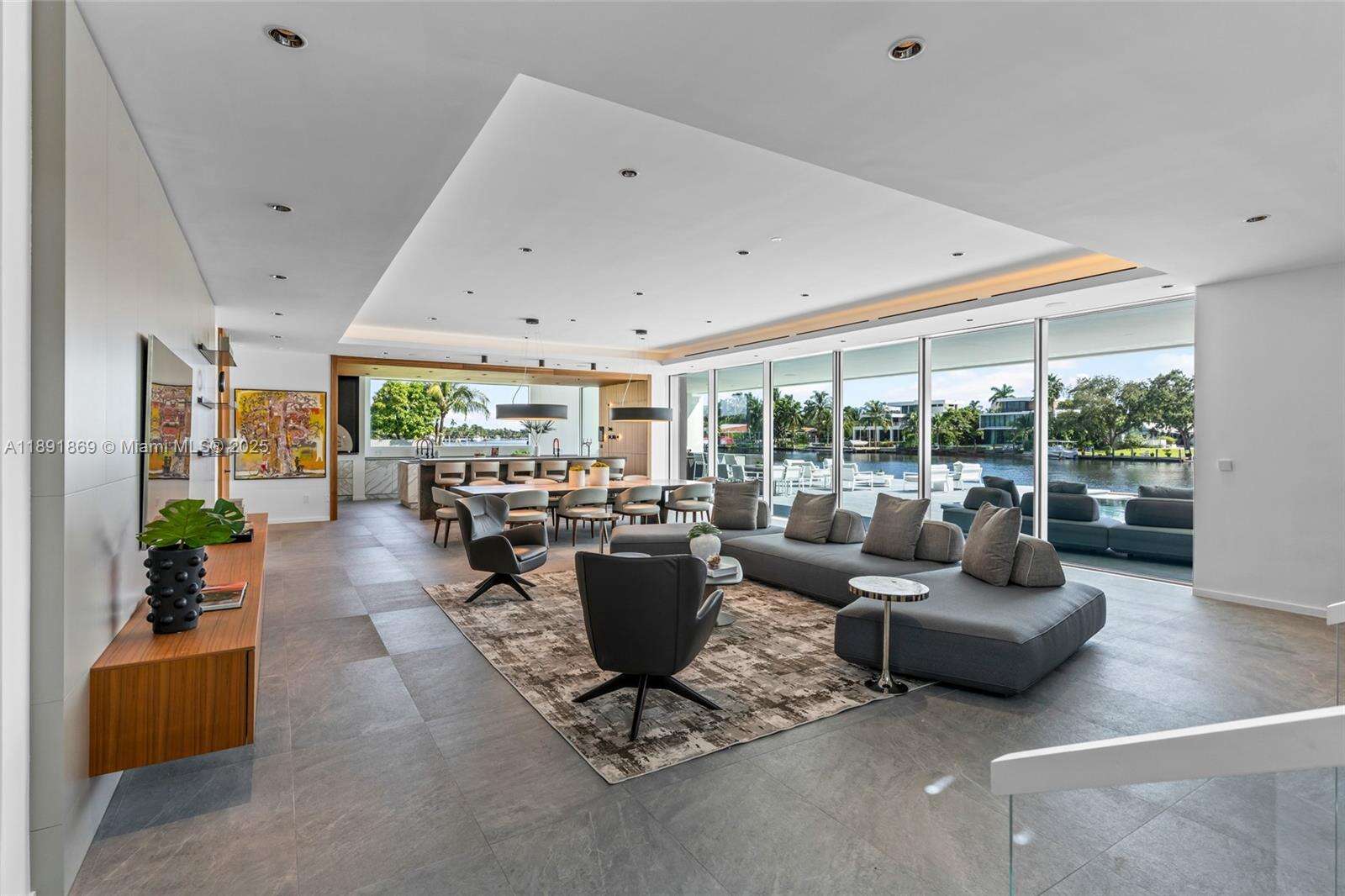 Fort Lauderdale’s Crown Jewel - an architectural waterfront showpiece fusing cutting-edge design, technology, & luxury on 0.58 acres with 205 ft of water frontage. This tri-level stunner boasts motorized floor-to-ceiling glass doors, Loxone smart automation, & an elevator. Main level impresses with an office & a grand family room opening to a sprawling covered terrace, plus a chef’s dream kitchen w/ hibachi grill, pizza oven, & full secondary kitchen. Upstairs: gym, 3 lavish junior suites, & wraparound balcony. The entire 3rd floor is the private primary suite w/ breathtaking views. Outdoors ftrs an infinity pool, BBQ, 50,000-lb lift, 3,000 SF dock, 78 Solar Panels, Drive through garage w/ high ceilings & BUILDABLE Lot w/ limitless options. A new benchmark for waterfront living in FTL!