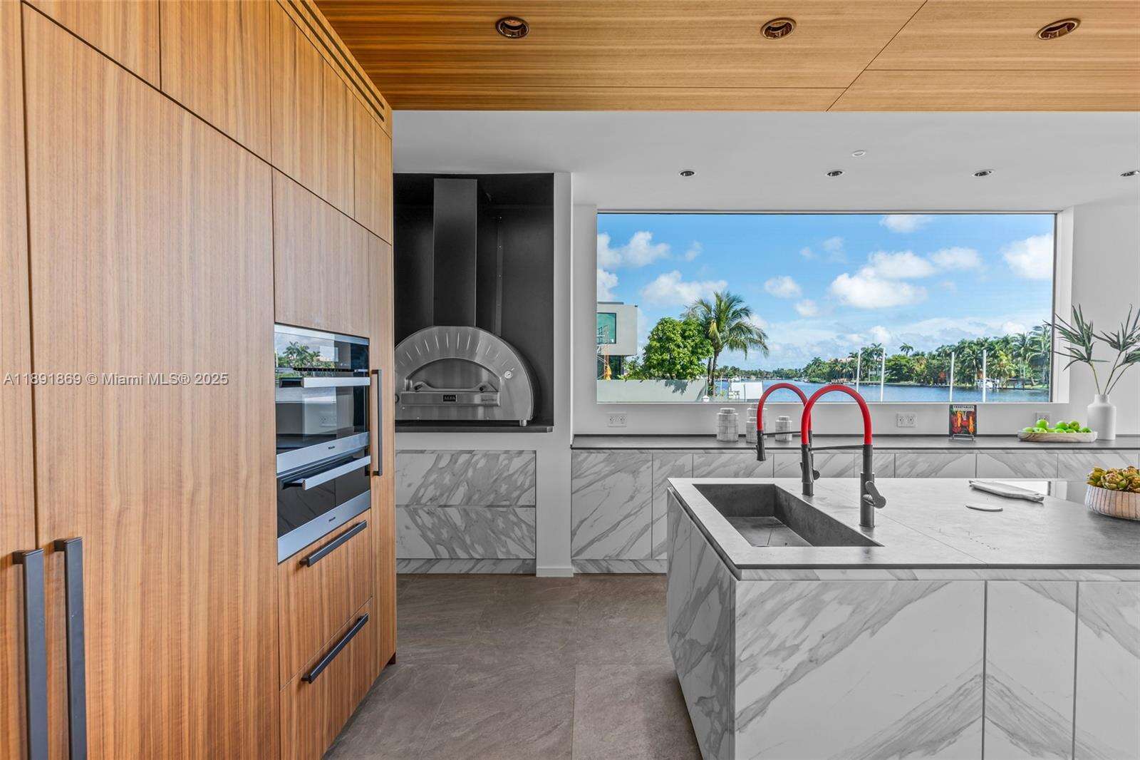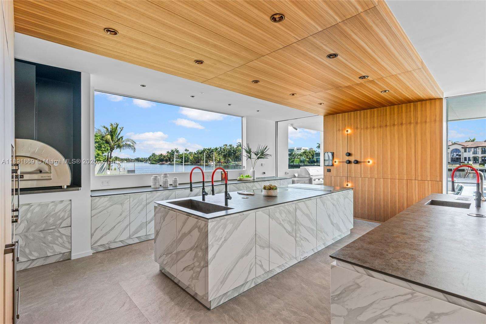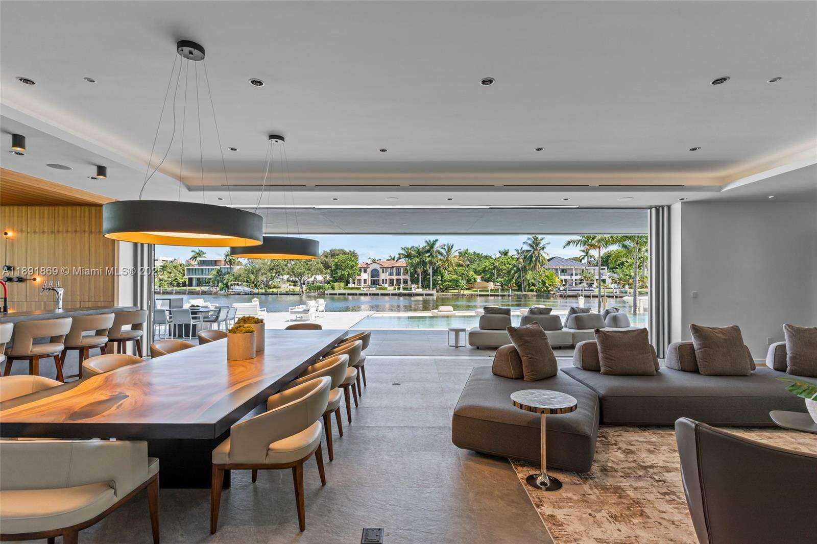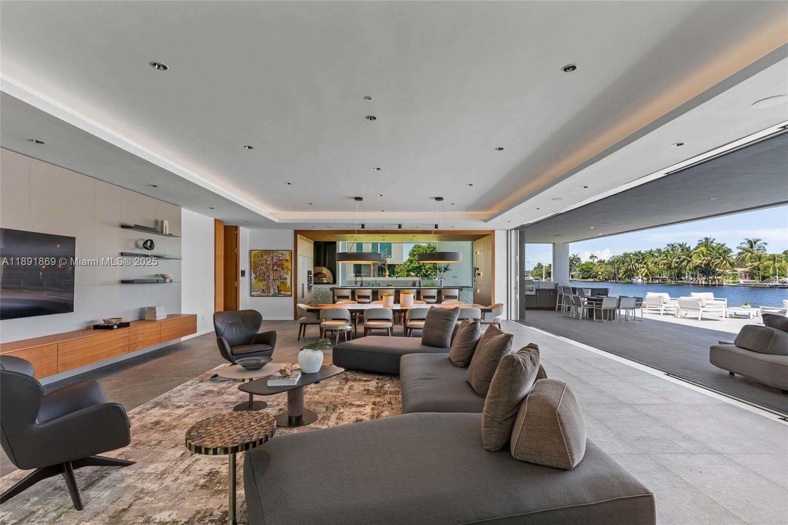Fort Lauderdale’s Crown Jewel - an architectural waterfront showpiece fusing cutting-edge design, technology, & luxury on 0.58 acres with 205 ft of water frontage. This tri-level stunner boasts motorized floor-to-ceiling glass doors, Loxone smart automation, & an elevator. Main level impresses with an office & a grand family room opening to a sprawling covered terrace, plus a chef’s dream kitchen w/ hibachi grill, pizza oven, & full secondary kitchen. Upstairs: gym, 3 lavish junior suites, & wraparound balcony. The entire 3rd floor is the private primary suite w/ breathtaking views. Outdoors ftrs an infinity pool, BBQ, 50,000-lb lift, 3,000 SF dock, 78 Solar Panels, Drive through garage w/ high ceilings & BUILDABLE Lot w/ limitless options. A new benchmark for waterfront living in FTL!