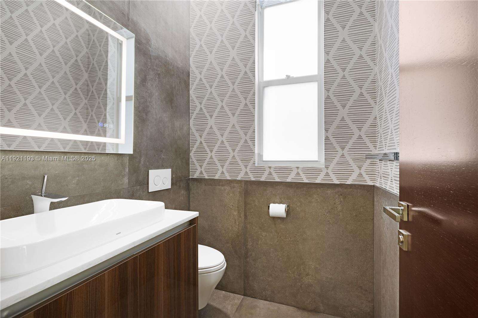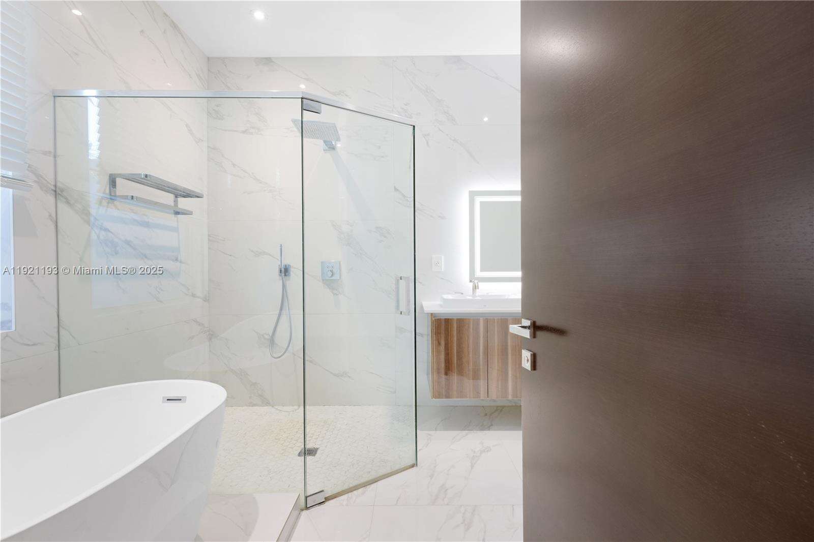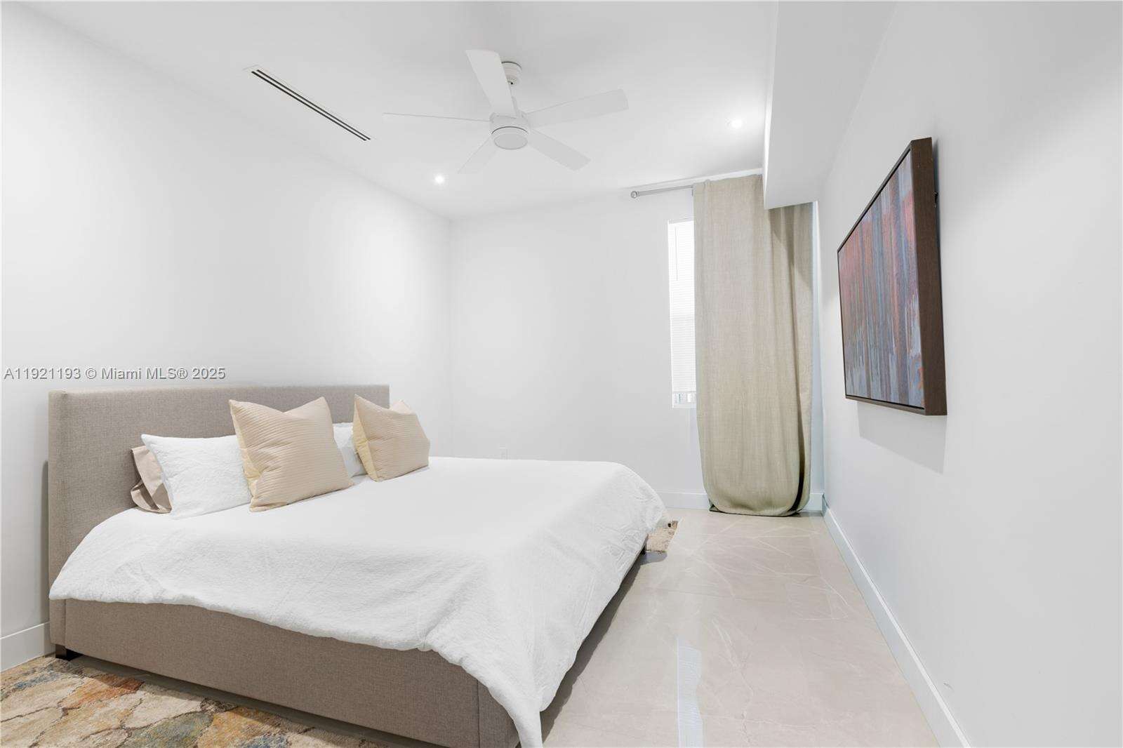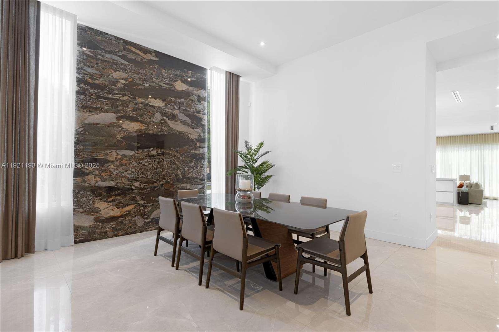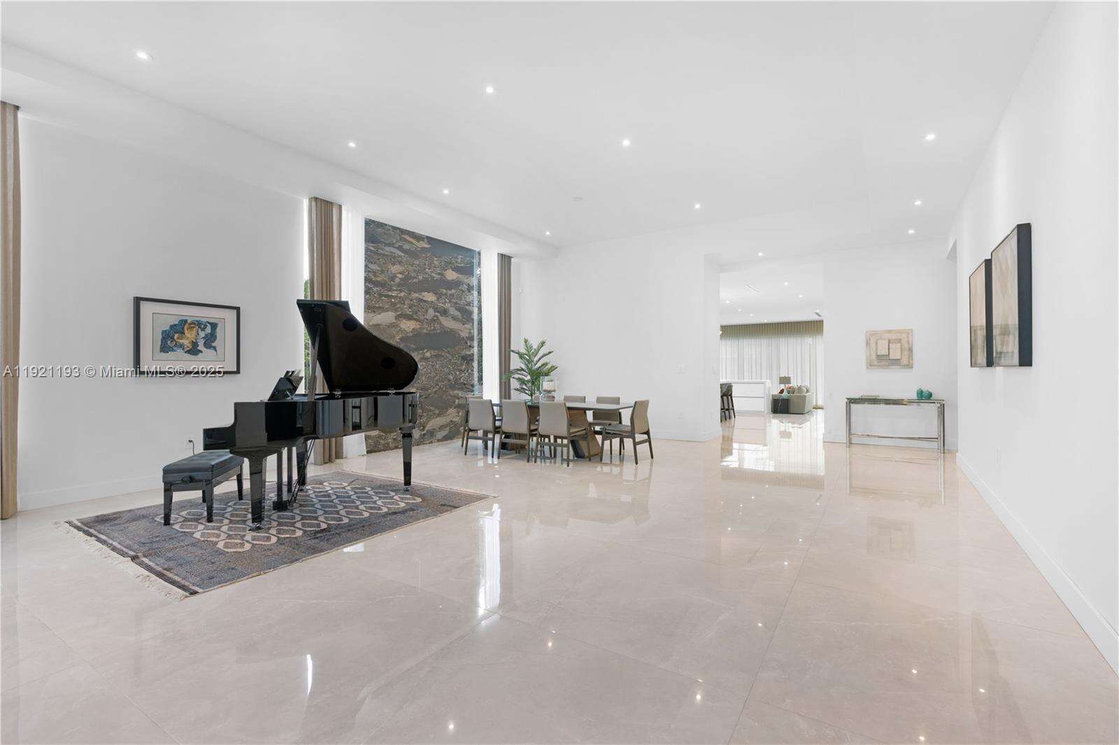A residence of remarkable elegance, volume and presence throughout. Soaring 12-foot ceilings, expansive open spaces, and beautifully filtered natural light define this distinguished residence. Premium 48x48 Spanish ceramic flooring, 8-foot solid wood doors, and a sleek modern kitchen appointed with Bosch appliances elevate the home’s refined aesthetic. A private family room enhances the living experience with a built-in ice maker, wine cooler, and direct access to the terrace. Sliding glass doors open wide to create a seamless connection between the interior and the outdoor areas, extending the home’s sense of scale and comfort. Additional features include Toto ceramic fixtures, upgraded electrical installation for enhanced efficiency, and a strategically engineered AC system. Approved pool plans offer the opportunity to further elevate the exterior environment.