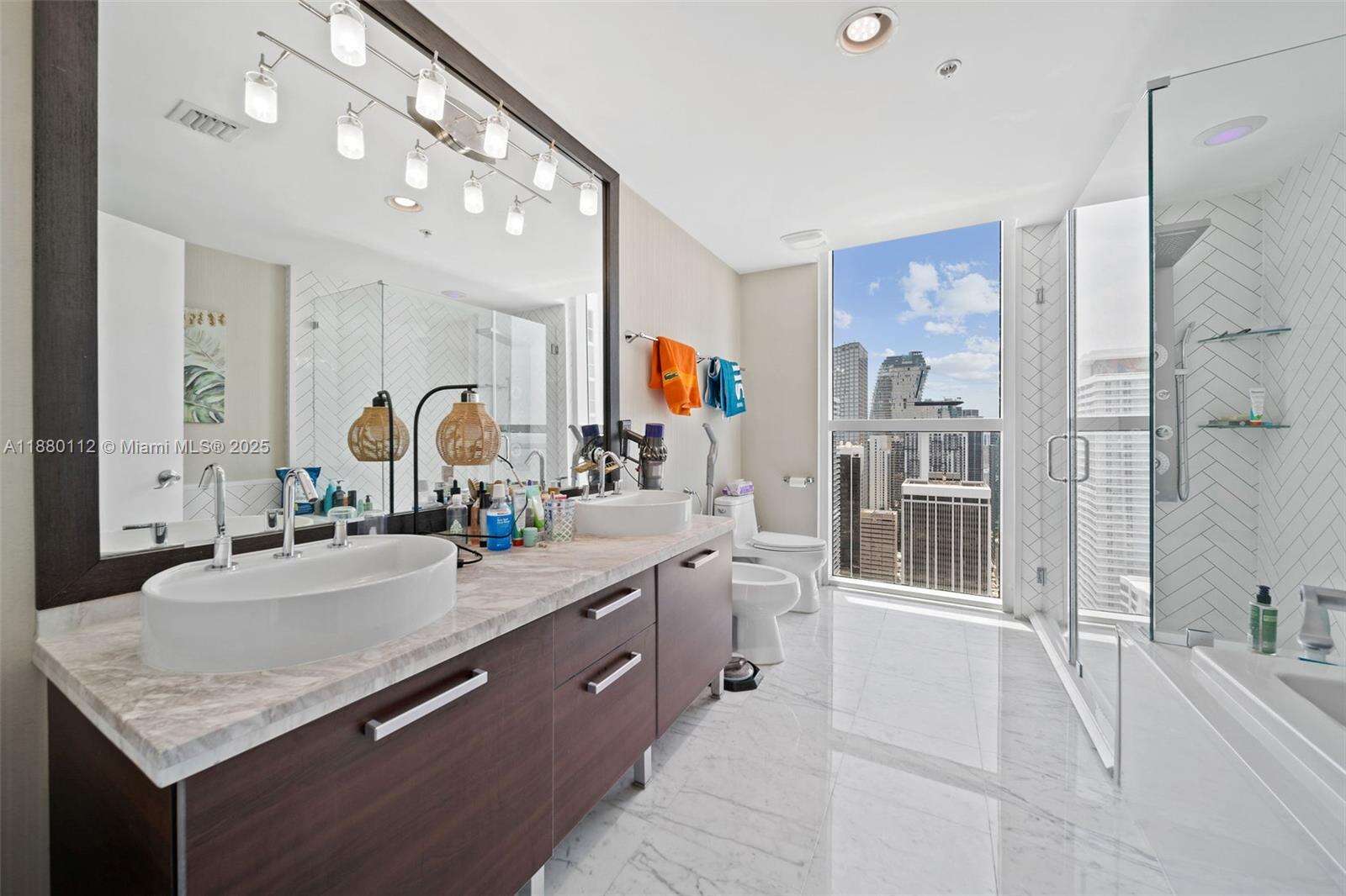 Luxury turnkey 3/3 condo in the heart of Downtown Miami. Fully furnished & ready to call home or rent for income. Enjoy breathtaking sunsets & skyline views from living room with floor to ceiling glass. Upgrades include remodeled kitchen w waterfall countertop, top of the line appliances, updated primary bath, Somfy electric curtains, water filtration system. Entertain friends in the gorgeous modern living space with 2 balconies, then retreat to your primary suite with spa like bath & custom walk in closet. Exclusive amenities include 4 pools, state of the art gym & spa w cold plunge pool, theater, business center & more. Short term rental allowed (30 day min) Perfectly situated next to Waldorf Astoria & steps from Bayfront Park, Worldcenter, Kaseya center, museums, dining & entertainment.