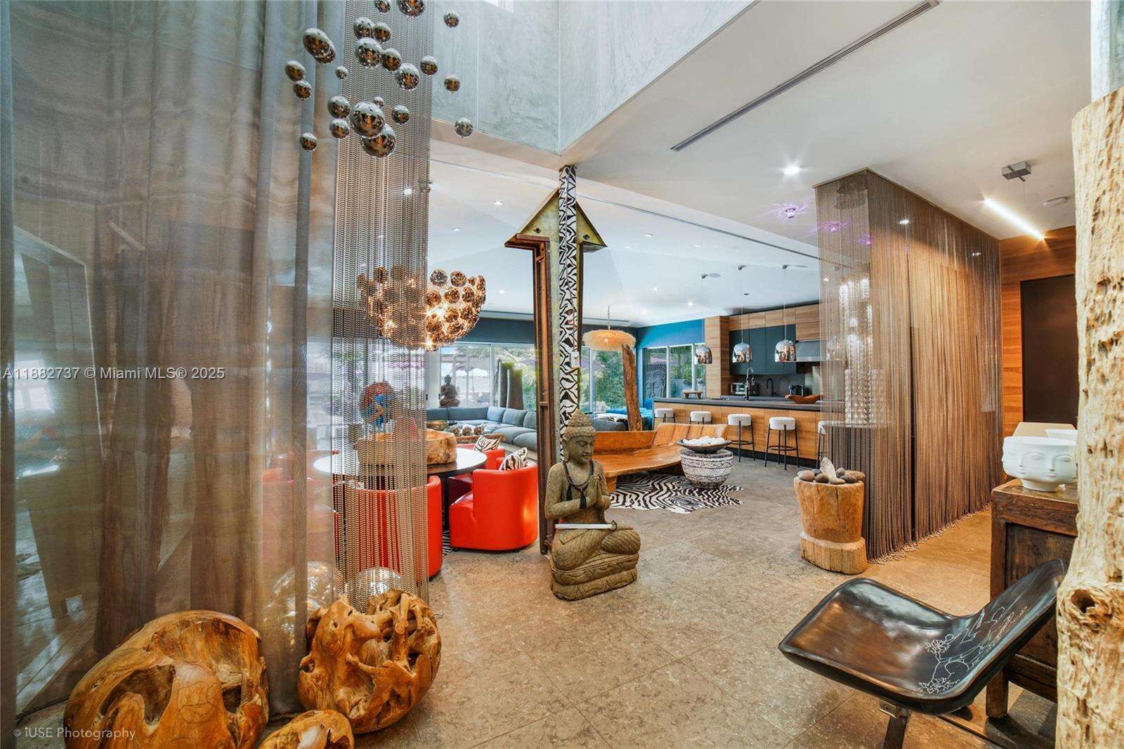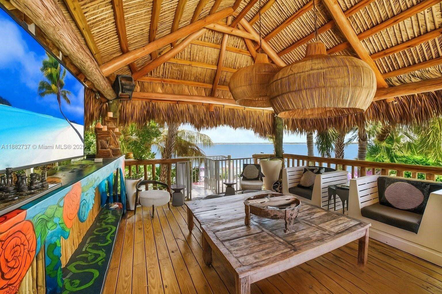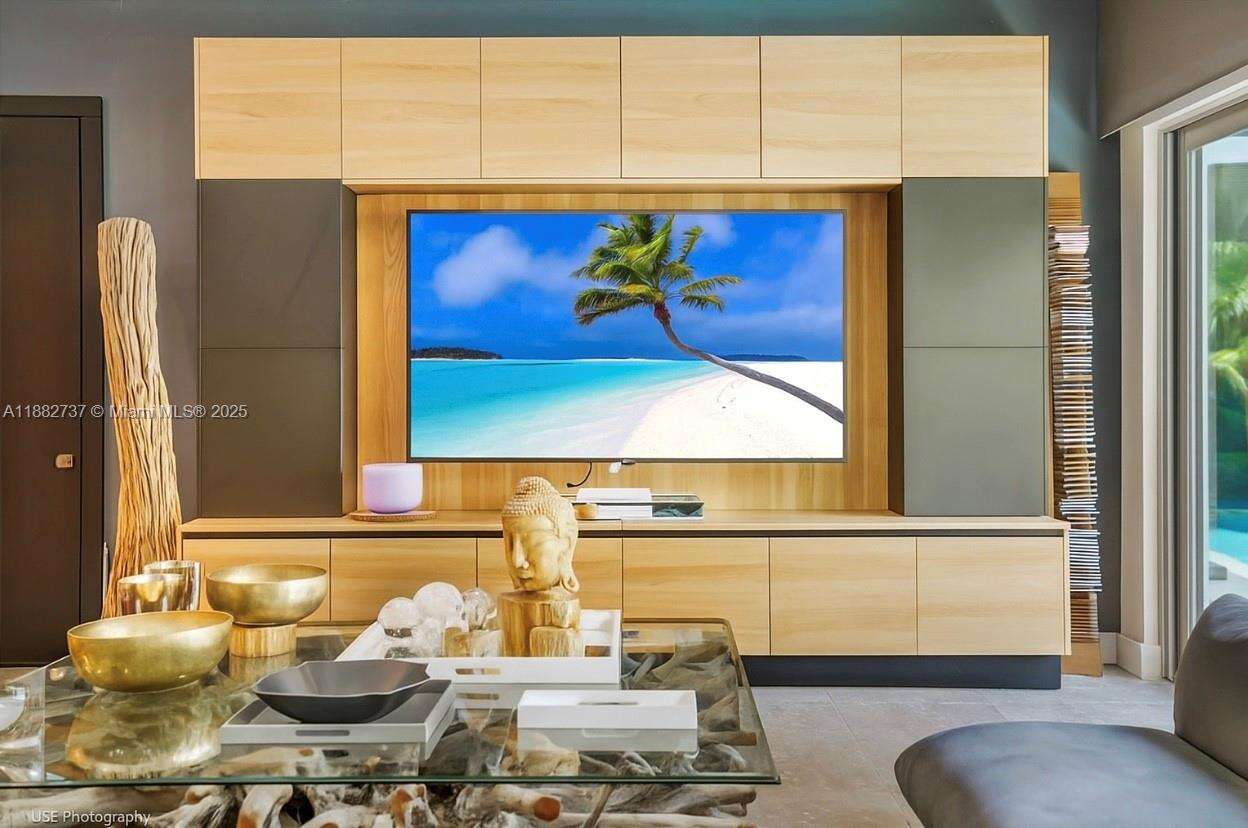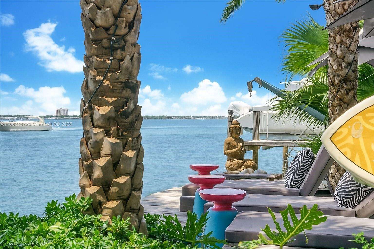 One-of-a-kind waterfront masterpiece! This unique home sits on a cul-de-sac on Normandy Shores exclusive gated community, w/ Normandy Shores Golf Club, Tennis, Basketball Courts, and Parks. Nestled on the Island's Terrace, shares w/only 6 residences breathtaking open bay views and sunsets. Built in 2015, this 3,442 SQ FT eccentric home features 4 bed/4 bath, open living and dining, state-of-the-art kitchen, and more. The home's Zen vibe begins as you step through a bamboo garden, 30 ft interior waterfall, and end at the open bay sanctuary. The backyard landscaping, shimmering pool, outdoor kitchen, and terraces make this home magic. Bath in the outdoor tub, watch movies at the two-story Tiki Hut, and enjoy the dock at sunset. Boat and Jet Ski lifts and davit. Plans for a two-car garage.