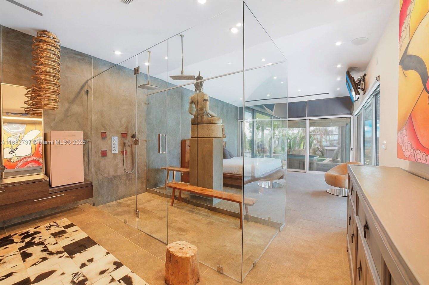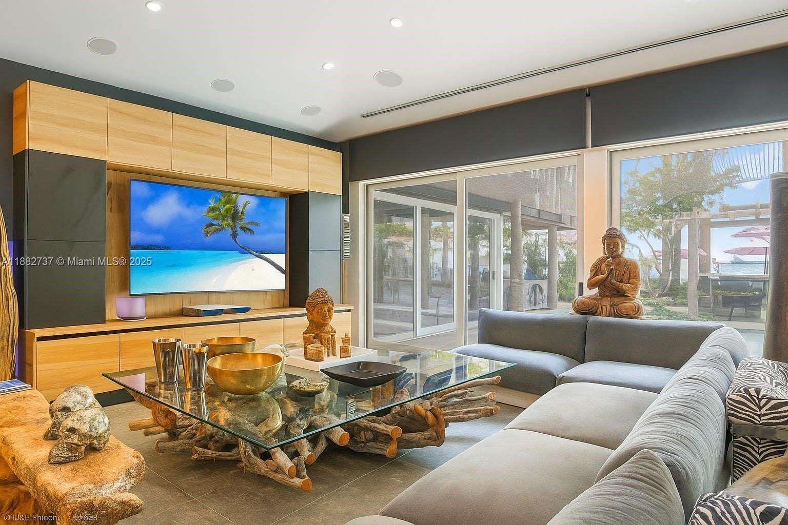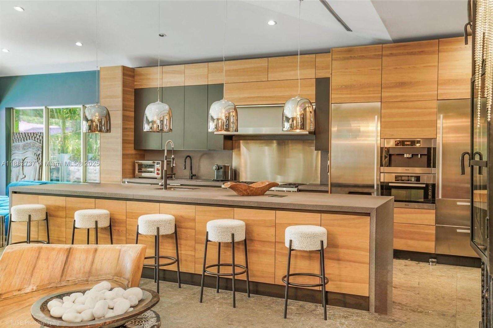 One-of-a-kind waterfront masterpiece! This unique home sits on a cul-de-sac on Normandy Shores exclusive gated community, w/ Normandy Shores Golf Club, Tennis, Basketball Courts, and Parks. Nestled on the Island's Terrace, shares w/only 6 residences breathtaking open bay views and sunsets. Built in 2015, this 3,442 SQ FT eccentric home features 4 bed/4 bath, open living and dining, state-of-the-art kitchen, and more. The home's Zen vibe begins as you step through a bamboo garden, 30 ft interior waterfall, and end at the open bay sanctuary. The backyard landscaping, shimmering pool, outdoor kitchen, and terraces make this home magic. Bath in the outdoor tub, watch movies at the two-story Tiki Hut, and enjoy the dock at sunset. Boat and Jet Ski lifts and davit. Plans for a two-car garage.
