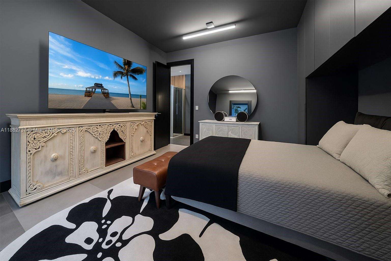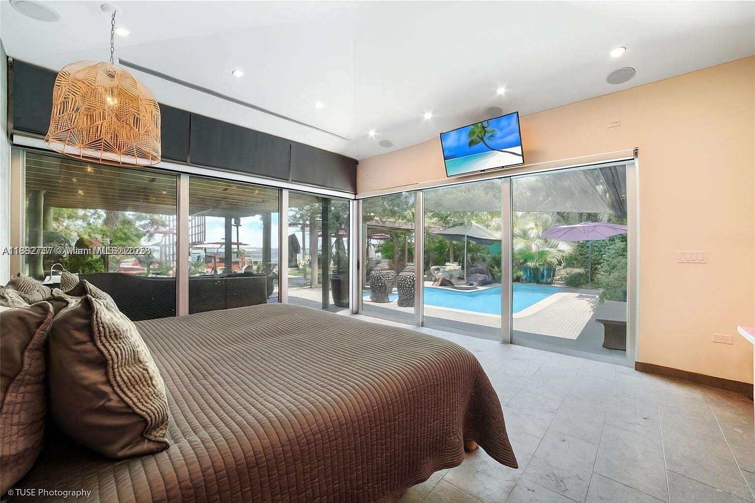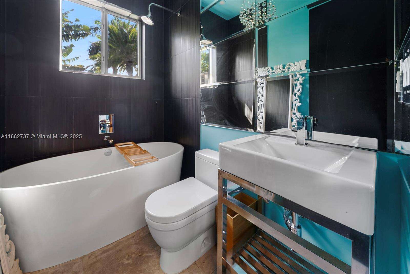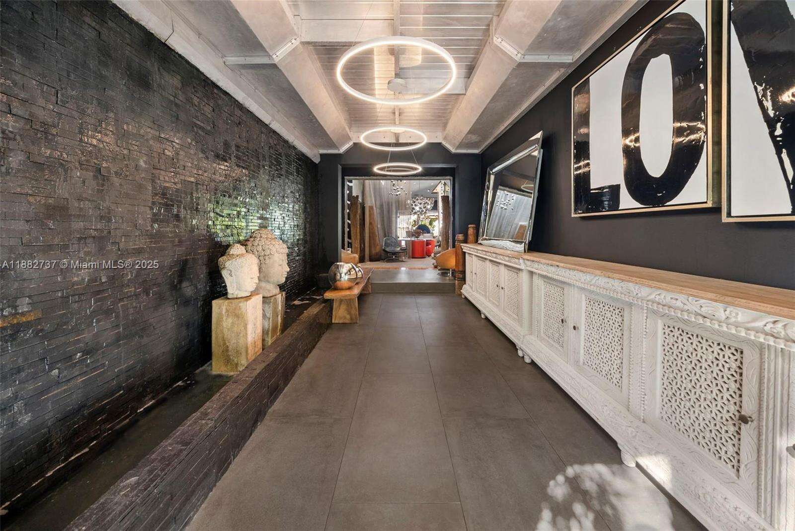One-of-a-kind waterfront masterpiece! This unique home sits on a cul-de-sac on Normandy Shores exclusive gated community, w/ Normandy Shores Golf Club, Tennis, Basketball Courts, and Parks. Nestled on the Island's Terrace, shares w/only 6 residences breathtaking open bay views and sunsets. Built in 2015, this 3,442 SQ FT eccentric home features 4 bed/4 bath, open living and dining, state-of-the-art kitchen, and more. The home's Zen vibe begins as you step through a bamboo garden, 30 ft interior waterfall, and end at the open bay sanctuary. The backyard landscaping, shimmering pool, outdoor kitchen, and terraces make this home magic. Bath in the outdoor tub, watch movies at the two-story Tiki Hut, and enjoy the dock at sunset. Boat and Jet Ski lifts and davit. Plans for a two-car garage.