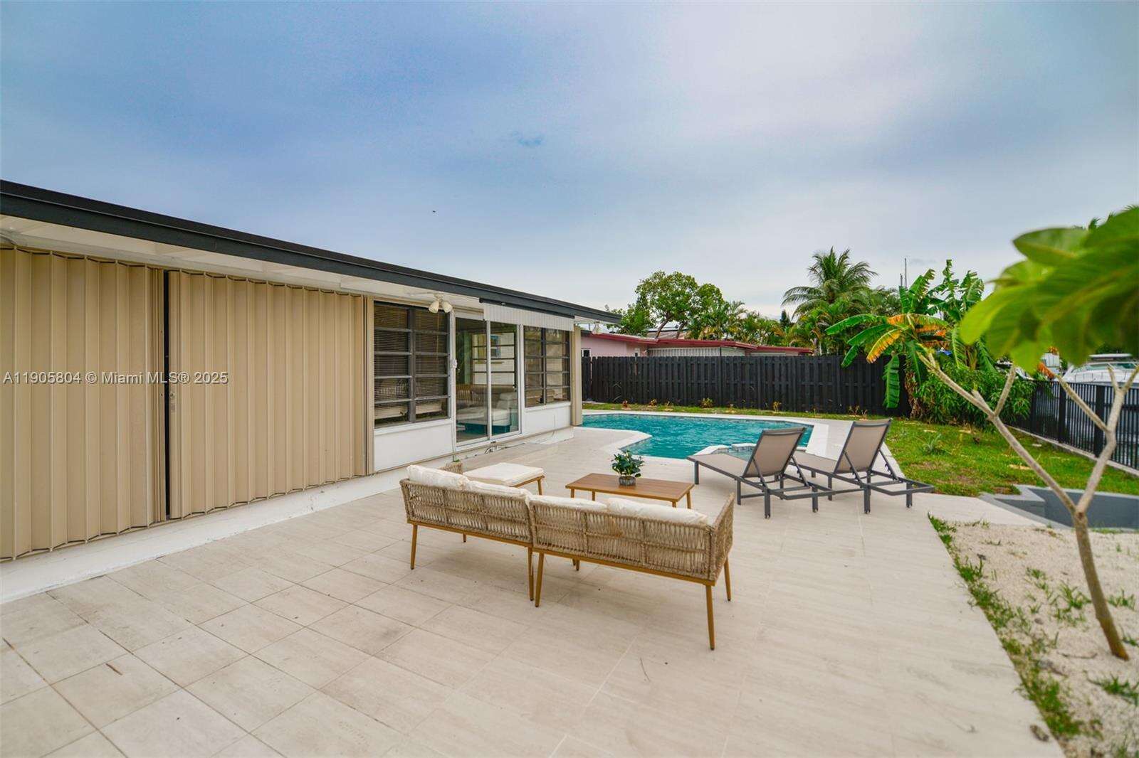 Exceptional waterfront home in the sought-after Lauderdale Isles community! This beautifully maintained single-family residence features a brand-new roof and a fully upgraded private pool, adding peace of mind and value for years to come. Located on a wide canal with 65 ft of waterfront, this property offers direct dock access (no fixed bridges to the Intracoastal) — perfect for boating enthusiasts. The open one-story layout includes bright living areas, ceramic and laminate floors, and a spacious outdoor patio ideal for entertaining. With a large 7,150 sq ft lot, lush landscaping, and proximity to beaches, downtown Fort Lauderdale, and the airport, this home perfectly blends comfort, location, and lifestyle.