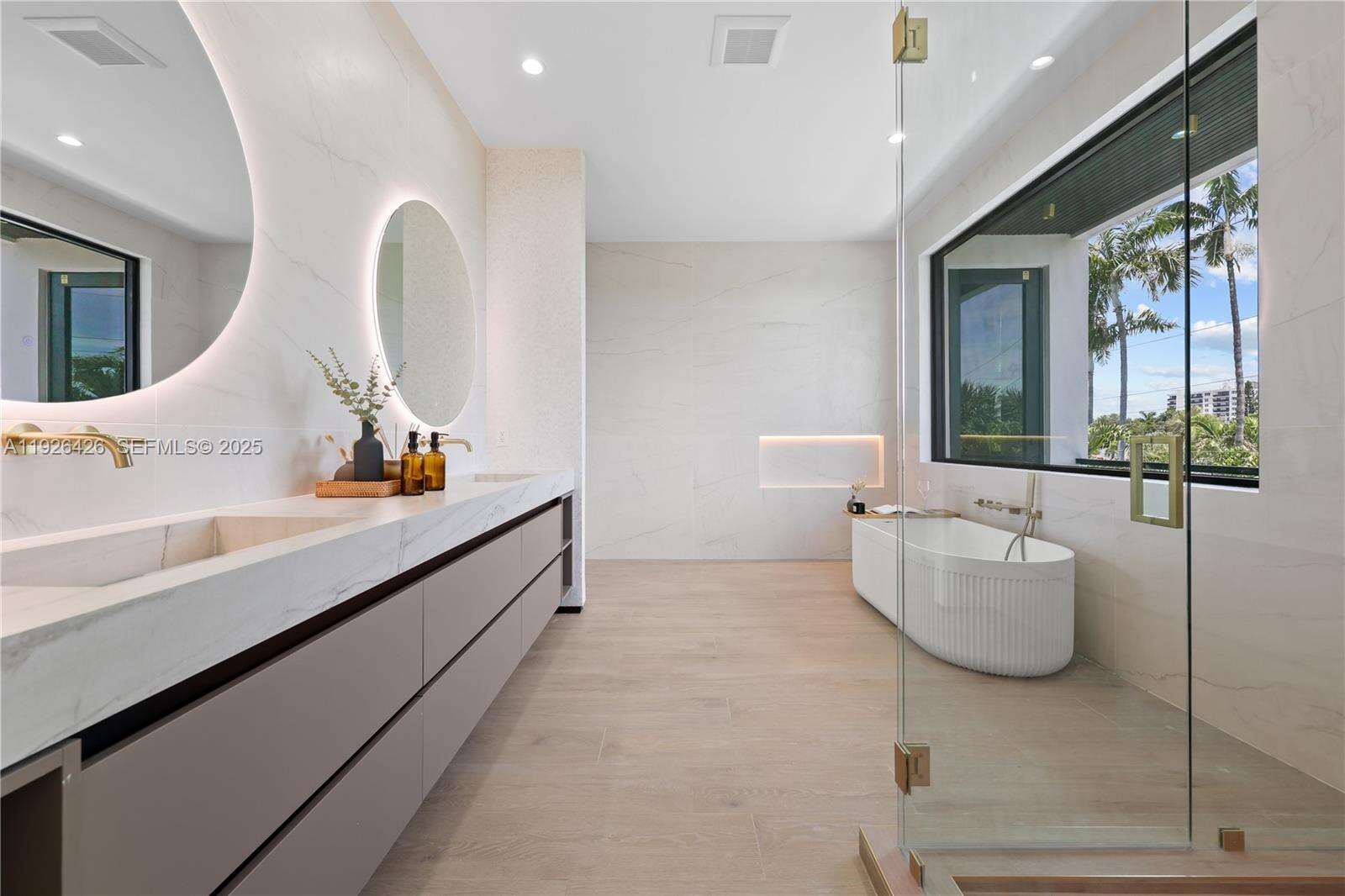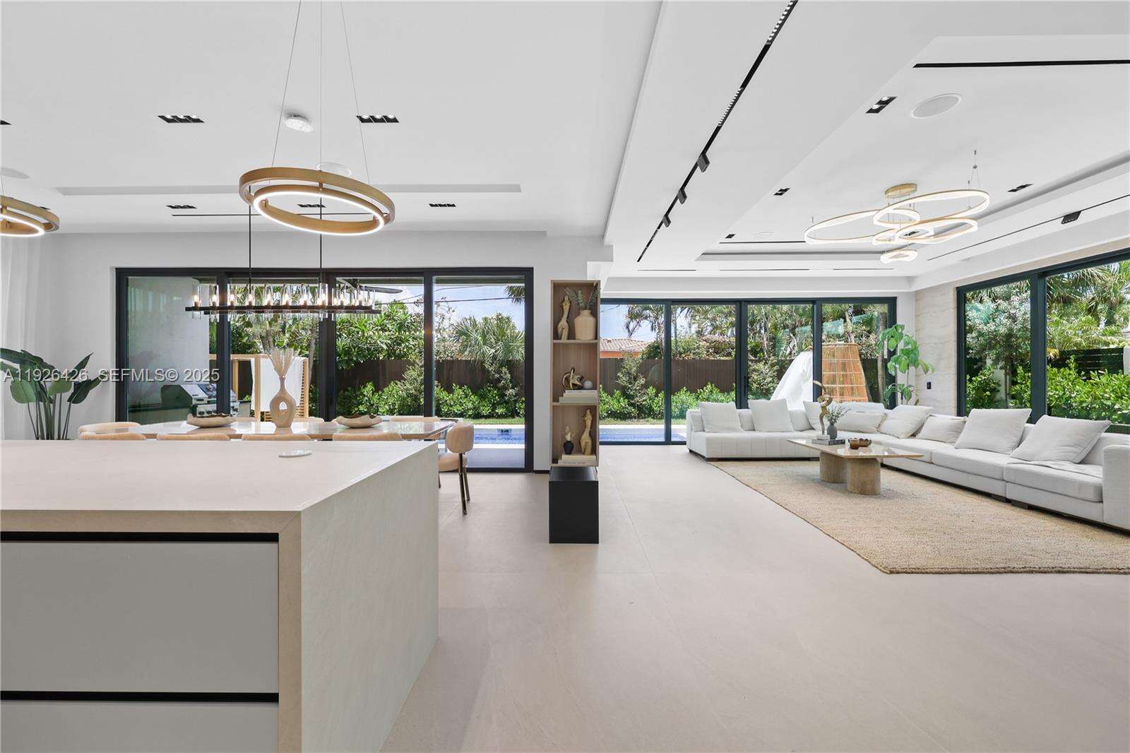 JUST BUILT • FULLY FURNISHED • MINUTES FROM THE BEACH — Welcome to 255 Capri Ave, a show-stopping ultra-modern masterpiece offering 4 bedrooms, 4.5 bathrooms, and approximately 3,741 SF under air (5,125 SF total) of pure architectural impact. Designed to impress from the first step inside, this residence delivers immediate WOW factor with massive 63x63 porcelain tile throughout, seamlessly integrated sinks, and a design aesthetic that is flashy, bold, yet clean and refined. The heart of the home is a dramatic flush designer kitchen—sleek, modern, and built for both everyday luxury and entertaining at scale. A glass-enclosed private office adds a striking architectural element while offering functionality for today’s lifestyle. Step outside to your resort-style pool with expansive lounge and entertaining area, creating the perfect indoor-outdoor flow for South Florida living. Whether hosting guests or enjoying quiet evenings, the outdoor space is designed as a private luxury oasis. Every detail of this home reflects elite craftsmanship, premium materials, and top-tier finishes throughout. Offered fully furnished and completely turn-key, this residence allows the next owner to move in immediately without lifting a finger. This is not a standard new build—this is a statement home designed to impress at every turn. Ultra-modern. Bold. Clean. Resort-level living. A rare opportunity to own a brand-new, designer-level home with pool just minutes from the beach.