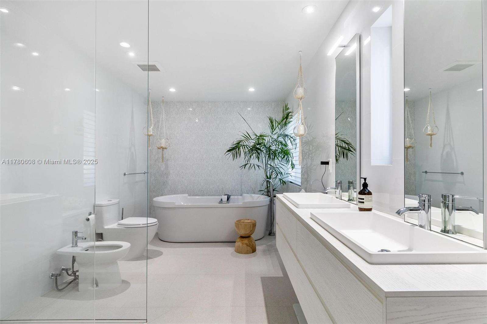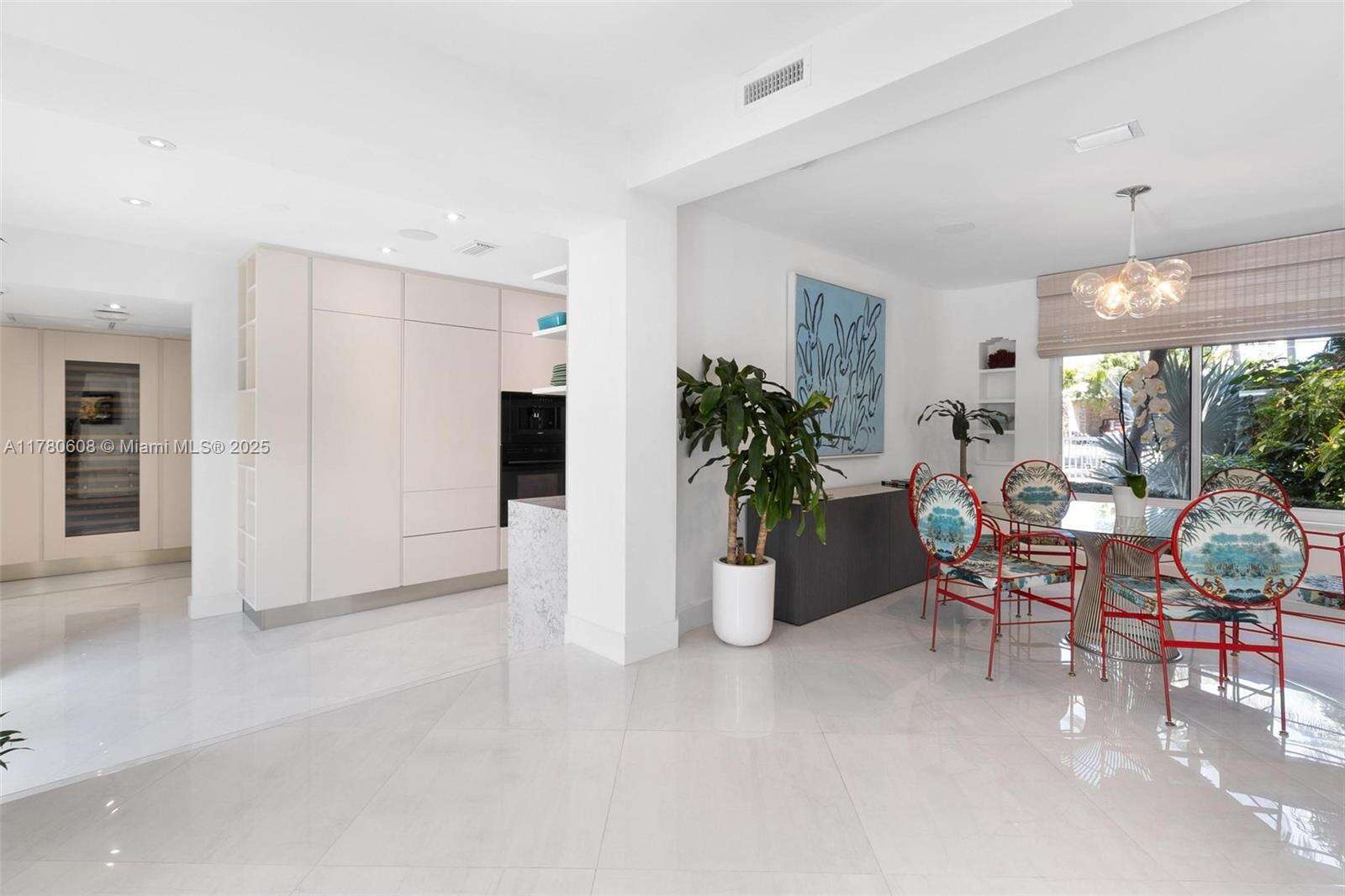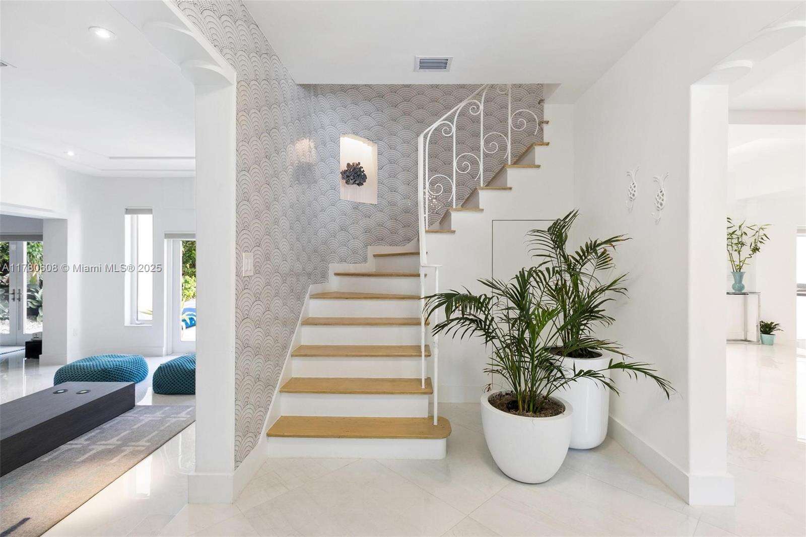 Step into this beautifully remodeled Russell Pancoast art deco gem, located on tranquil Flamingo Drive offered fully furnished & move-in ready. The spacious 4 bd & 4.5 bath home recently updated w/impact glass windows, Control4 system, new baths, HVAC, & modern chef’s kitchen, offers great living space, breakfast room, formal dining, media room & office. The beautiful staircase w/ intricate tile design wall will take you to the Master suite w/ opulent bath, 2 walk-in closets & private terrace to sip your morning coffee. An additional 2nd bed w/ ensuite bath is also located on the second level. The lushly secluded backyard is equipped w/a saltwater pool, summer kitchen, & patios for lounging. Perfectly located near the beach & all that South Beach has to offer. Rare find! Easy to show