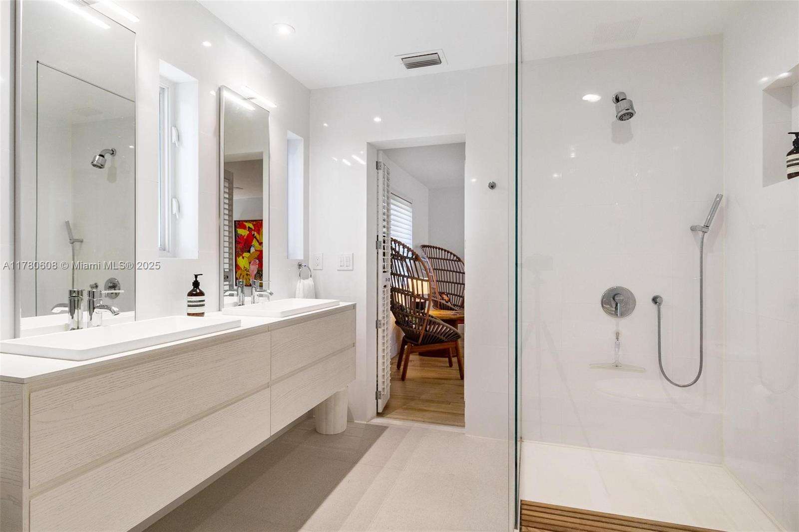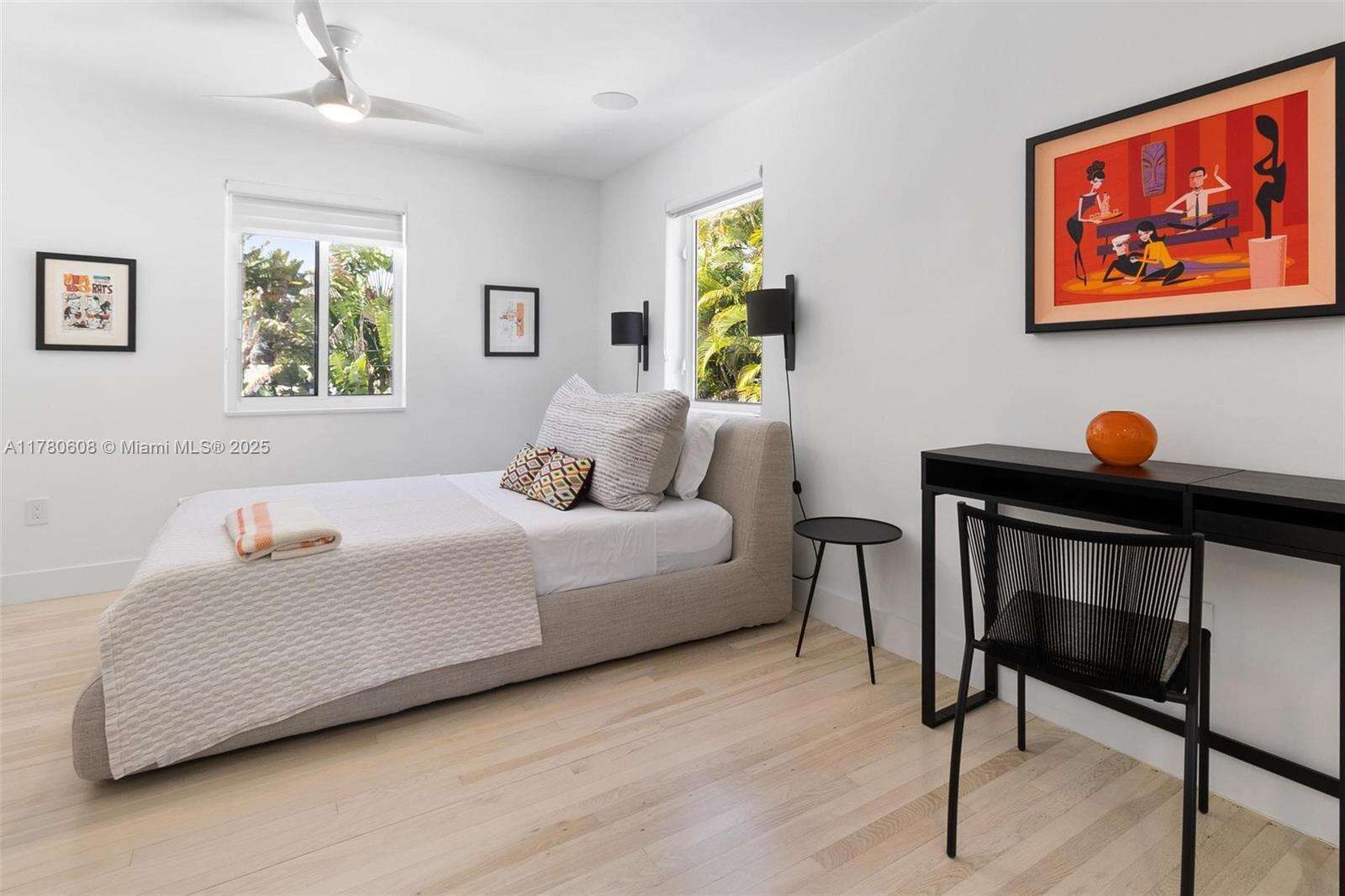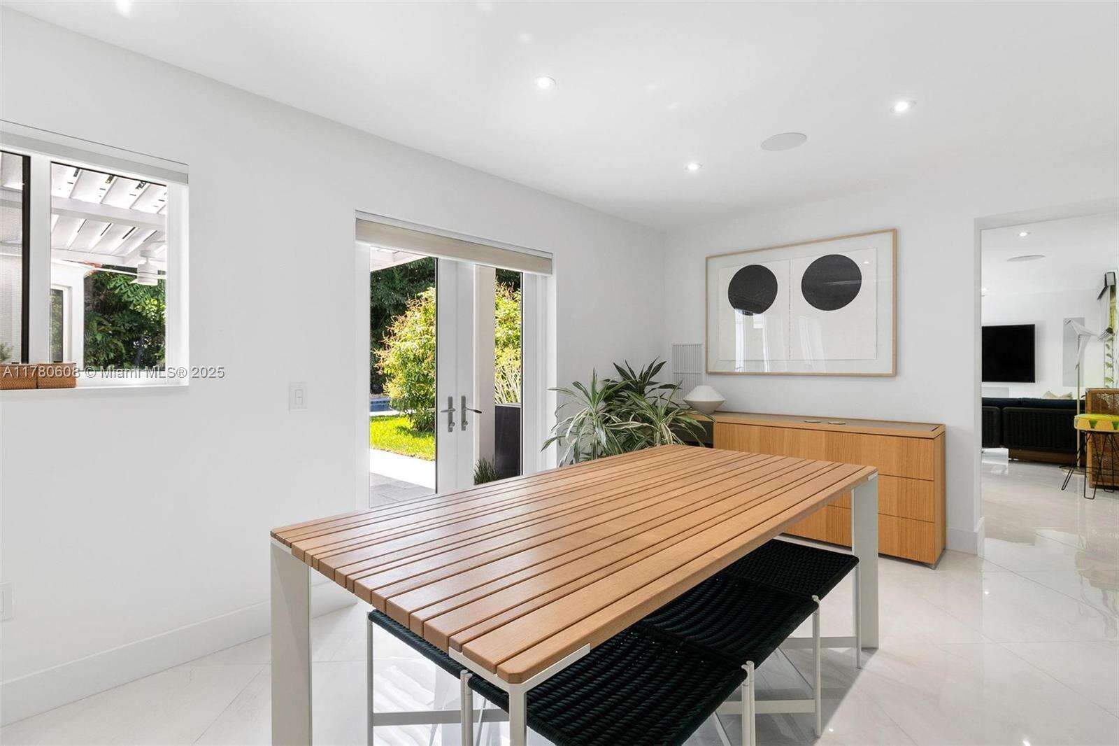 Step into this beautifully remodeled Russell Pancoast art deco gem, located on tranquil Flamingo Drive offered fully furnished & move-in ready. The spacious 4 bd & 4.5 bath home recently updated w/impact glass windows, Control4 system, new baths, HVAC, & modern chef’s kitchen, offers great living space, breakfast room, formal dining, media room & office. The beautiful staircase w/ intricate tile design wall will take you to the Master suite w/ opulent bath, 2 walk-in closets & private terrace to sip your morning coffee. An additional 2nd bed w/ ensuite bath is also located on the second level. The lushly secluded backyard is equipped w/a saltwater pool, summer kitchen, & patios for lounging. Perfectly located near the beach & all that South Beach has to offer. Rare find! Easy to show