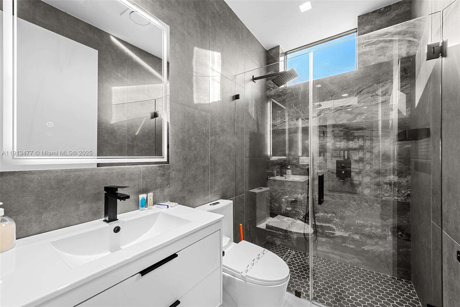 Experience modern luxury in this stunning 5-bed, 5-bath residence offering over 4,000 sq. ft. of elegant living space, perfectly situated between Aventura and North Miami. Ideal for families, and highly attractive for short-term rentals offering strong income potential. The home features open-concept interiors with spacious indoor and outdoor living areas, a contemporary chef’s kitchen with premium appliances, and high-end finishes throughout. The beautifully landscaped backyard showcases a private heated pool surrounded by lush greenery. Located within walking distance to multiple synagogues, and just minutes from the new Brightline Aventura Station and Greynolds Park. Additional highlights include a large carport accommodating multiple vehicles and an electric vehicle charging station
