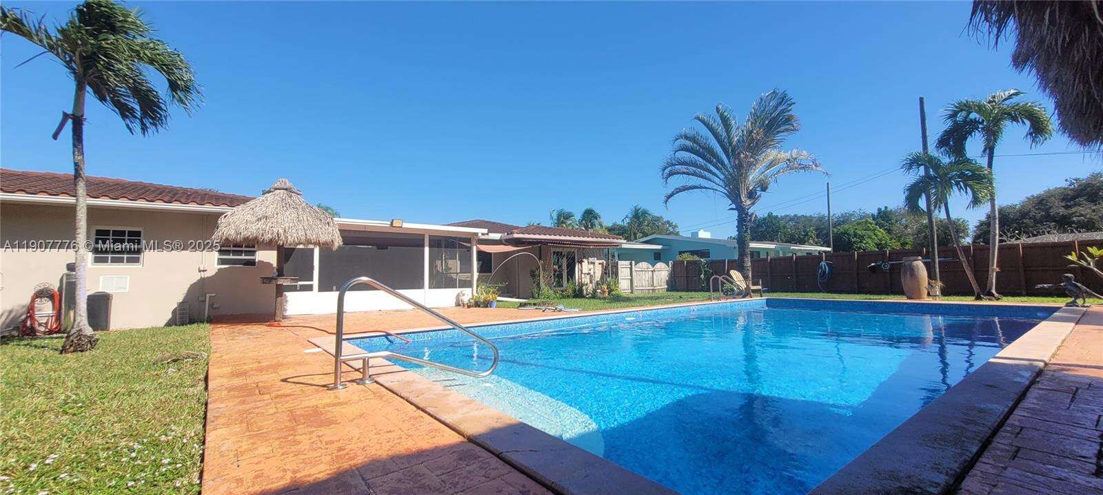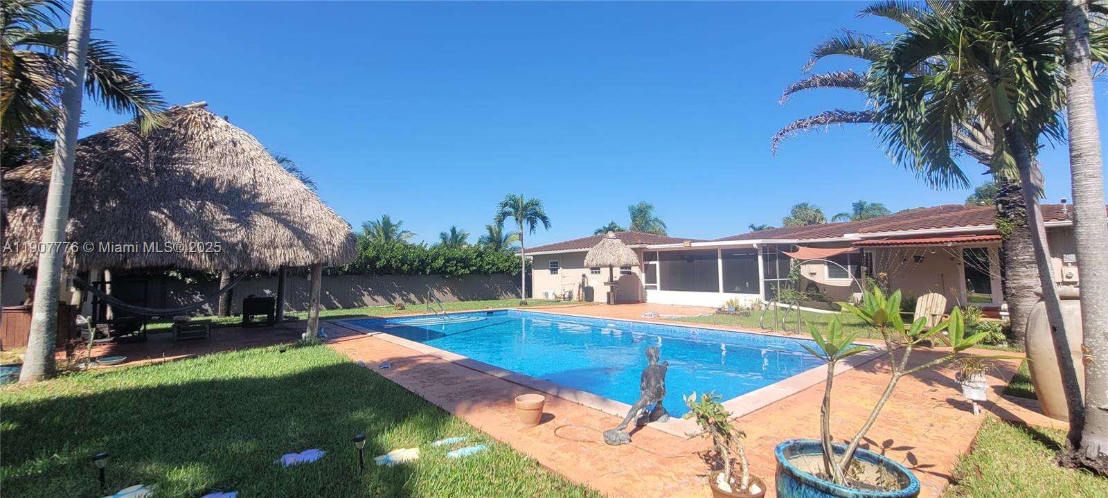 Welcome to your Spanish Villa centrally located near Downtown Hollywood in Hollywood Little Ranches. This beautifully remodeled modern home has a bevy of key features with great attention to detail including incredible flooring with porcelain tiles in the living areas, exquisite Bamboo room flooring in the rooms, stunning panoramic impact windows, built in Sonos premium sound system throughtout and a Aquakleen water system. You'll love the smart design of the custom kitchen with top shelf smart stainless steel appliances, wine cooler, and specially fabricated custom cabinetry. Enjoy your resort style backyard with a 20,000 sf lot that includes a Hawaiian style Tiki, a tropical lanai with a lap size saltwater pool, entertaining ready screened patio and a huge storage room for even more storage. In addition to the 2466 sf of interior space which encompasses 4 bedrooms & 3.5 baths, the garage has been partially converted into an additional room with it's own bathroom and entrance. The gorgeous terracotta circular driveway makes for an impressive entrance and it has a carport for additional vehicles as well. The new AC, water heater and roof will give you years of peace of mind. This is where you want to be with only a few minutes to Hollywood Beach and Hollywood's arts/entertainment district is just steps away.