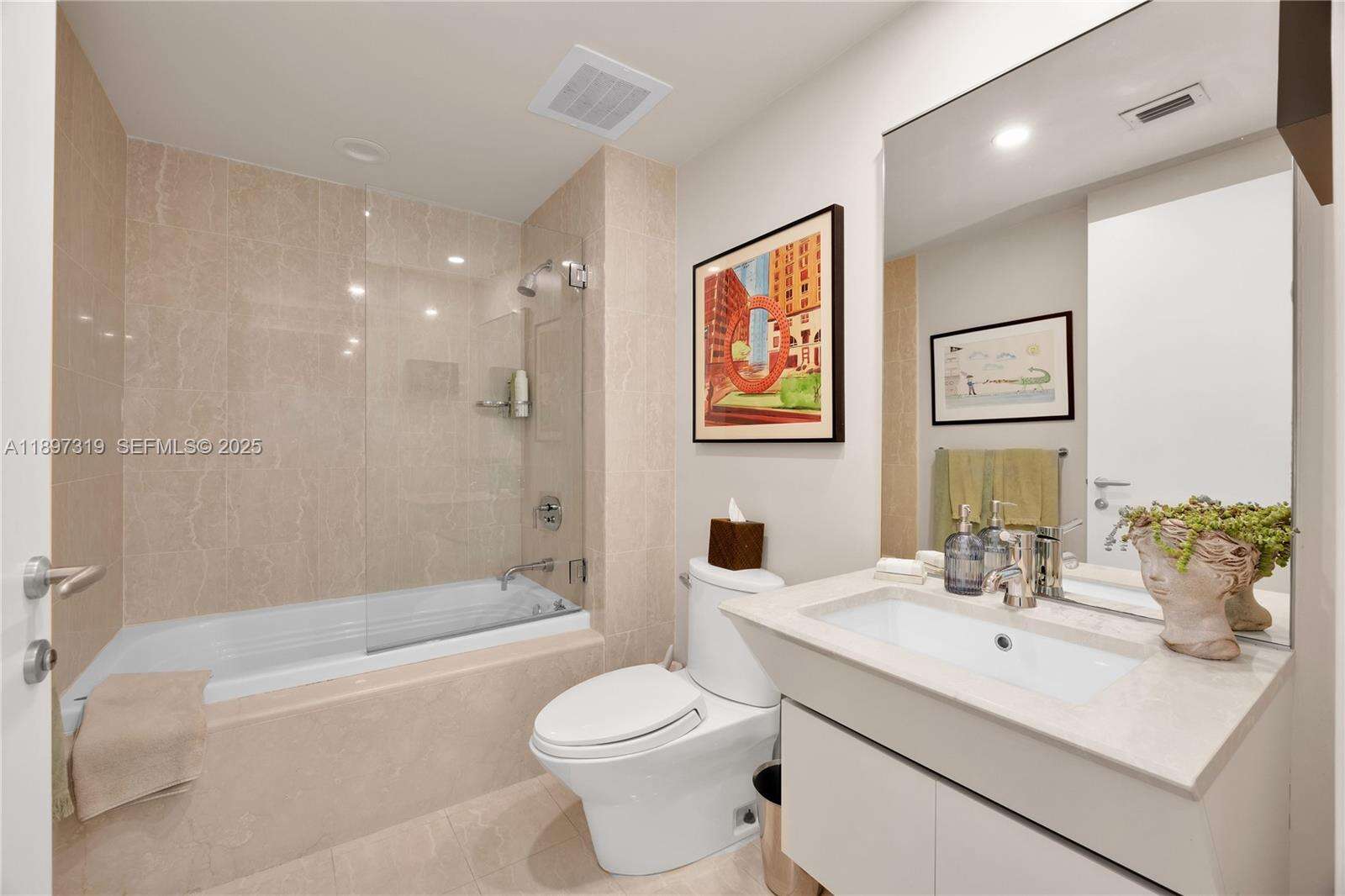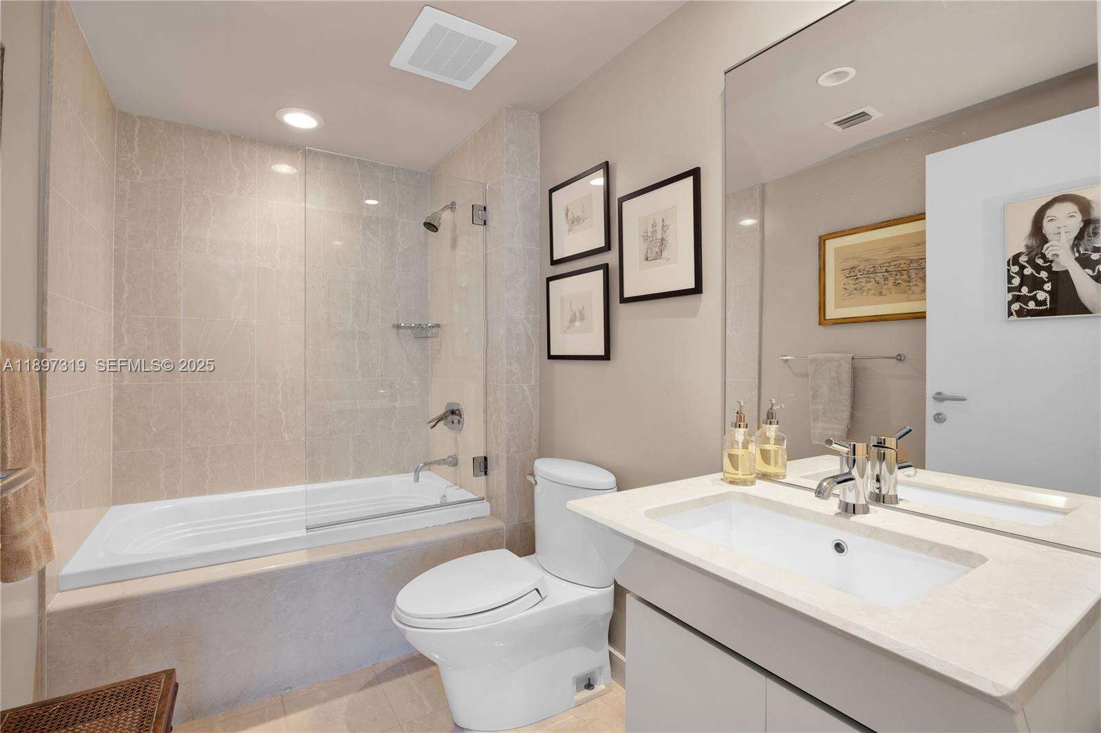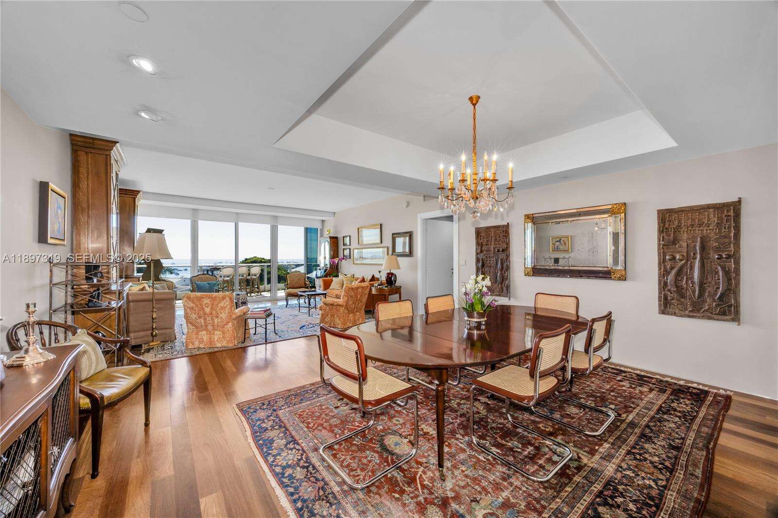 Elegant 9th-floor residence at the exclusive Grovenor House in Coconut Grove with 2,640 SF of luxurious living. With 3 ensuite bedrooms and 1 half bath, this flow-through unit features walnut wood floors, floor-to-ceiling impact doors, and private terraces with panoramic bayfront and city views. The home’s open floor plan seamlessly connects the formal living and dining areas with the family room, anchored by a stunning Snaidero kitchen outfitted with sleek cabinetry, Italian granite countertops, and Miele and SubZero appliances. Accessible by private elevator, the home offers an expansive primary suite with dual walk-in closets. Amenities include 24-hour concierge, valet, pool, gym, spa, playroom, playground, tennis/basketball courts & library. Includes in-unit laundry & 2 parking spaces.
