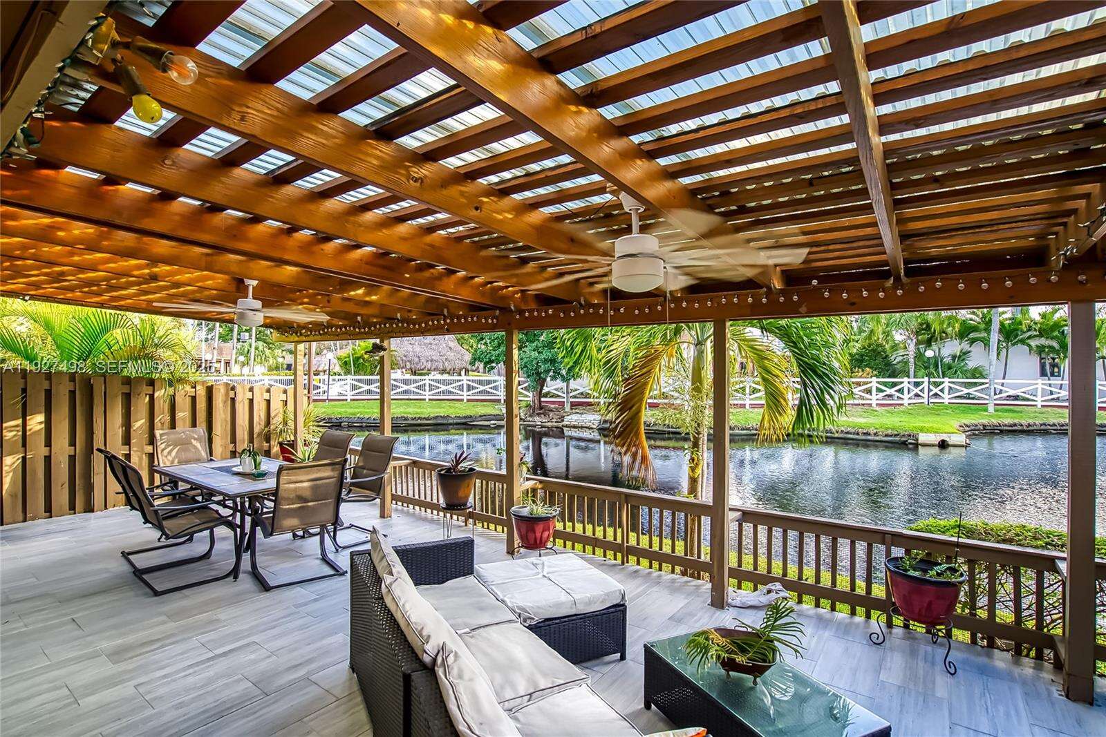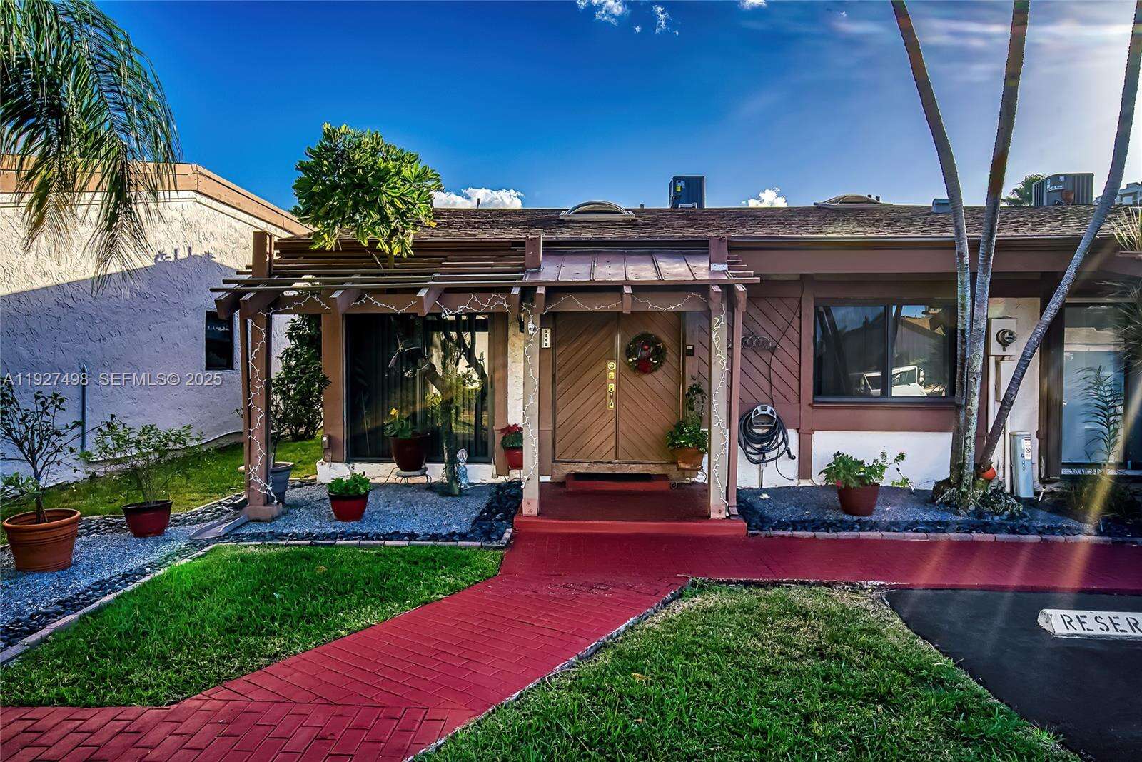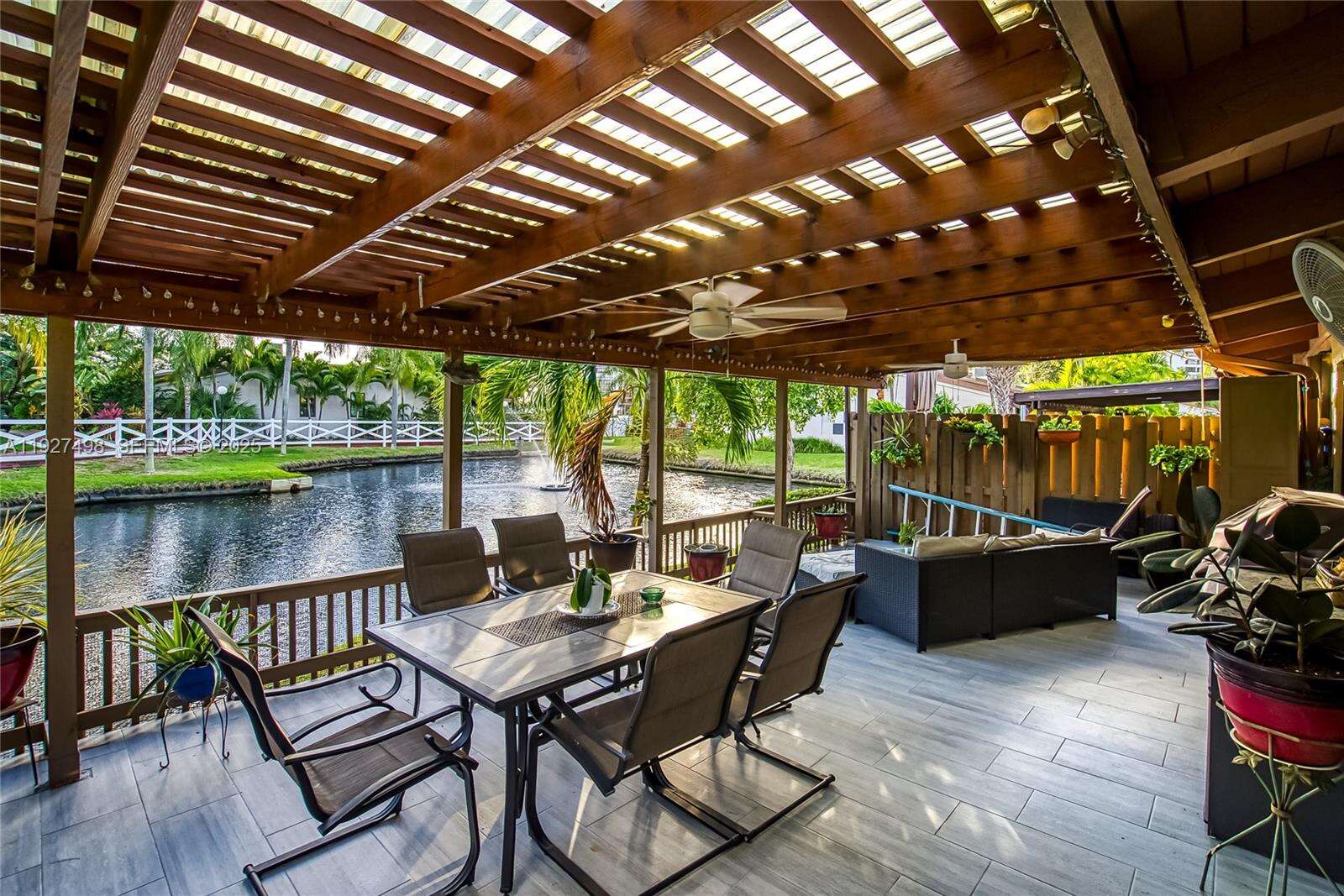 Absolutely gorgeous 1 story townhouse on the water! Waterfront villa in Harbourwood Villas, Three Islands. Spacious and well-maintained 2 bedrooms /2 bathrooms with 1,680 SF of living area on a 2,125 SF lot. Family room may be converted to a potential third bedroom. Stunning Water view from the patio! tranquil pond views and partial marina views from this desirable corner Townhouse! Features include a remodeled kitchen with window, stainless steel appliances, new A/C, high vaulted wood-beam ceilings, impact windows and doors, tile flooring throughout, new water heater, 4 skylights, and 2 walk-in closets. Large paved and covered rear patio ideal for entertaining, plus a welcoming front porch. Two assigned parking spaces directly in front of the unit. Community amenities include pool, tennis courts, racquetball, sauna, and walking paths. Excellent location within walking distance to shops, restaurants, and the beach. Minutes to Gulfstream Park and close to two international airports.