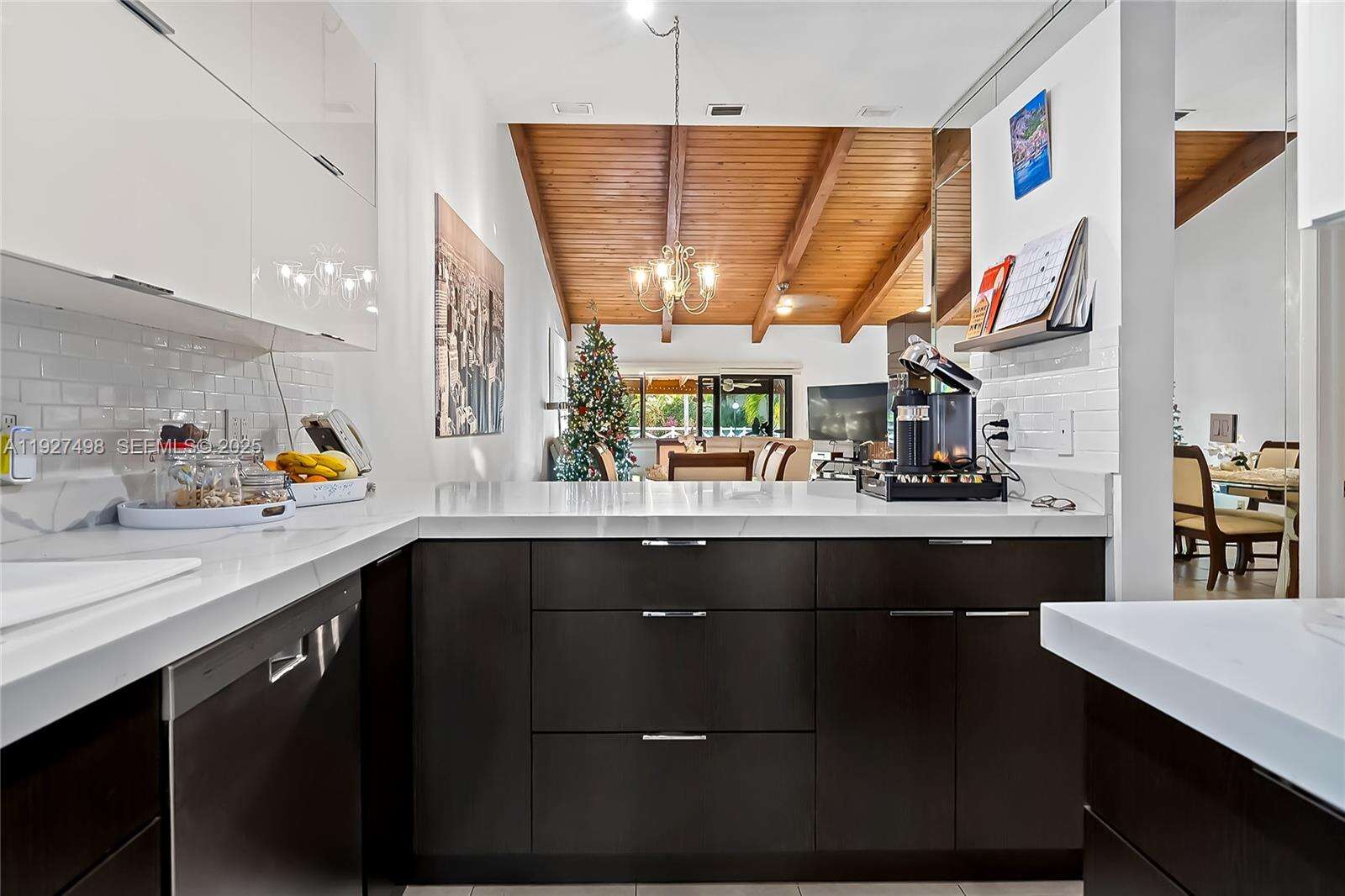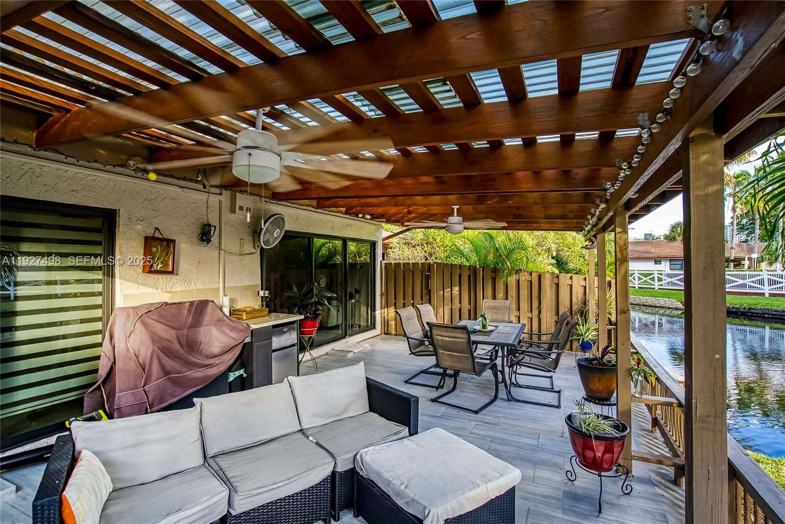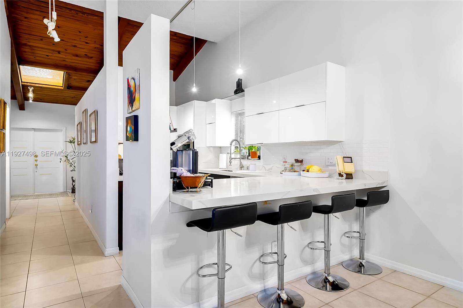 Absolutely gorgeous 1 story townhouse on the water! Waterfront villa in Harbourwood Villas, Three Islands. Spacious and well-maintained 2 bedrooms /2 bathrooms with 1,680 SF of living area on a 2,125 SF lot. Family room may be converted to a potential third bedroom. Stunning Water view from the patio! tranquil pond views and partial marina views from this desirable corner Townhouse! Features include a remodeled kitchen with window, stainless steel appliances, new A/C, high vaulted wood-beam ceilings, impact windows and doors, tile flooring throughout, new water heater, 4 skylights, and 2 walk-in closets. Large paved and covered rear patio ideal for entertaining, plus a welcoming front porch. Two assigned parking spaces directly in front of the unit. Community amenities include pool, tennis courts, racquetball, sauna, and walking paths. Excellent location within walking distance to shops, restaurants, and the beach. Minutes to Gulfstream Park and close to two international airports.