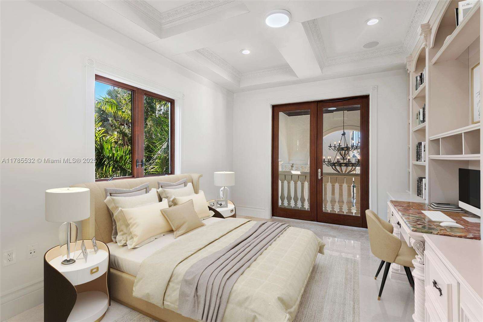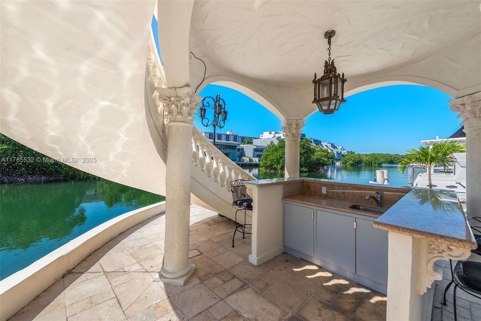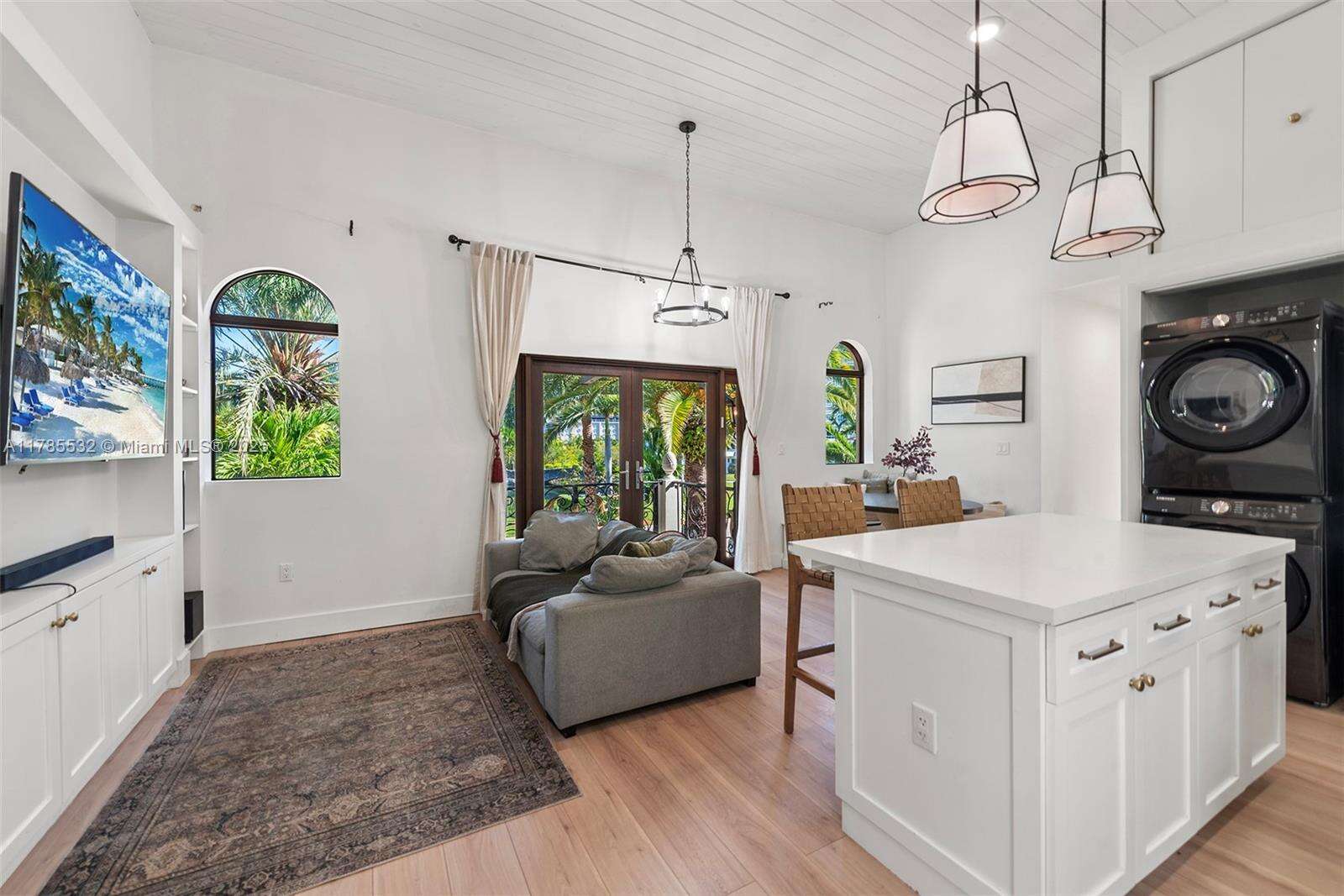 Built in 2009 with only the original 1946 garage walls preserved, this exceptional waterfront residence combines timeless elegance with modern enhancements. Two thoughtfully designed additions elevate the estate: a spacious 2-bedroom plus den, 2-bath in-law quarters completed in 2024, and a serene poolside guest house added in 2018. The entire structure is anchored by over 150 auger cast piles. Situated on 80 feet of prime water frontage, the property offers docking for two vessels—accommodating a boat up to 55 feet and a lift for one up to 26 feet. Gas-equipped gourmet kitchen and a private 1,000 sq ft island. Located on an ultra-private island of just 69 homes, this rare gem is within walking distance to the beach. Residents enjoy access to a gated, owner-exclusive beachfront parcel.
