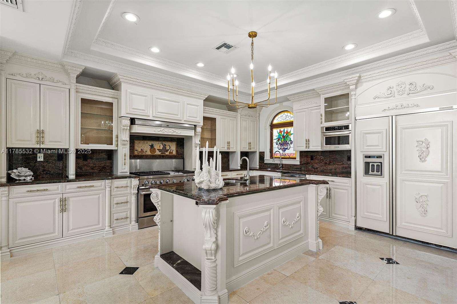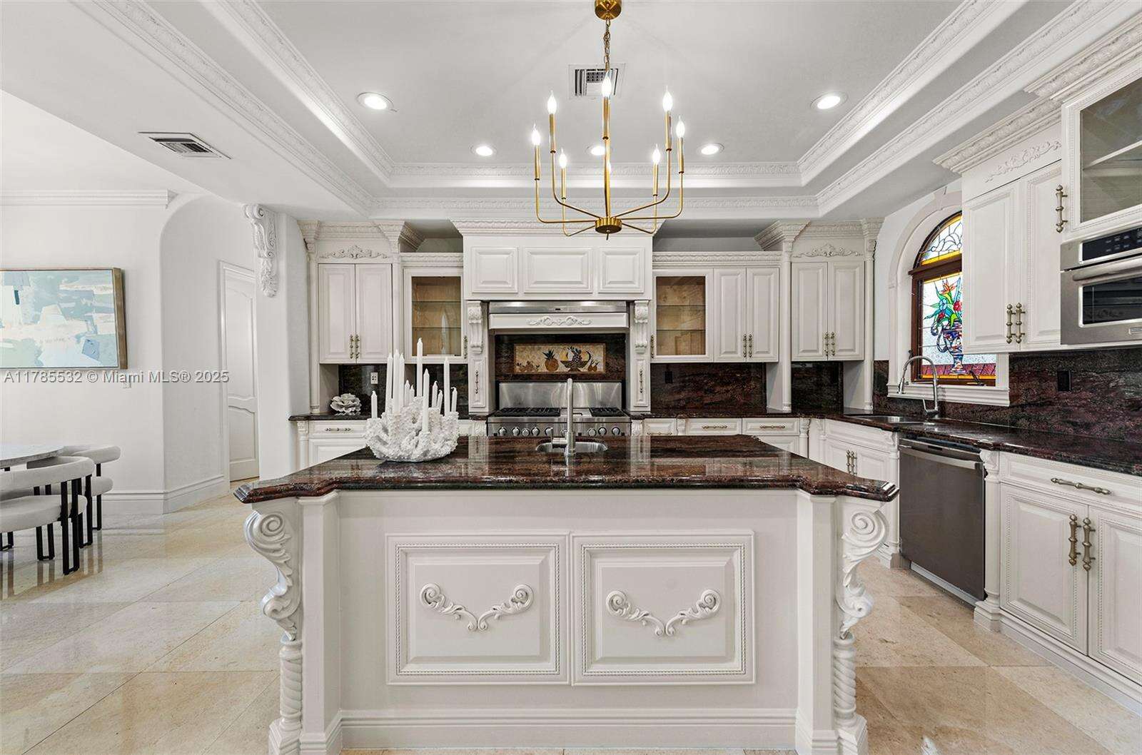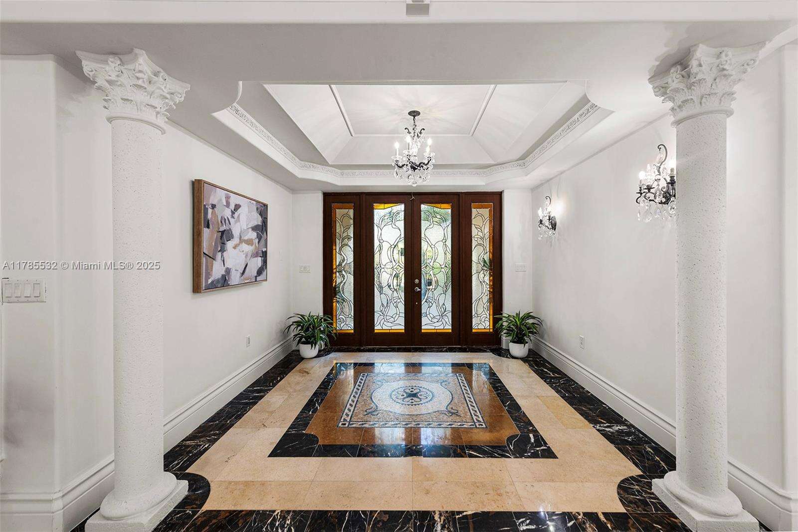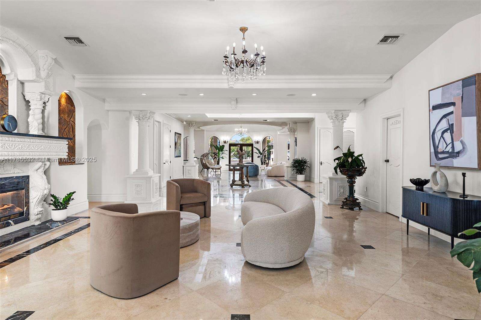 Built in 2009 with only the original 1946 garage walls preserved, this exceptional waterfront residence combines timeless elegance with modern enhancements. Two thoughtfully designed additions elevate the estate: a spacious 2-bedroom plus den, 2-bath in-law quarters completed in 2024, and a serene poolside guest house added in 2018. The entire structure is anchored by over 150 auger cast piles. Situated on 80 feet of prime water frontage, the property offers docking for two vessels—accommodating a boat up to 55 feet and a lift for one up to 26 feet. Gas-equipped gourmet kitchen and a private 1,000 sq ft island. Located on an ultra-private island of just 69 homes, this rare gem is within walking distance to the beach. Residents enjoy access to a gated, owner-exclusive beachfront parcel.