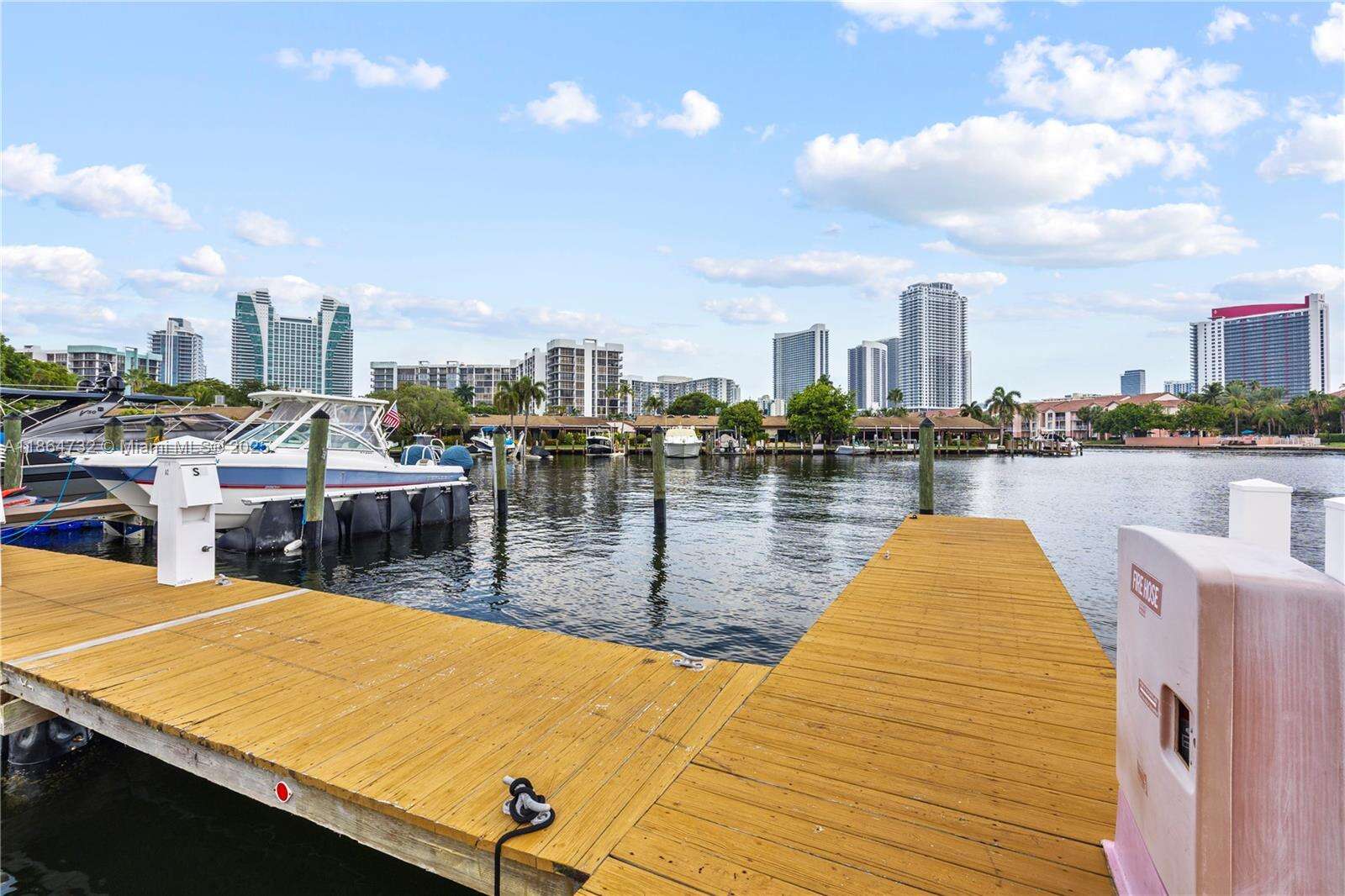 LOCATION! LOCATION! Harbourwood corner Villa, 42 ft assigned boat dock included, Ocean access, no fixed bridges. Open and Spacious 3 Bedroom, 2 Bath, split floor plan, 1626 sq. ft. Vaulted ceilings with exposed wood beams, skylight & ceramic tile plank flooring. Master bath has a separate jacuzzi tub and shower. Lots of storage space. Kitchen features granite countertops & bar seating area. SS appliances, new refrigerator Fenced in private patio to enjoy outside dining. New Hurricane impact windows and doors, a newer a/c (2024), new electrical fuse box (2021), new washer & dryer. Minutes to the Beach, Aventura Mall, Gulfstream Village and Ft. Lauderdale Airport.