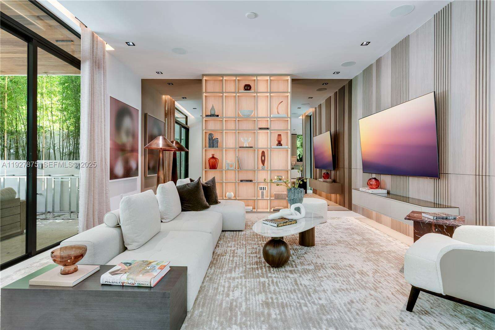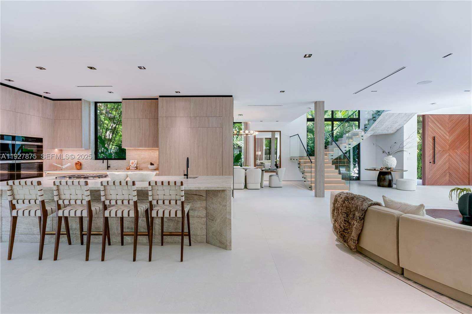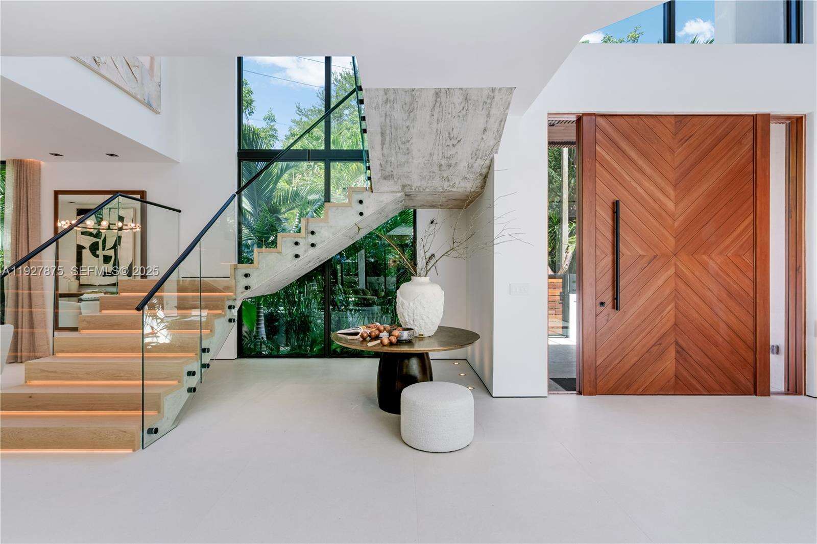 Welcome to CASA GRANDE, a dramatic 7BD/7BA modern residence positioned on a premium corner lot in the heart of Coconut Grove. Designed by Bernardo Paredes and developed by the Modd Group, this architectural showpiece blends bold contemporary design with exceptional comfort and functionality. A grand double-height foyer with a striking sculptural floating staircase sets the tone for the sophisticated interiors. The main level features an expansive living room, formal dining area, and a state-of-the-art chef’s kitchen with premium appliances and a spacious walk-in pantry. A warm, inviting family room with custom millwork anchors the living spaces, complemented by a dedicated home office, full-size laundry room, 2-car garage, and a serene yoga suite/cabana with its own full bath—ideal for wellness, guests, or flexible use. Upstairs, the home offers five generous ensuite bedrooms, including a luxurious primary suite, along with a versatile second-floor family lounge perfect for movie nights or relaxing retreats. Designed for seamless indoor–outdoor living, CASA GRANDE opens to a covered terrace with a full summer kitchen, resort-style pool, spa, and lush tropical landscaping that creates a private, tranquil oasis. This residence embodies Coconut Grove luxury at its finest—architectural elegance, thoughtful design, and resort-inspired living all in one extraordinary home. Home is also available turn key furnished, move in ready.