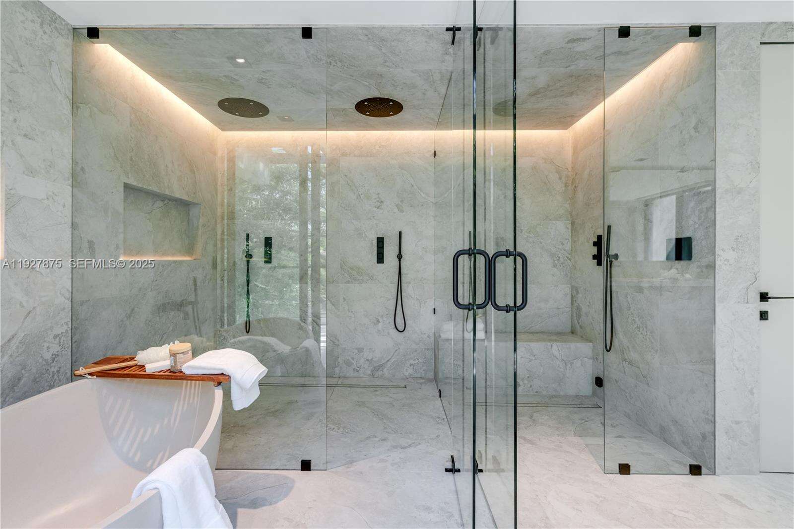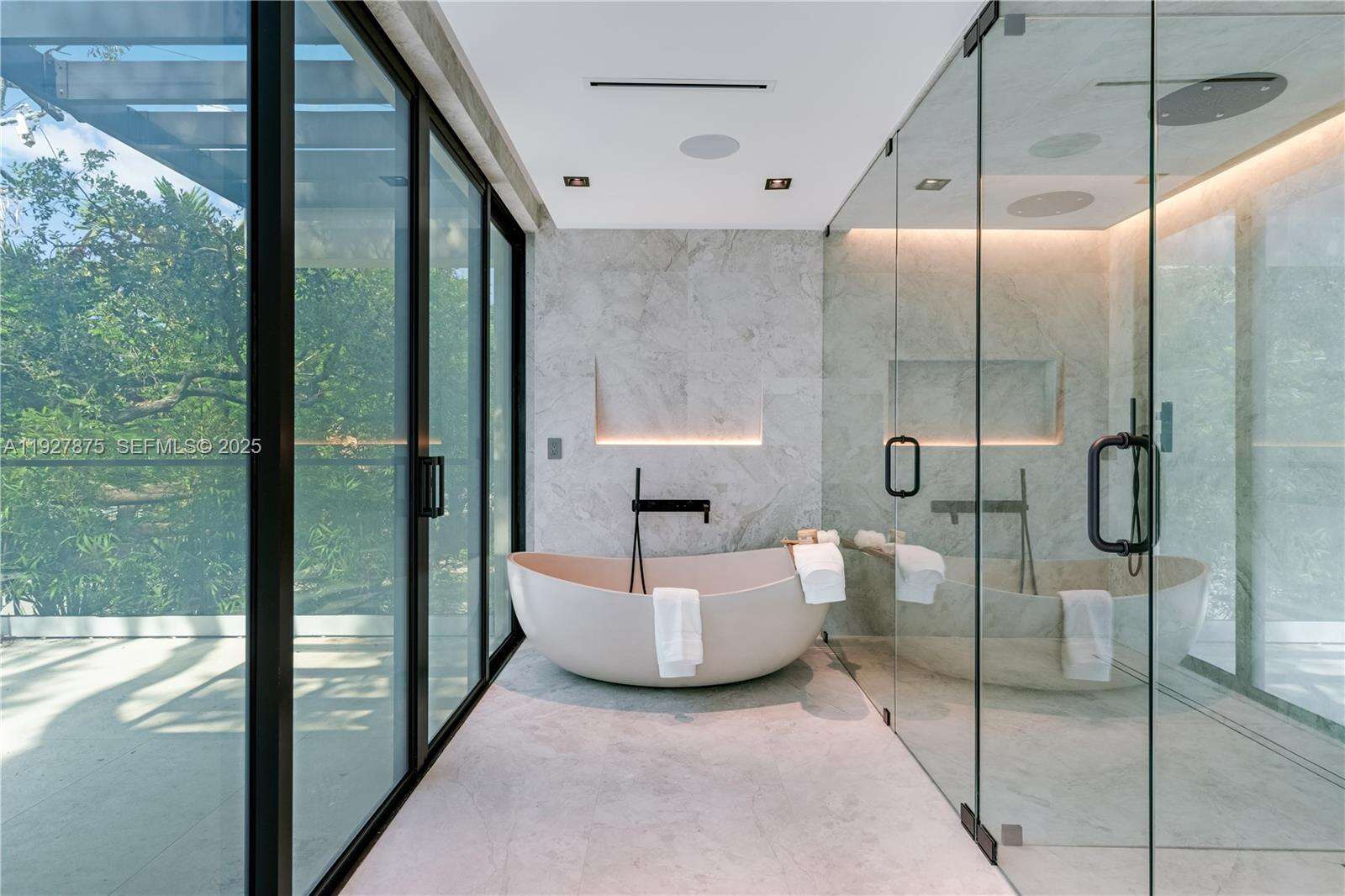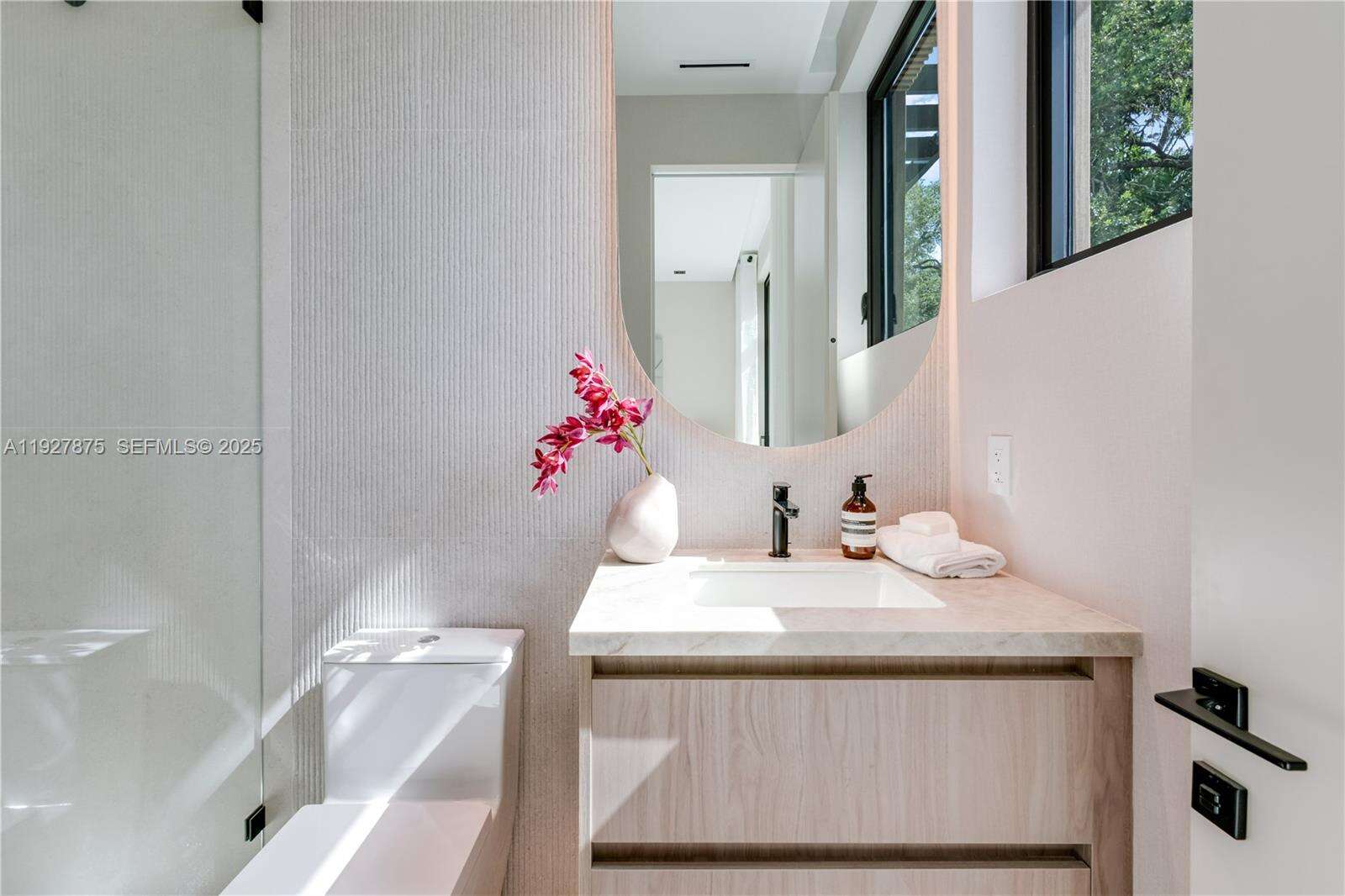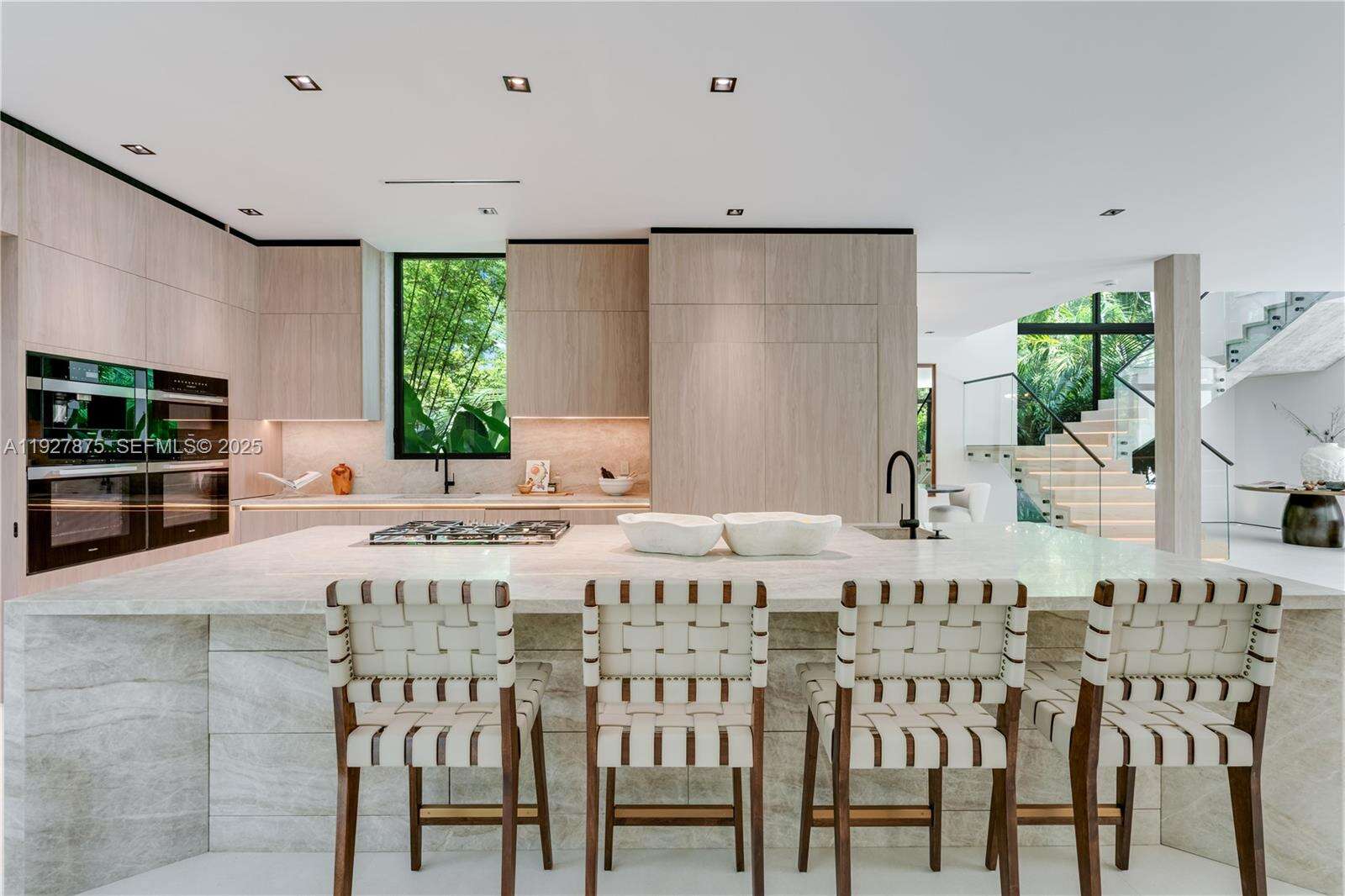 Welcome to CASA GRANDE, a dramatic 7BD/7BA modern residence positioned on a premium corner lot in the heart of Coconut Grove. Designed by Bernardo Paredes and developed by the Modd Group, this architectural showpiece blends bold contemporary design with exceptional comfort and functionality. A grand double-height foyer with a striking sculptural floating staircase sets the tone for the sophisticated interiors. The main level features an expansive living room, formal dining area, and a state-of-the-art chef’s kitchen with premium appliances and a spacious walk-in pantry. A warm, inviting family room with custom millwork anchors the living spaces, complemented by a dedicated home office, full-size laundry room, 2-car garage, and a serene yoga suite/cabana with its own full bath—ideal for wellness, guests, or flexible use. Upstairs, the home offers five generous ensuite bedrooms, including a luxurious primary suite, along with a versatile second-floor family lounge perfect for movie nights or relaxing retreats. Designed for seamless indoor–outdoor living, CASA GRANDE opens to a covered terrace with a full summer kitchen, resort-style pool, spa, and lush tropical landscaping that creates a private, tranquil oasis. This residence embodies Coconut Grove luxury at its finest—architectural elegance, thoughtful design, and resort-inspired living all in one extraordinary home. Home is also available turn key furnished, move in ready.