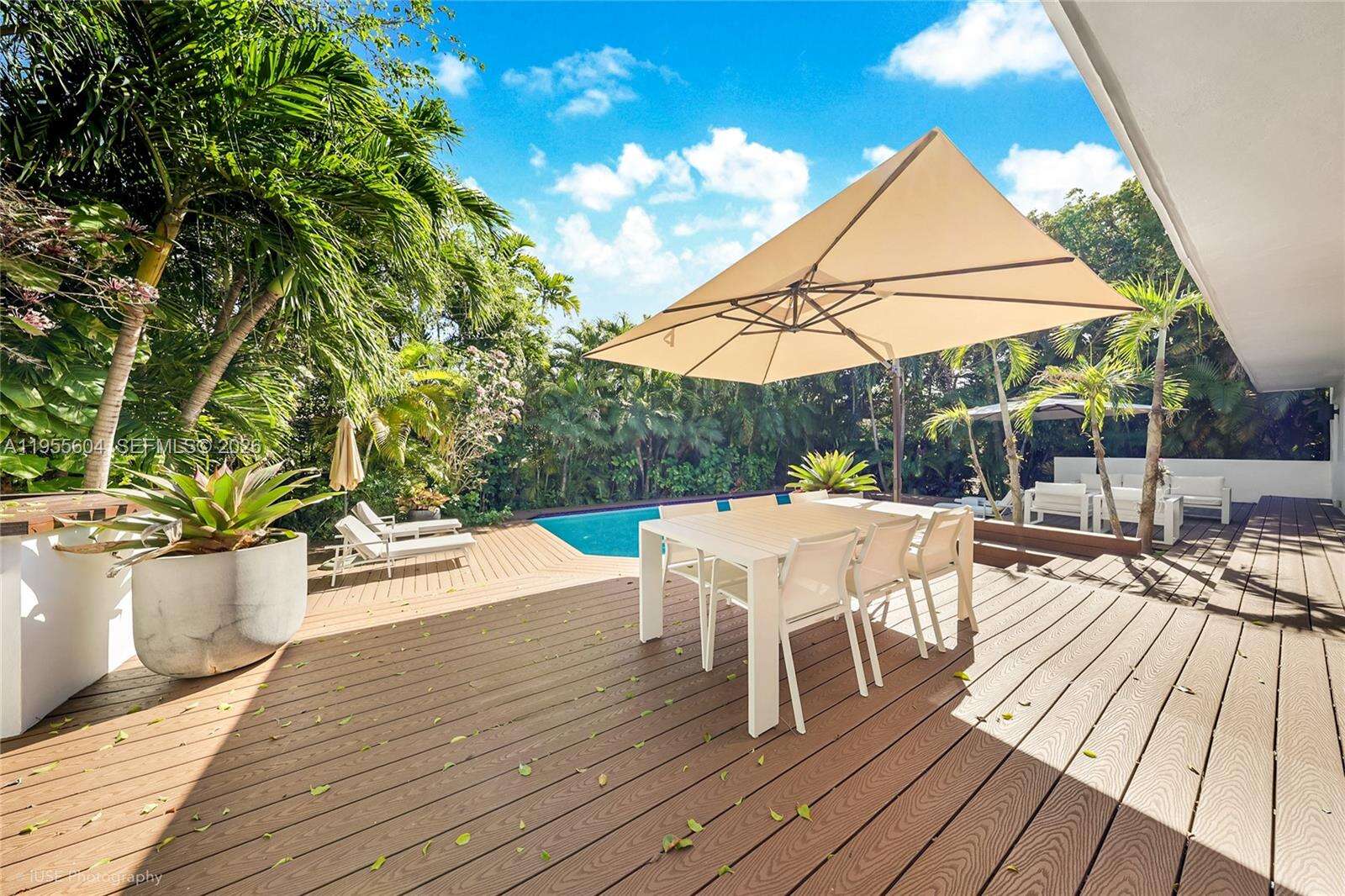 Renovated Miami Beach Guard Gated Sunset Island 1 Mid-Century beautiful home, Large Pool and spacious back patio. One Story 3 BD / 4 Bath home. Tiled floors and updated kitchen and bathrooms. Flowing natural light and high ceilings throughout. Private Backyard and Lush Landscaping.