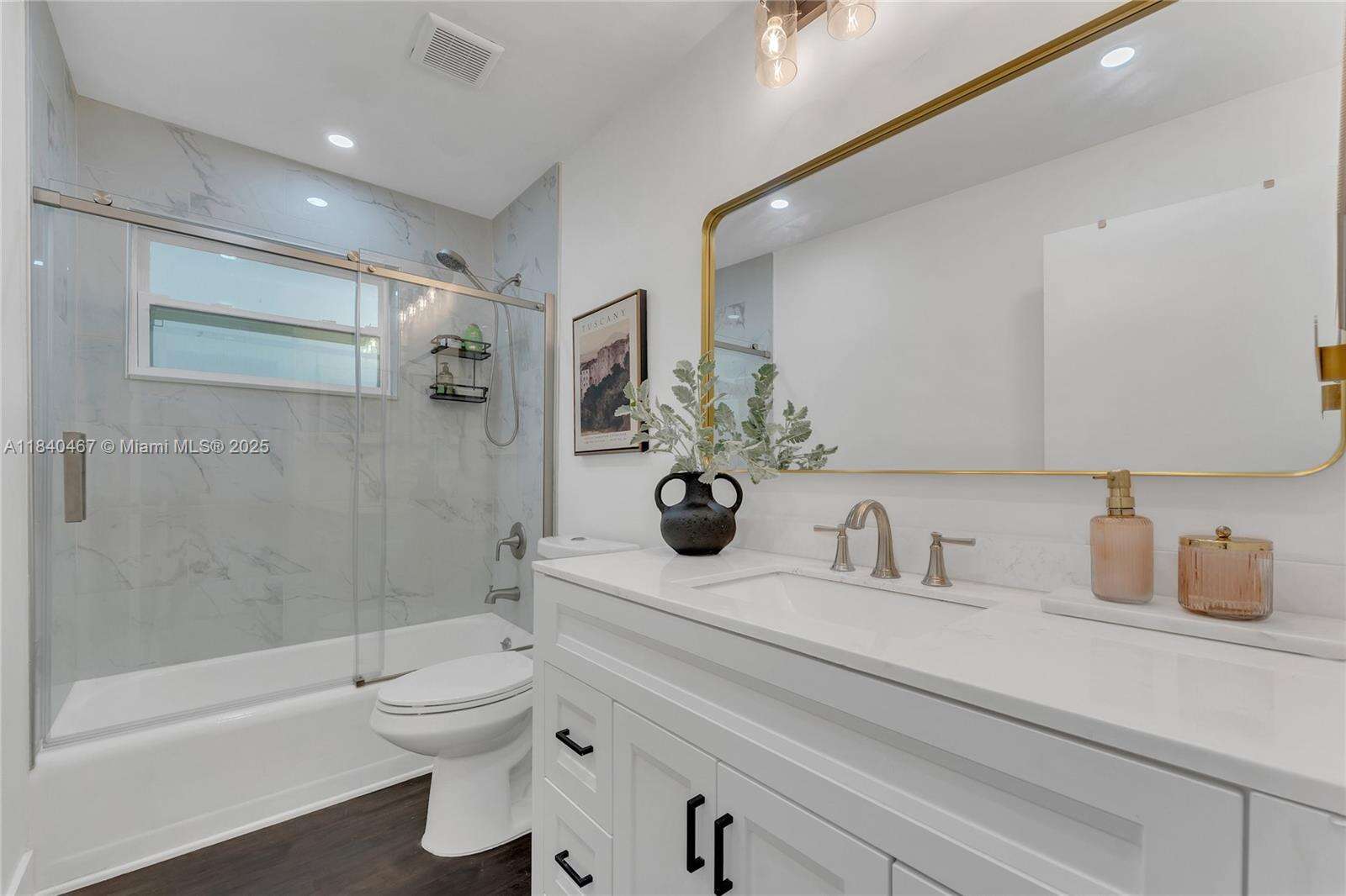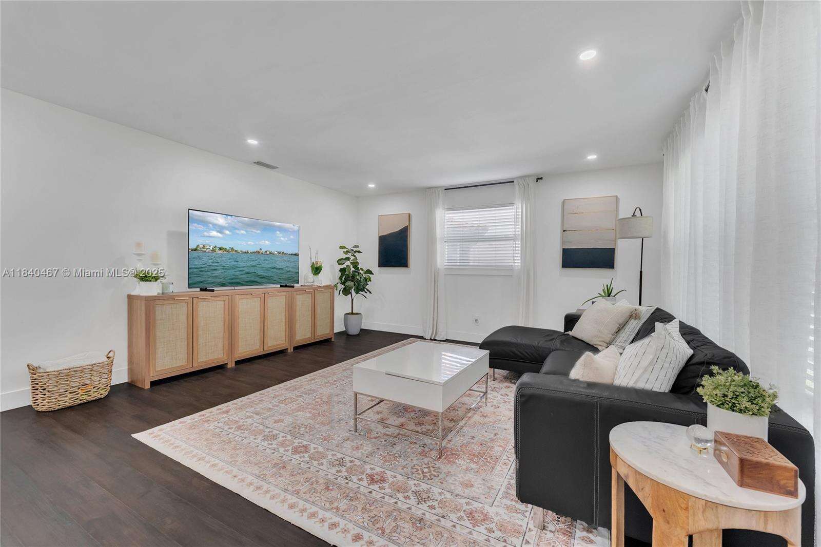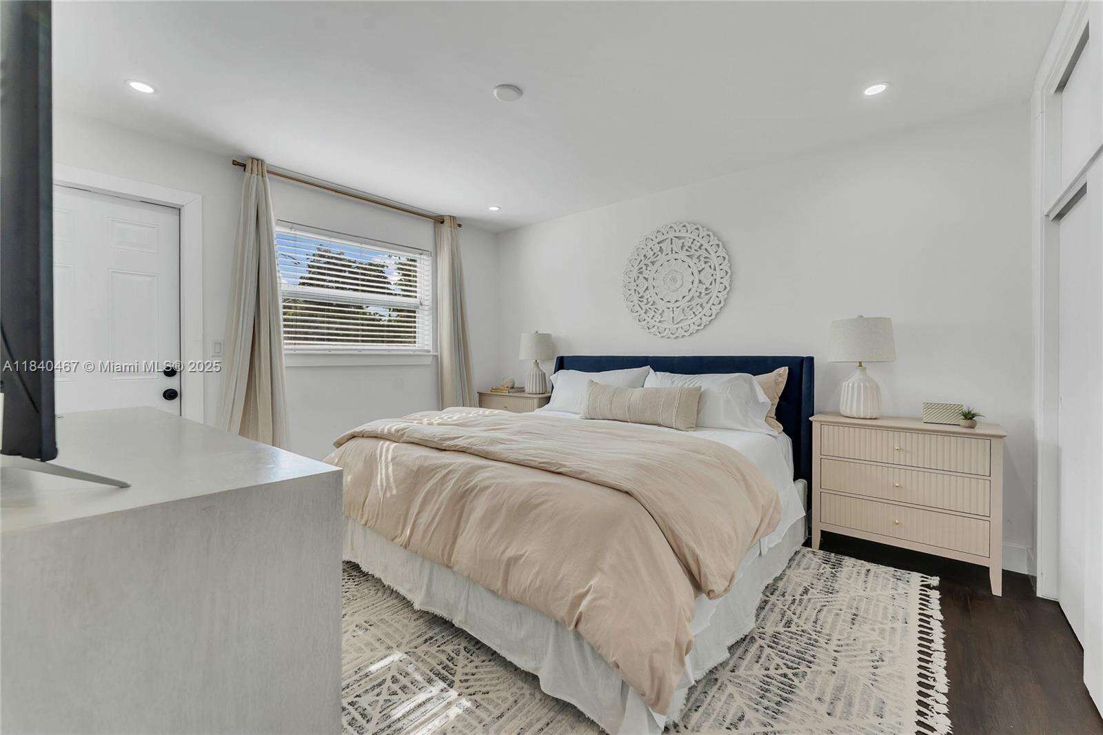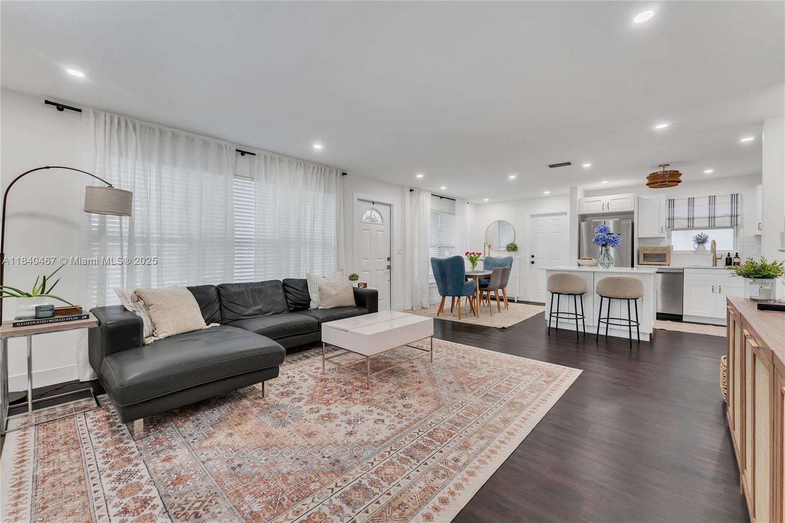 Welcome to this beautiful 3-bed, 2-bath home located in a quiet neighborhood near I-95 and the Hollywood beaches. The kitchen is a standout feature with brand-new cabinets, quartz countertops, a center island, stainless steel appliances including a dishwasher, microwave, and hood. The primary bedroom includes its own private ensuite with a stand-up shower, while the guest bathroom offers a full tub. Recent upgrades include new roof (2024), new laminate flooring (2024), new washer and dryer, and new recessed lighting throughout. The property offers a large backyard with mature fruit trees and plenty of untouched space. Whether you envision a pool or in-law the yard provides endless opportunity. Zoned for multi-family use, this property has investment potential!