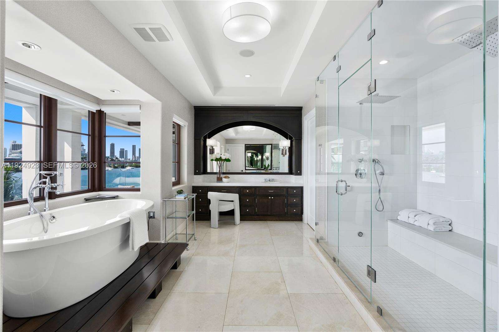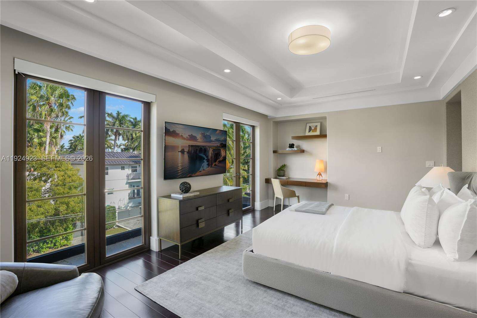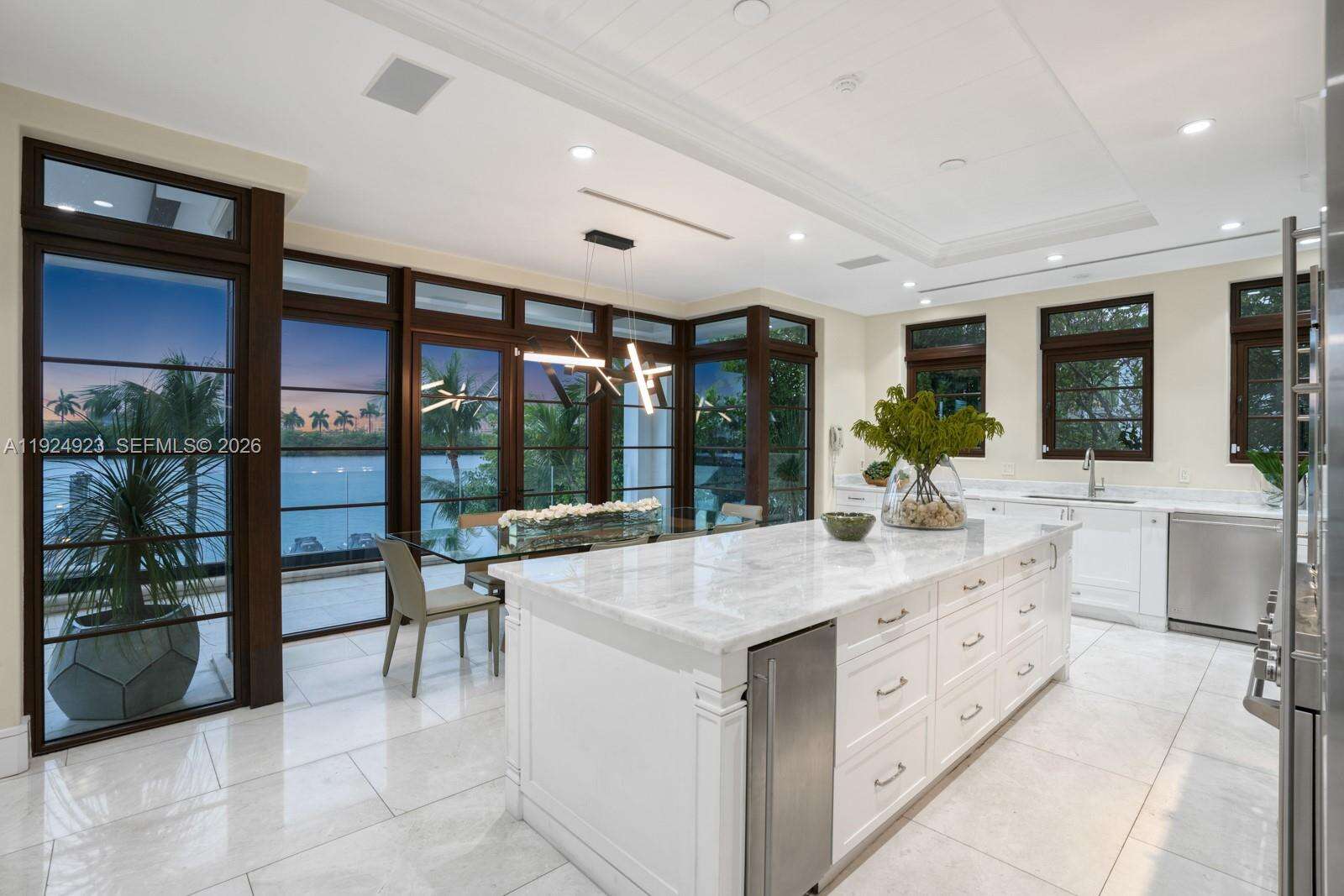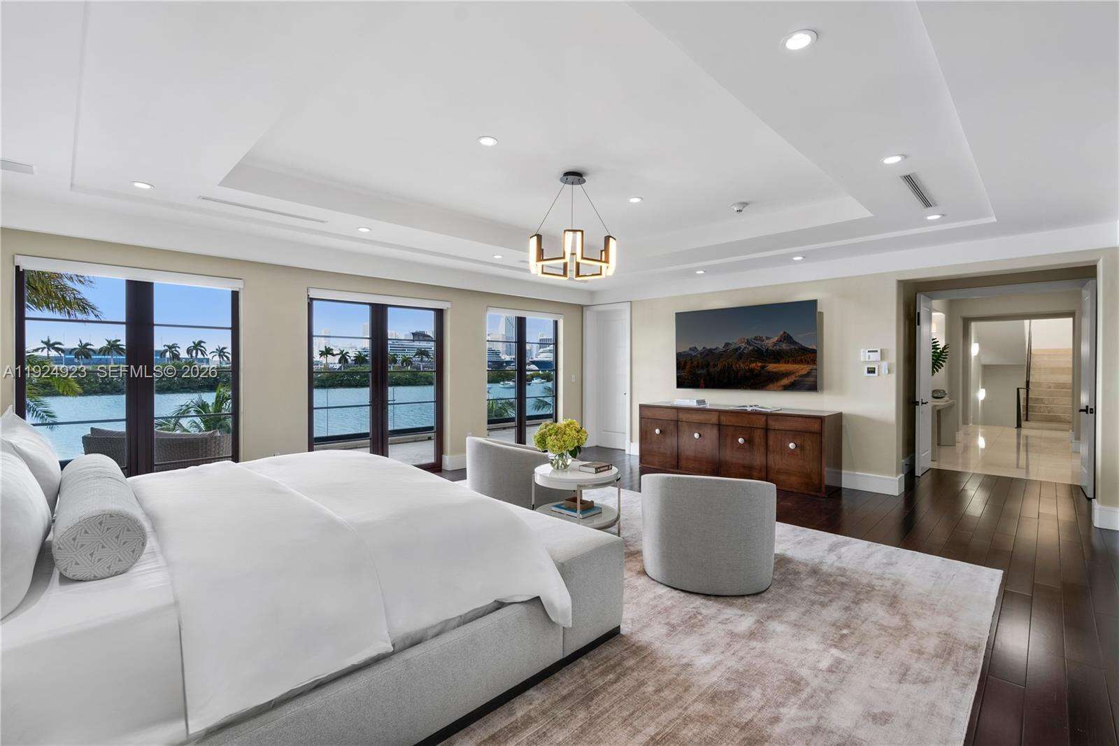 Experience luxury living in this exquisite 3-story waterfront estate, offering 100’ of prime water frontage on the prestigious, guard-gated Palm Island. Boasting 8 bedrooms, 9.5 baths, and a 4-car garage, this home offers ultimate comfort and style. Enjoy breathtaking views of the Miami skyline and beautiful sunsets from the expansive 5,000 SF rooftop terrace and multiple inviting living spaces. The ground level includes a spacious media room and game area while the outdoor space features a stunning pool, summer kitchen and a private dock that accommodates yachts up to 90' as well as a boat lift and floating jet ski dock. The home is complete with a private elevator and staff quarters. This is the epitome of elegance, exclusivity, and Miami’s vibrant waterfront lifestyle
