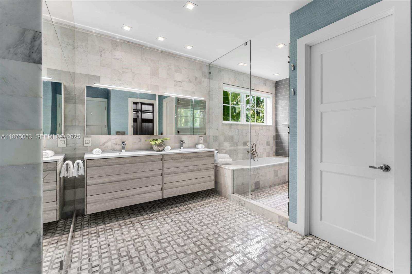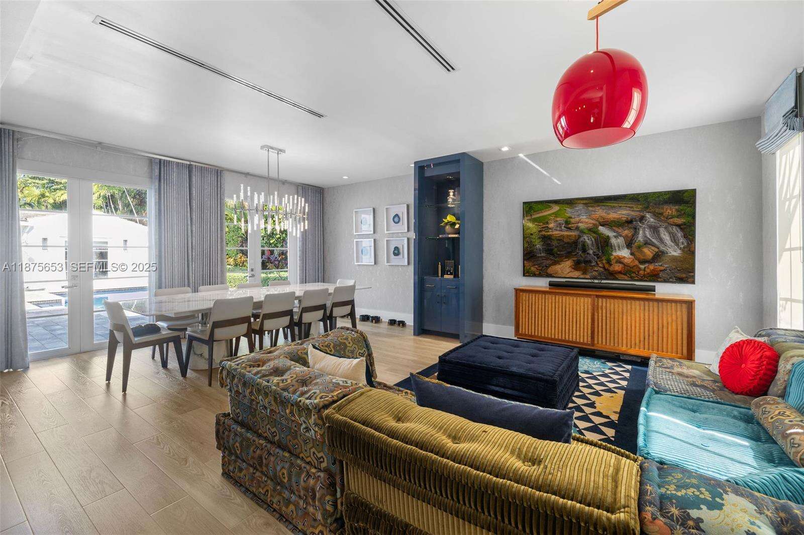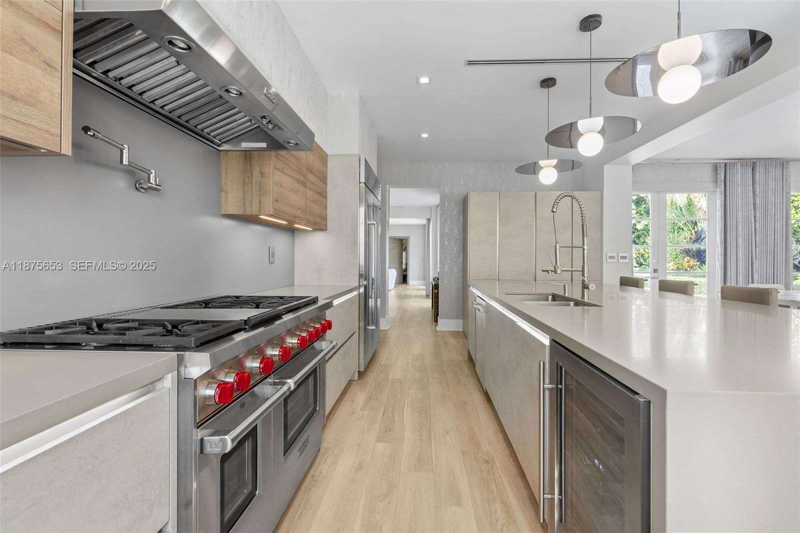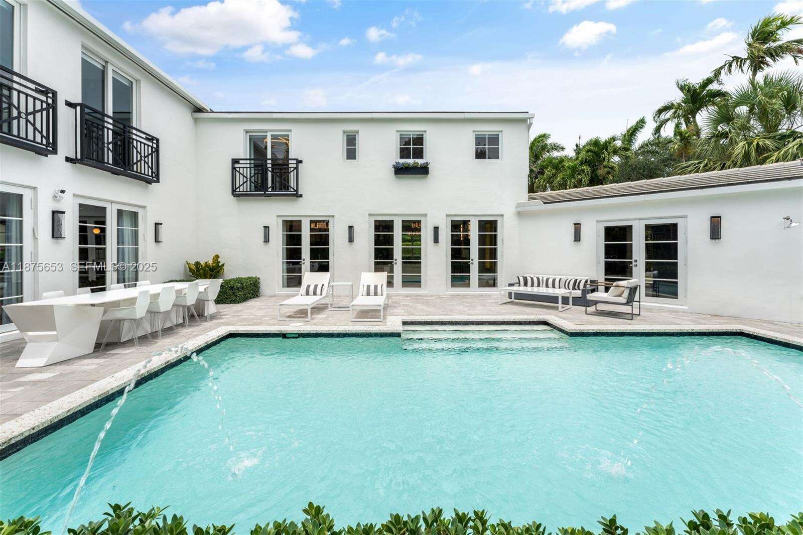 This luxurious Miami Beach estate presents a seamless blend of grandeur and chateau elegance. With 6 beds and 6.5 baths, the open-plan kitchen boasts high-end finishes and top-of-the-line Wolf, Miele, and Subzero appliances. Just steps from the kitchen is a spacious dining area and a relaxing family room. The exquisite master bedroom serves as a private retreat unto itself, featuring a sitting area overlooking the pool and patio. A chic office space, doubling as an ensuite bedroom, offers versatility and convenience. The guest suite impresses with a kitchenette, living area, and stunning lush outdoor views. Conveniently located near upscale restaurants and shops, and a short distance from the ocean, this residence embodies the ultimate Miami Beach lifestyle.