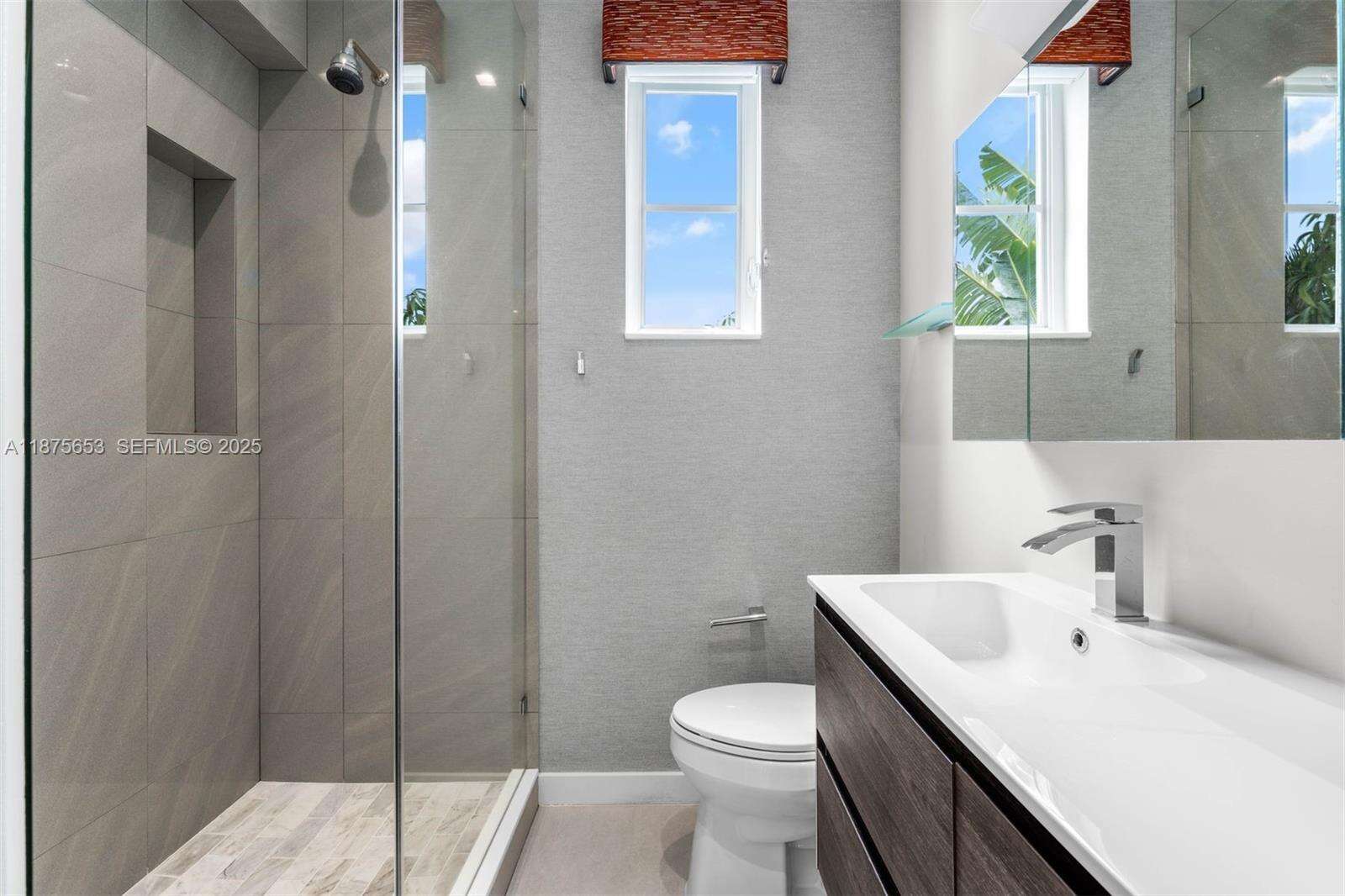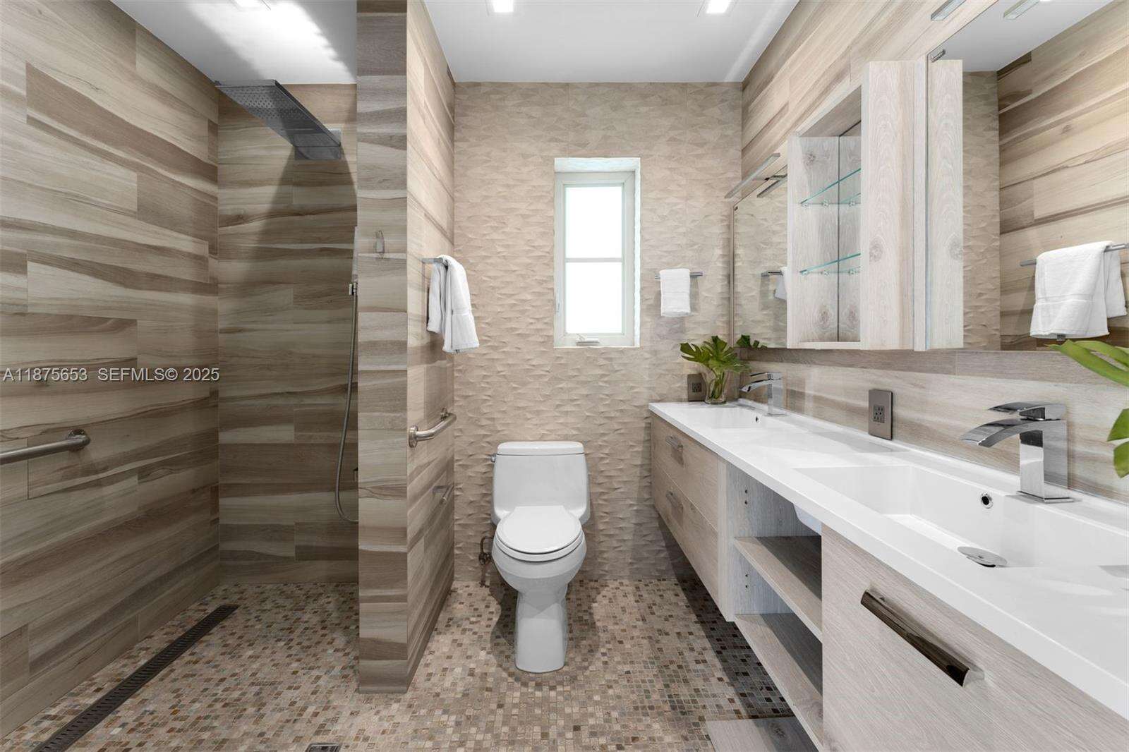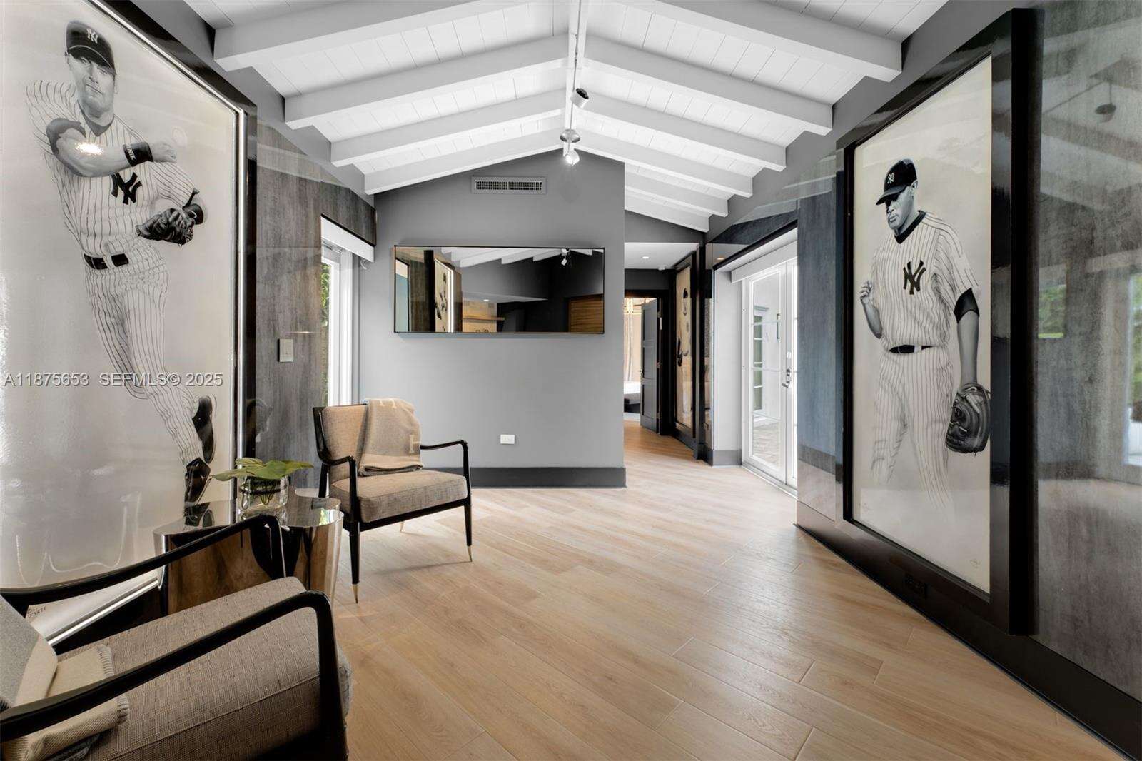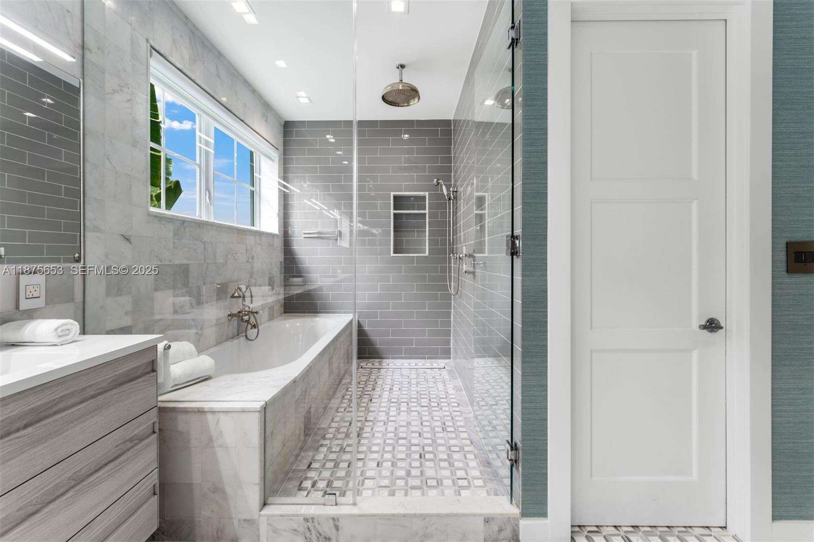 This luxurious Miami Beach estate presents a seamless blend of grandeur and chateau elegance. With 6 beds and 6.5 baths, the open-plan kitchen boasts high-end finishes and top-of-the-line Wolf, Miele, and Subzero appliances. Just steps from the kitchen is a spacious dining area and a relaxing family room. The exquisite master bedroom serves as a private retreat unto itself, featuring a sitting area overlooking the pool and patio. A chic office space, doubling as an ensuite bedroom, offers versatility and convenience. The guest suite impresses with a kitchenette, living area, and stunning lush outdoor views. Conveniently located near upscale restaurants and shops, and a short distance from the ocean, this residence embodies the ultimate Miami Beach lifestyle.