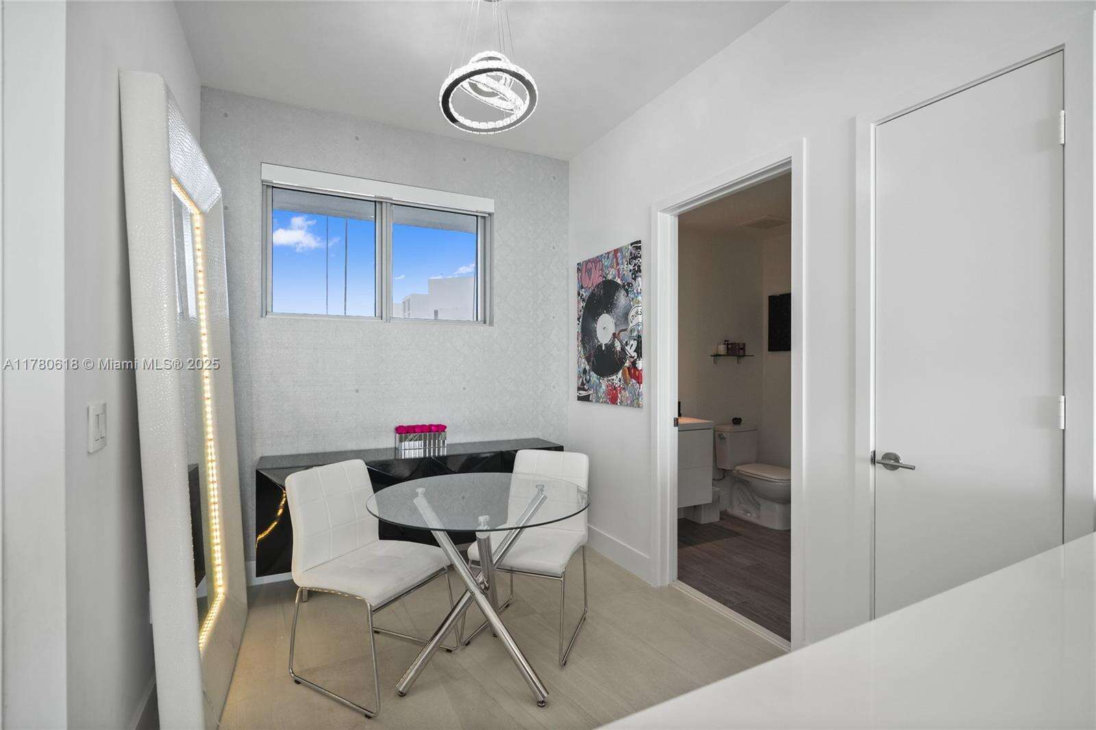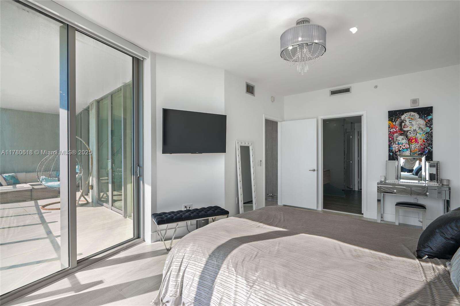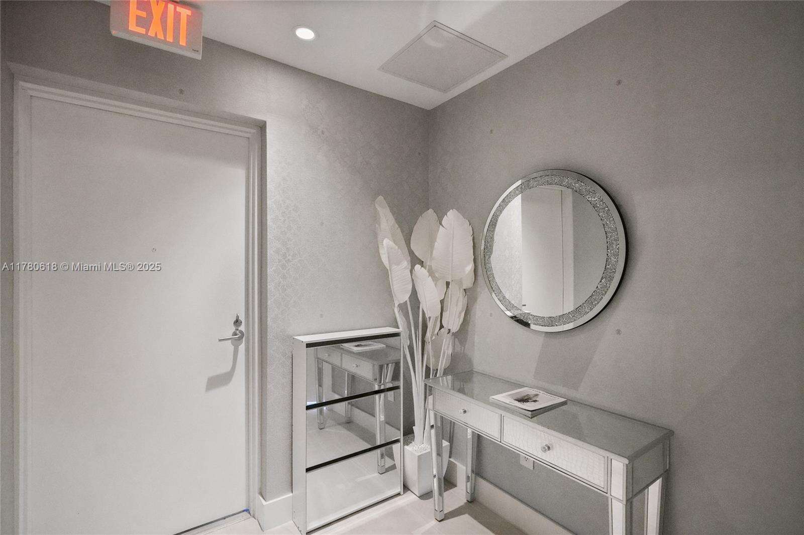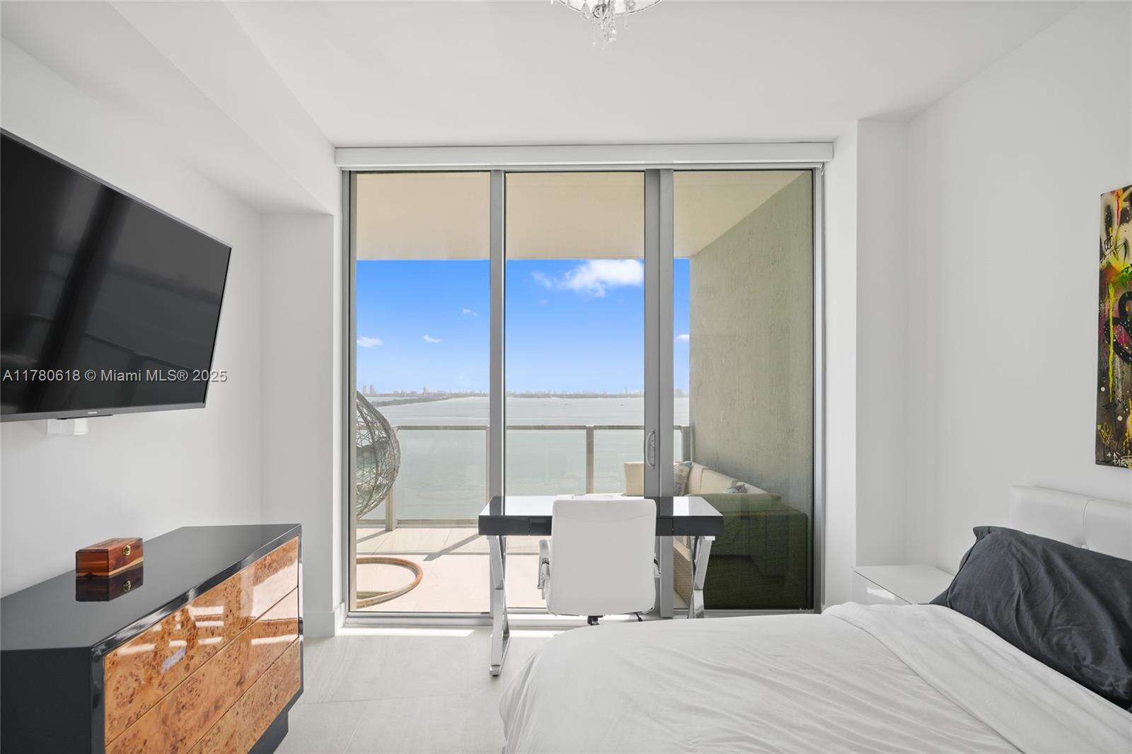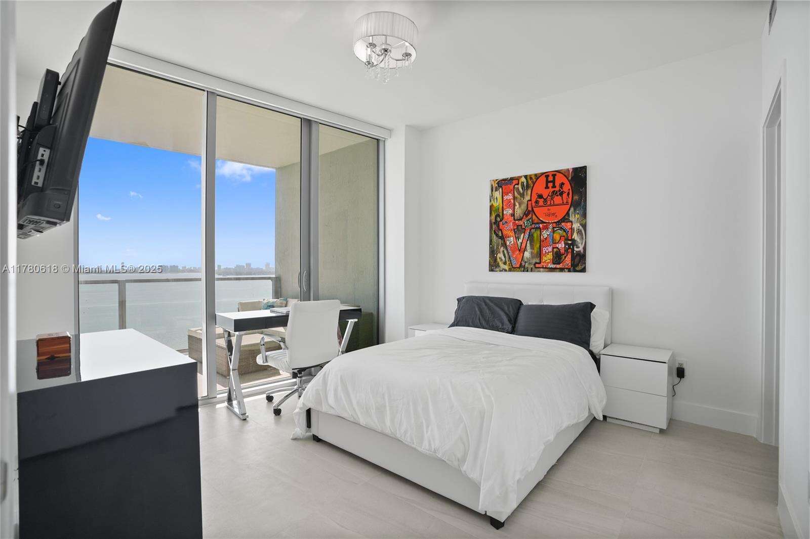 This stunning 2-bedroom, 3-bathroom condo with a den features luxury upgrades like a UV light system, 3M water filter, and Roberto Cavalli wallpaper. The master suite offers a custom closet, full-wall mirror, updated shower with new handles, and sleek floating vanities. Italian porcelain floors, a black kitchen island, and electric blackout shades add to the elegance. Designed by Thom Filicia, the condo includes private elevator access, top-tier appliances, and bay views. Amenities feature two pools, beach club, gym, spa, tennis courts, dog park, and 24-hour concierge. Spot #664 parking included. Located 10 minutes from the Design District, Midtown, and the American Airlines Arena, enjoy exclusive Miami events like sunset cruises and beachfront yoga.